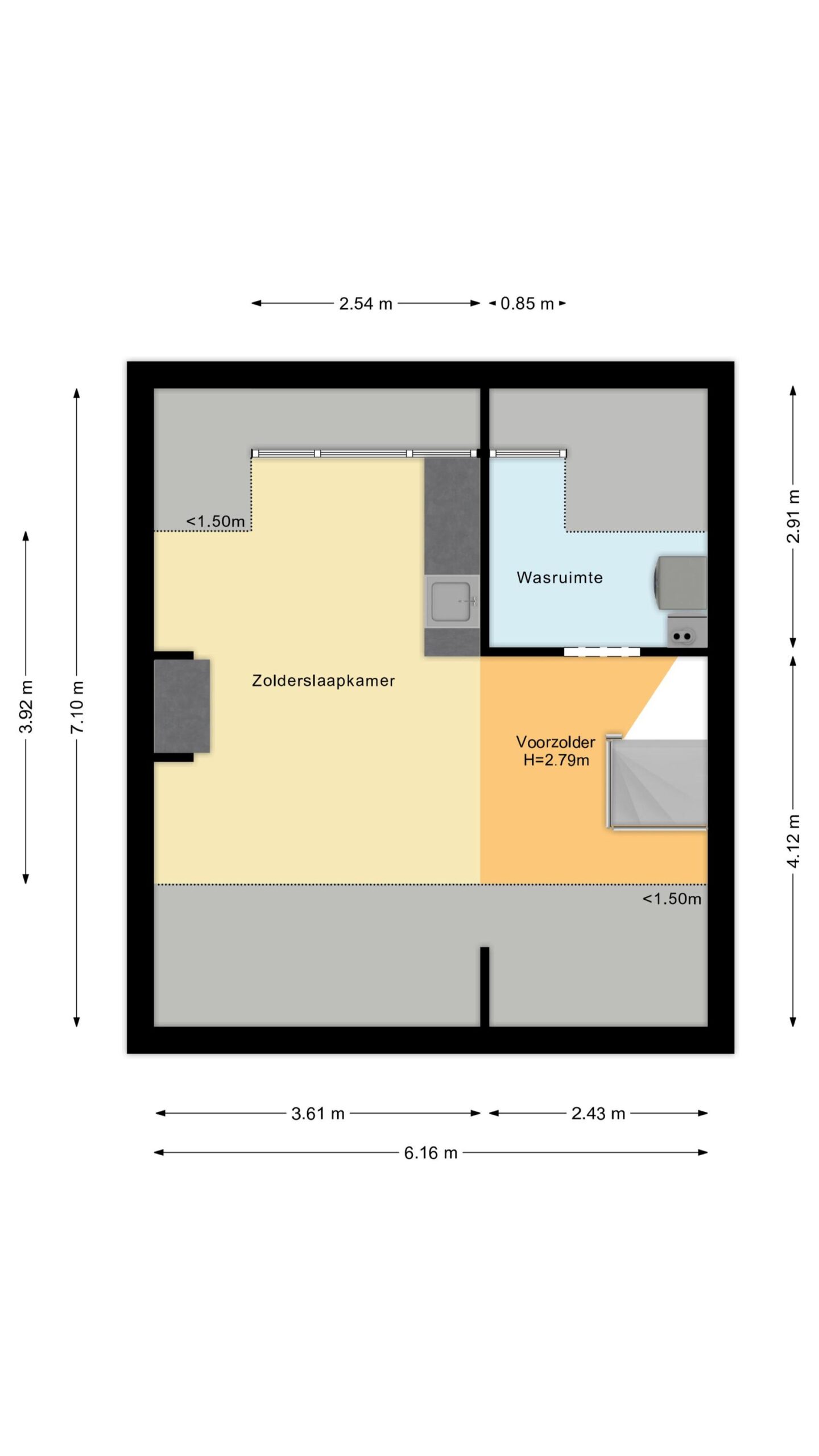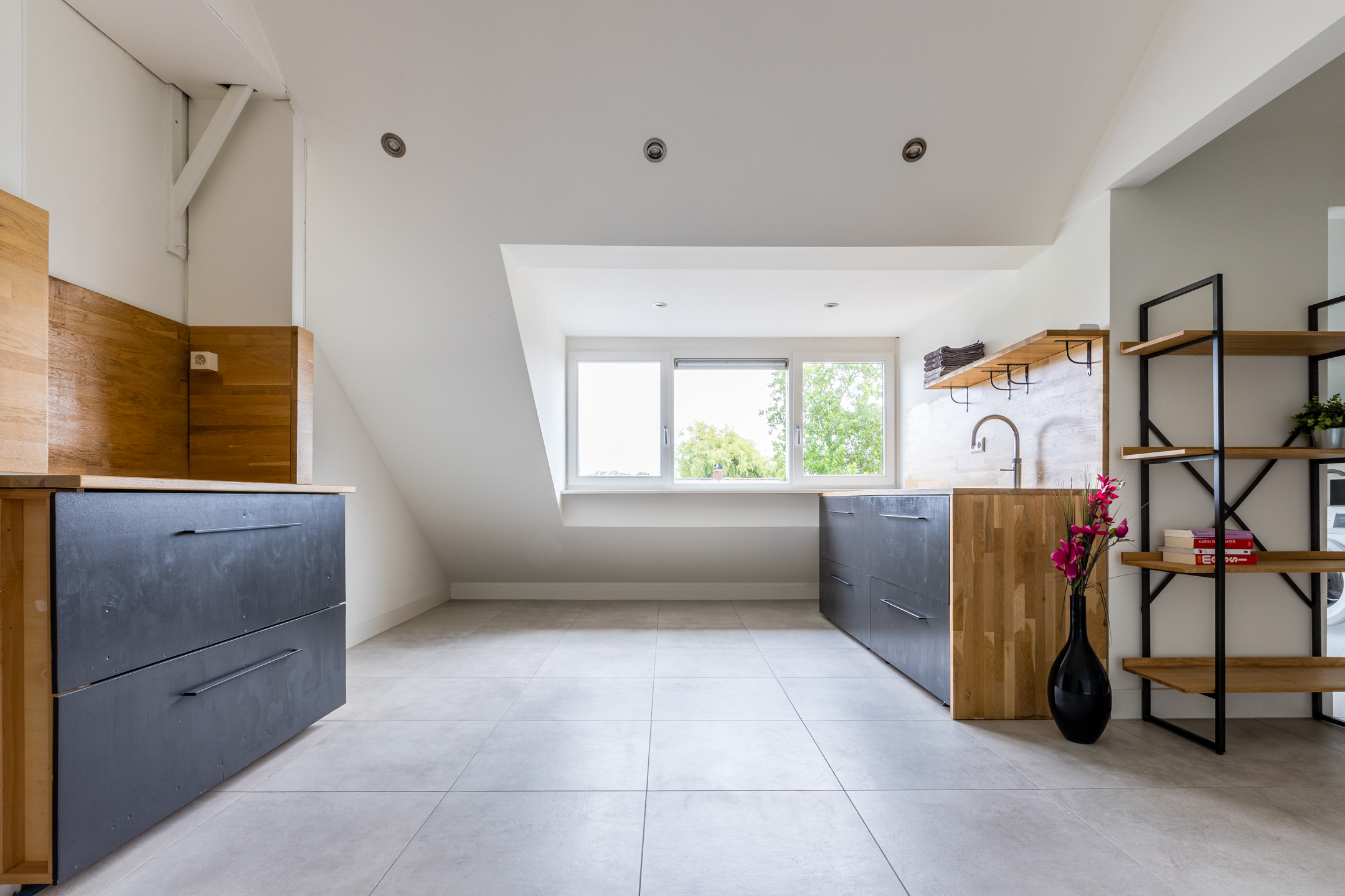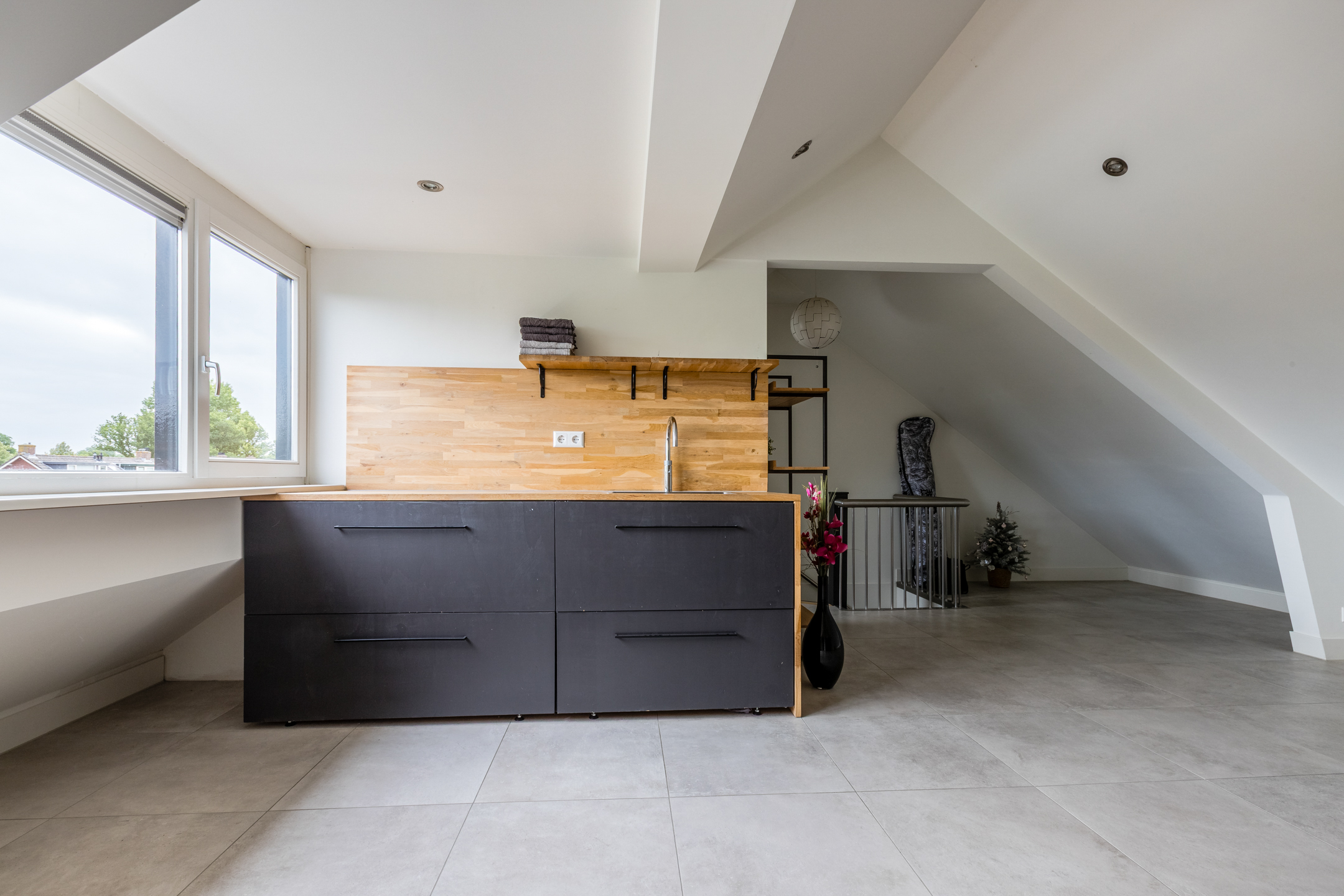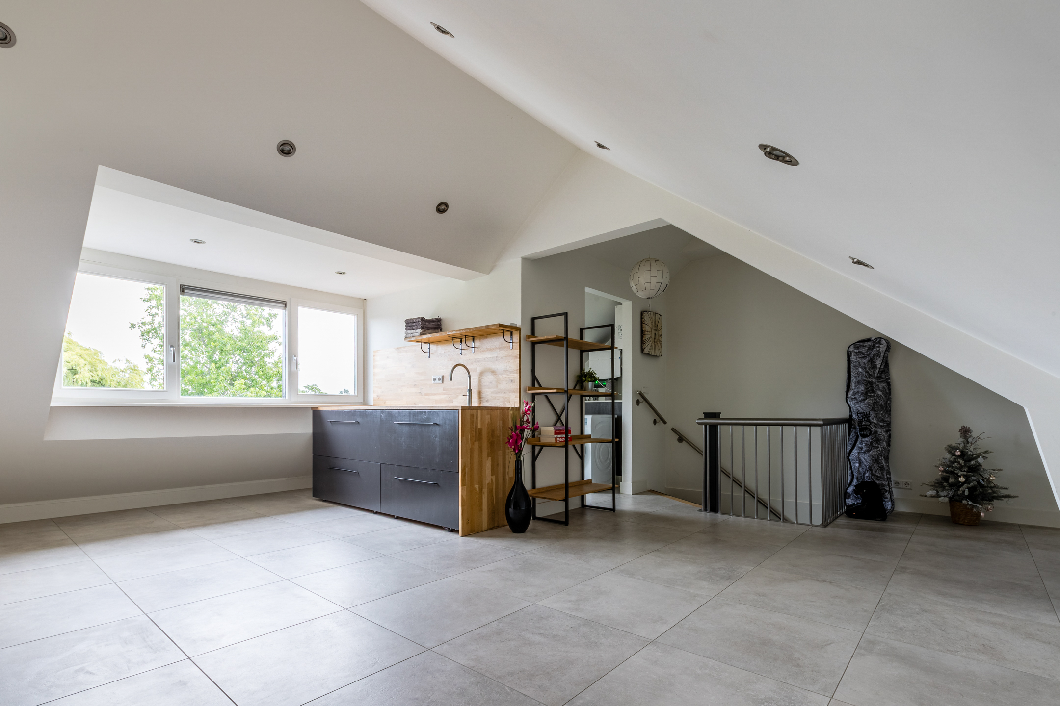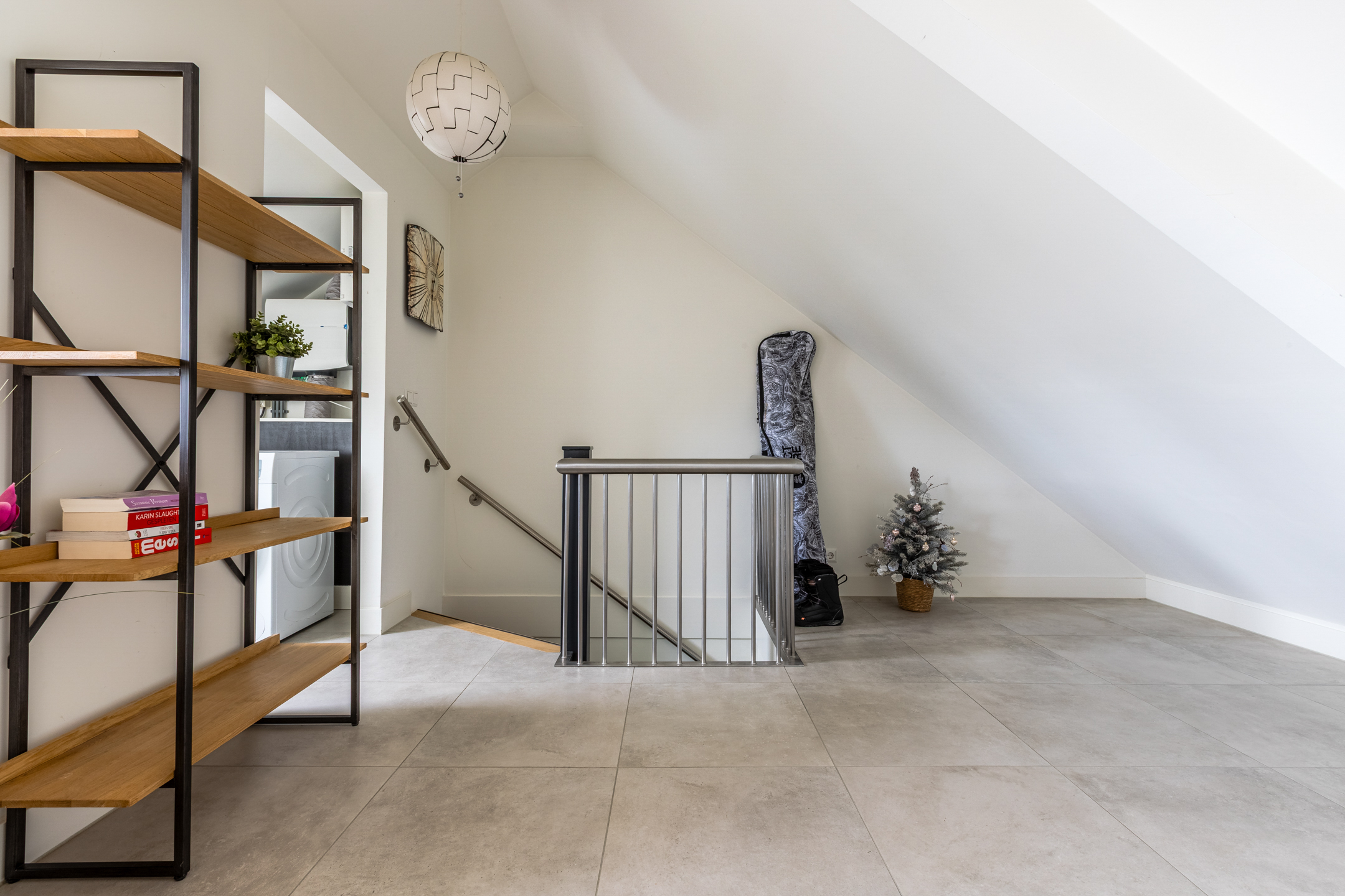 Overloop/voorzolder met wasruimte, brede dakkapel aan de achterzijde. Grote zolderkamer van 15 m2.