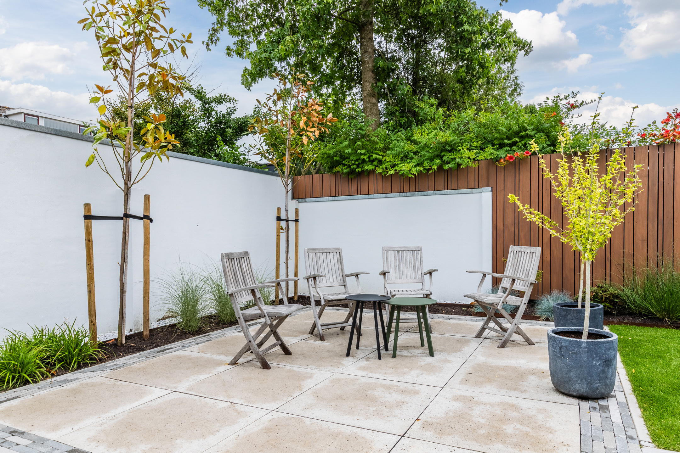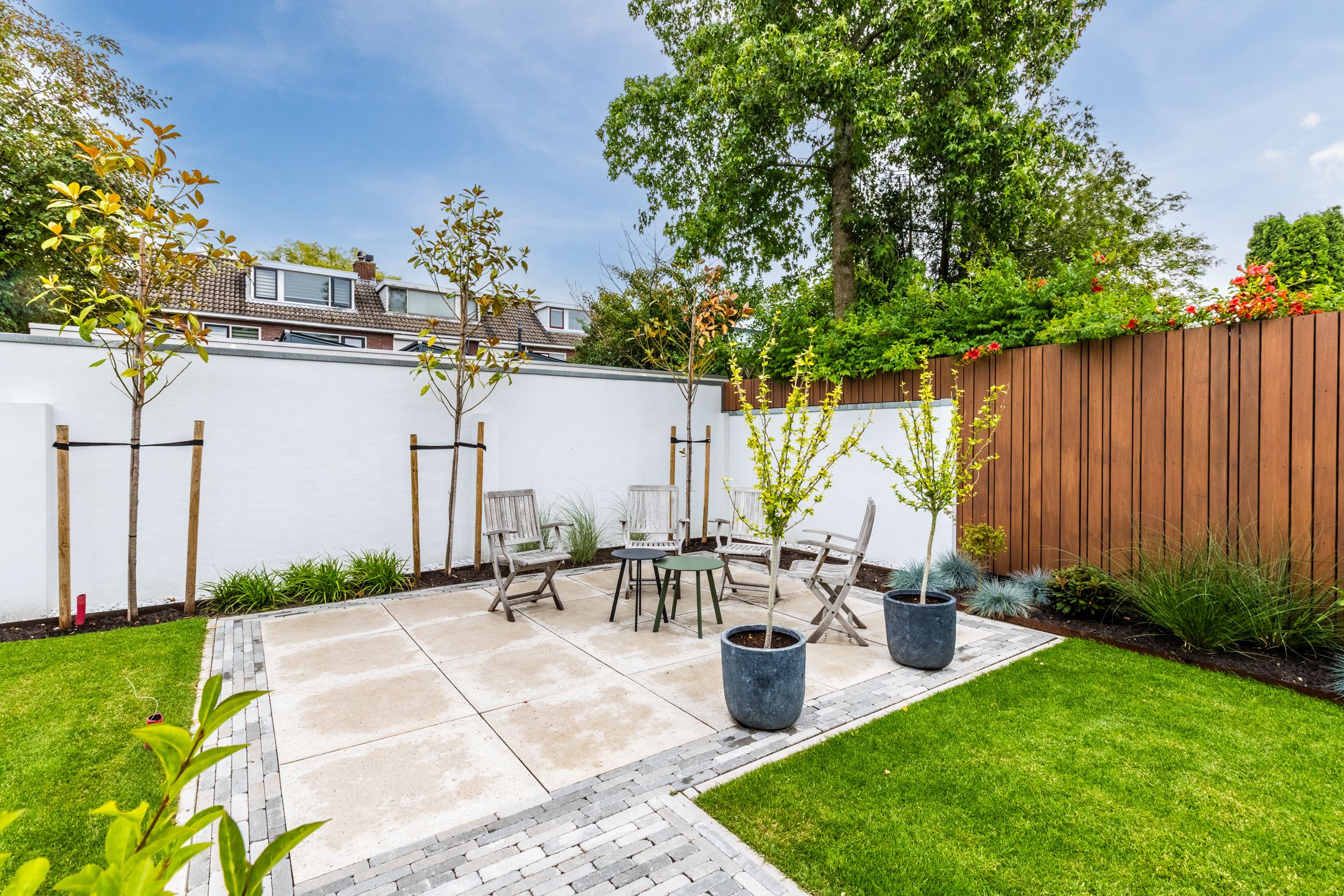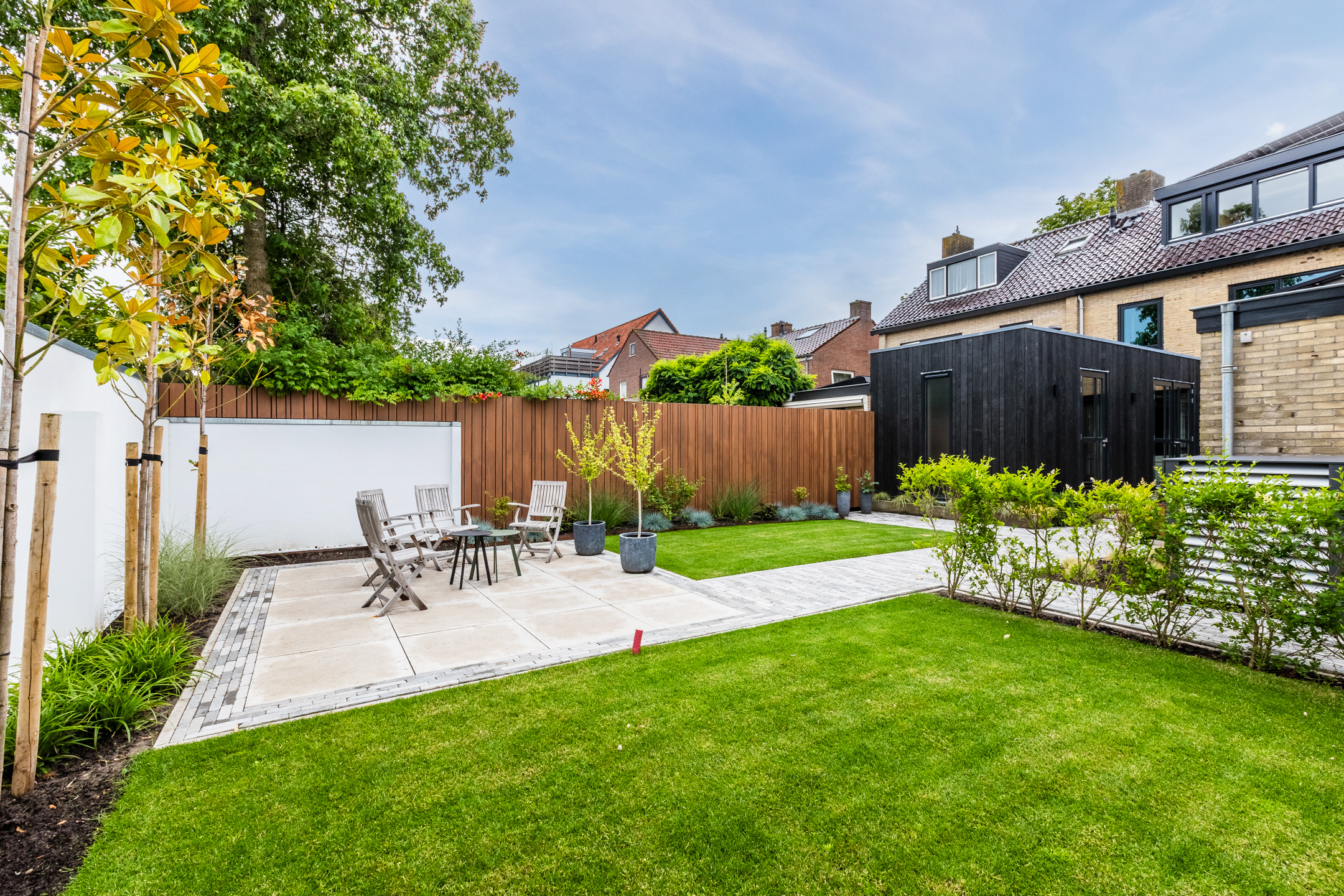 De tuin is mooi aangelegd met gebruikmaking van hoogwaardige en levensloopbestendige materialen (zoals stucwerk en thermische houten bekleding). Door de diepe tuinligging is er genoeg ruimte voor een plek in de zon of in de schaduw. Rondom is de tuin voorzien van schuttingwerk of stenen tuinmuren en is daarmee dus helemaal begrensd en afgesloten van de openbare weg. De oprit is door gebruikmaking van een steenkorrel met degelijke sierklinker bestrating geschikt voor zwaardere voertuigen, waardoor ook voor de lange termijn de oprit knap blijft.