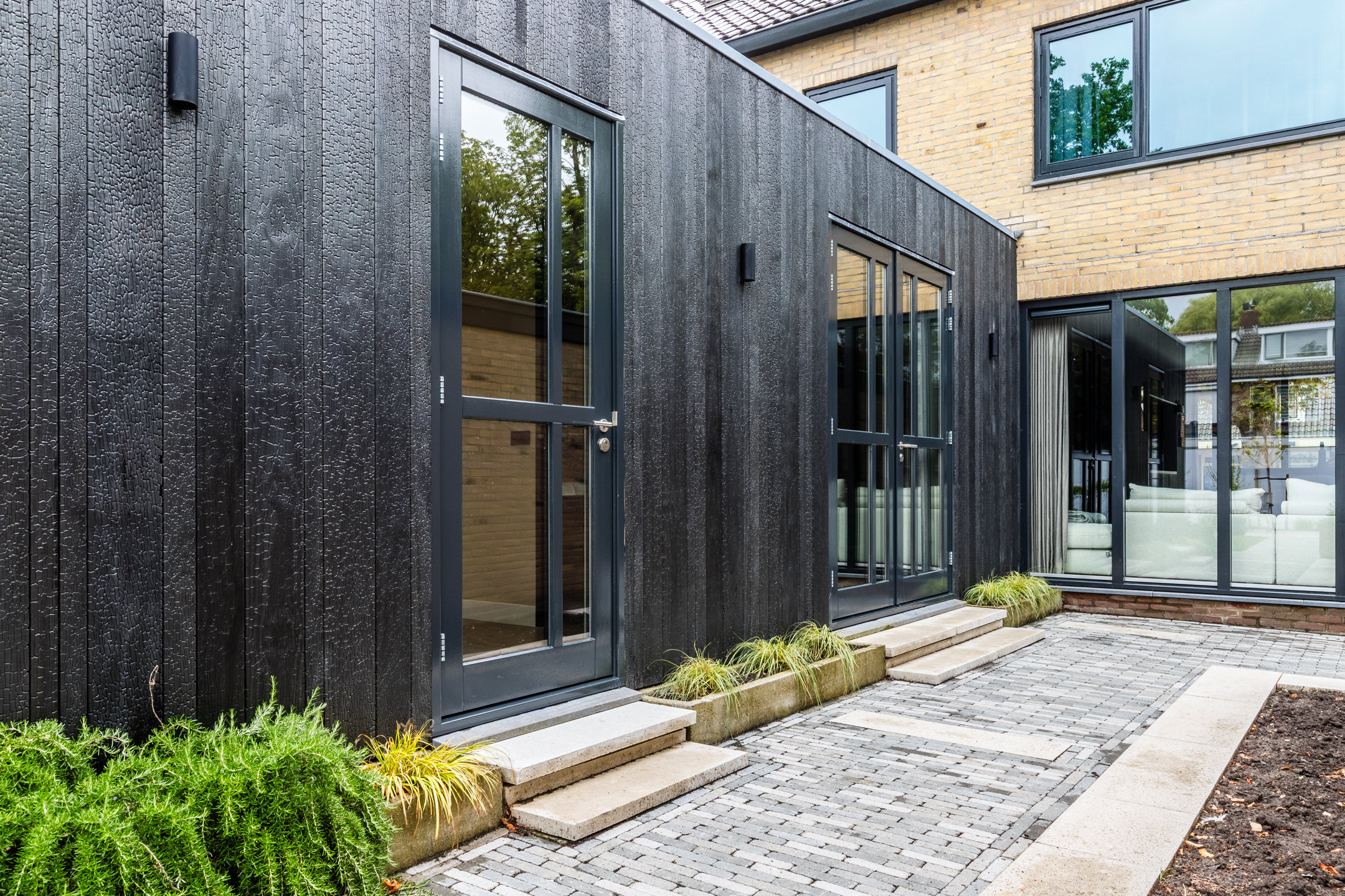 • Aanbouw voorzien van Japans Shou Sugi Ban wood.