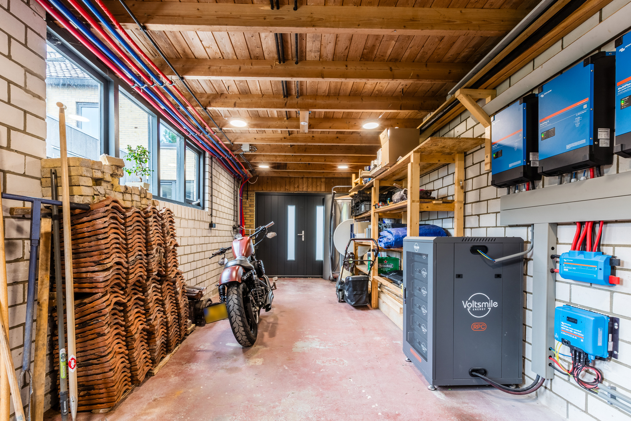 Er is veel parkeerruimte op eigen grond/terrein voor 4 auto’s. In de directe omgeving geldt vanuit de gemeente betaald vergunningparkeren. Op eigen erf kun je in de garage (afmeting 3.06 m. breed x 8.52 m. lang) met gemak ƩƩn auto of meerdere motorfietsen kwijt.