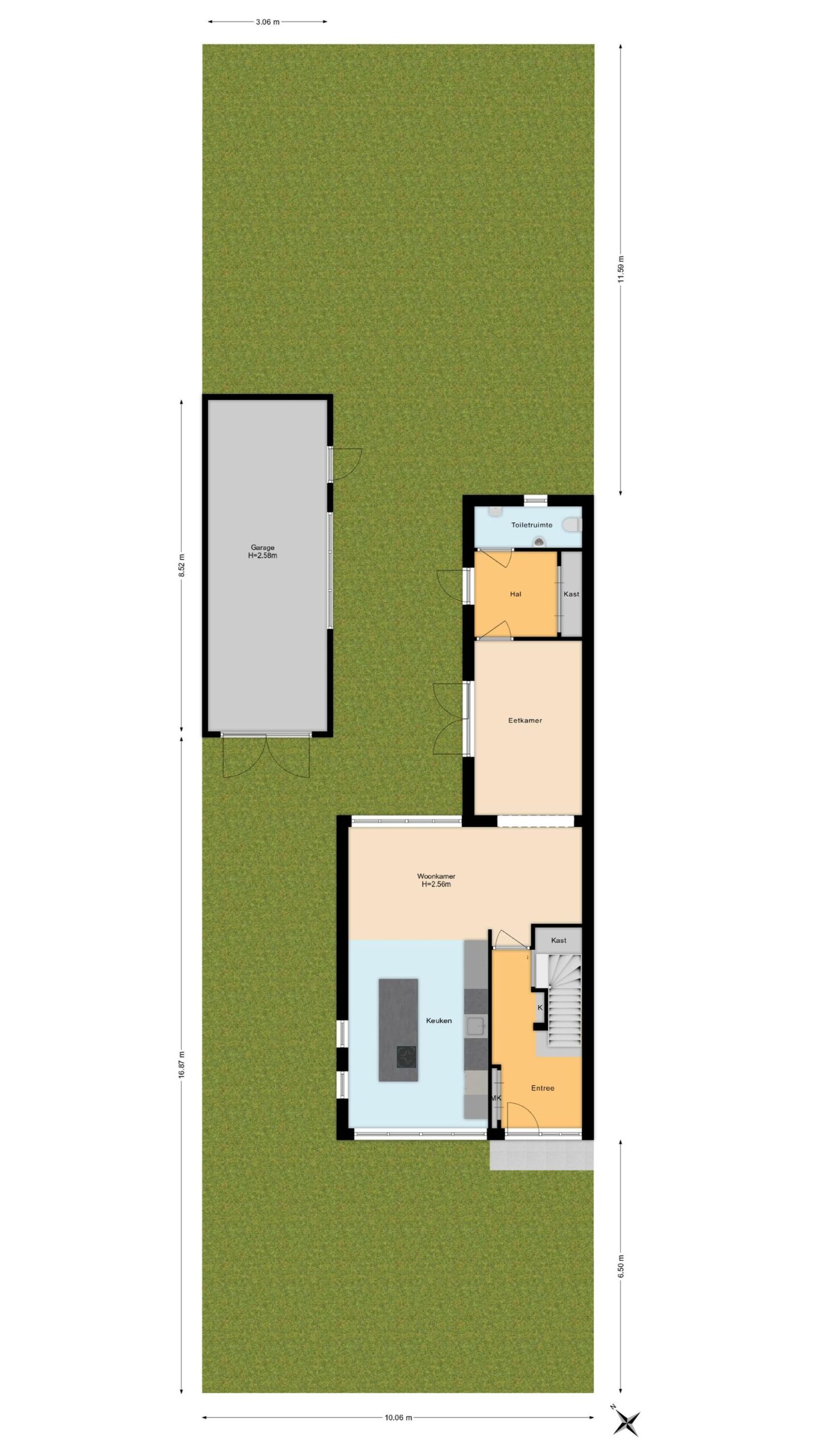 • Losstaande stenen garage (afmeting 3.06 mtr. x 8.52 mtr.).