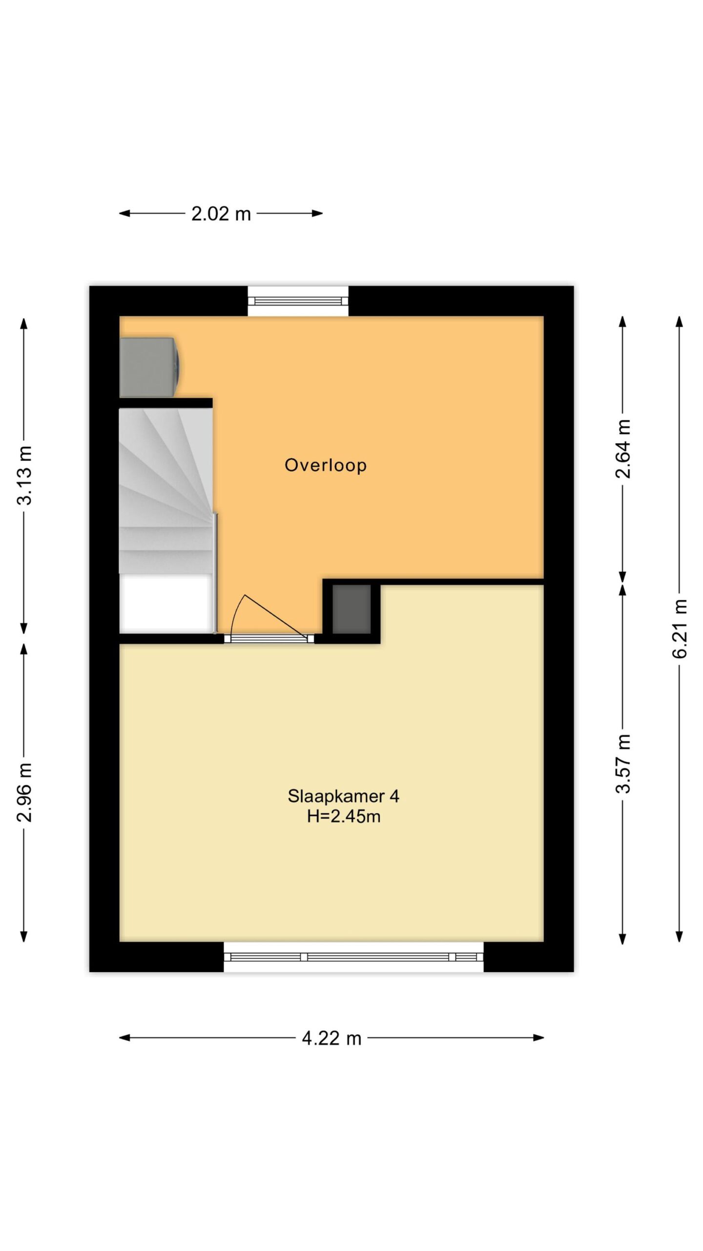 De 2e verdieping wordt nu gebruikt als wasruimte en als kantoor maar kan ook als slaapkamer worden gebruikt.