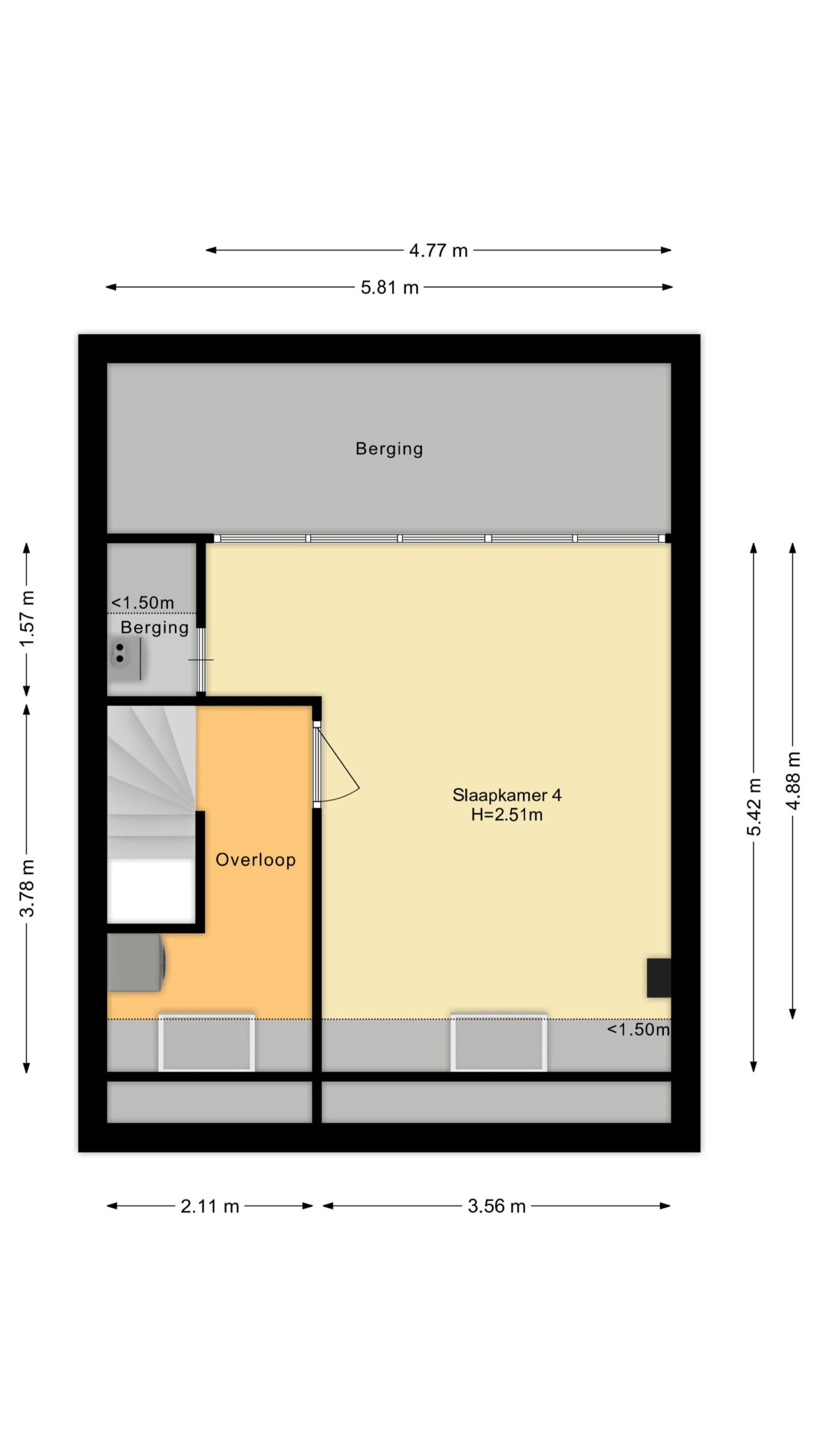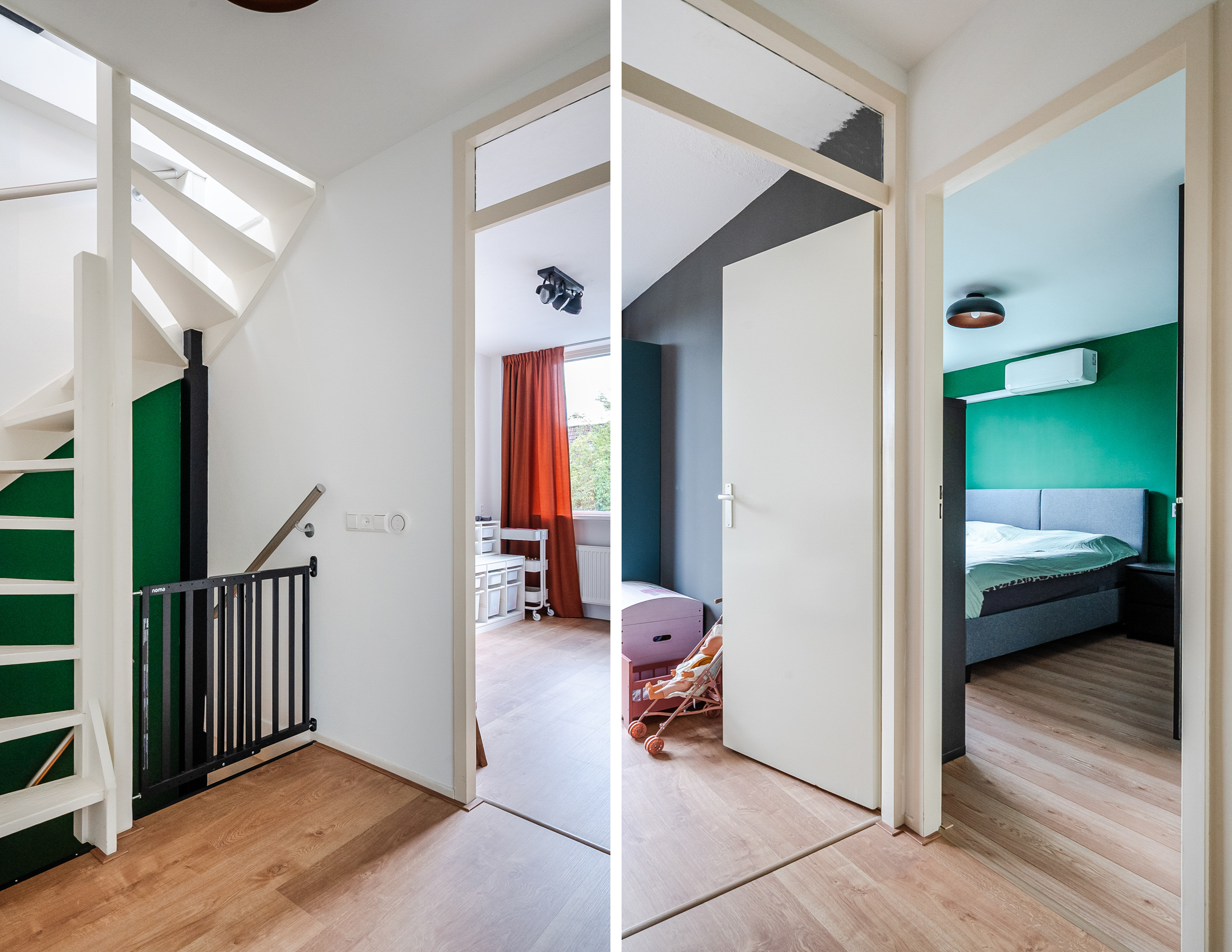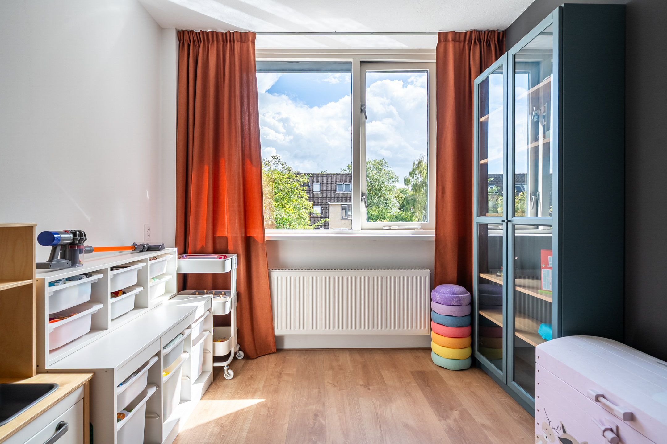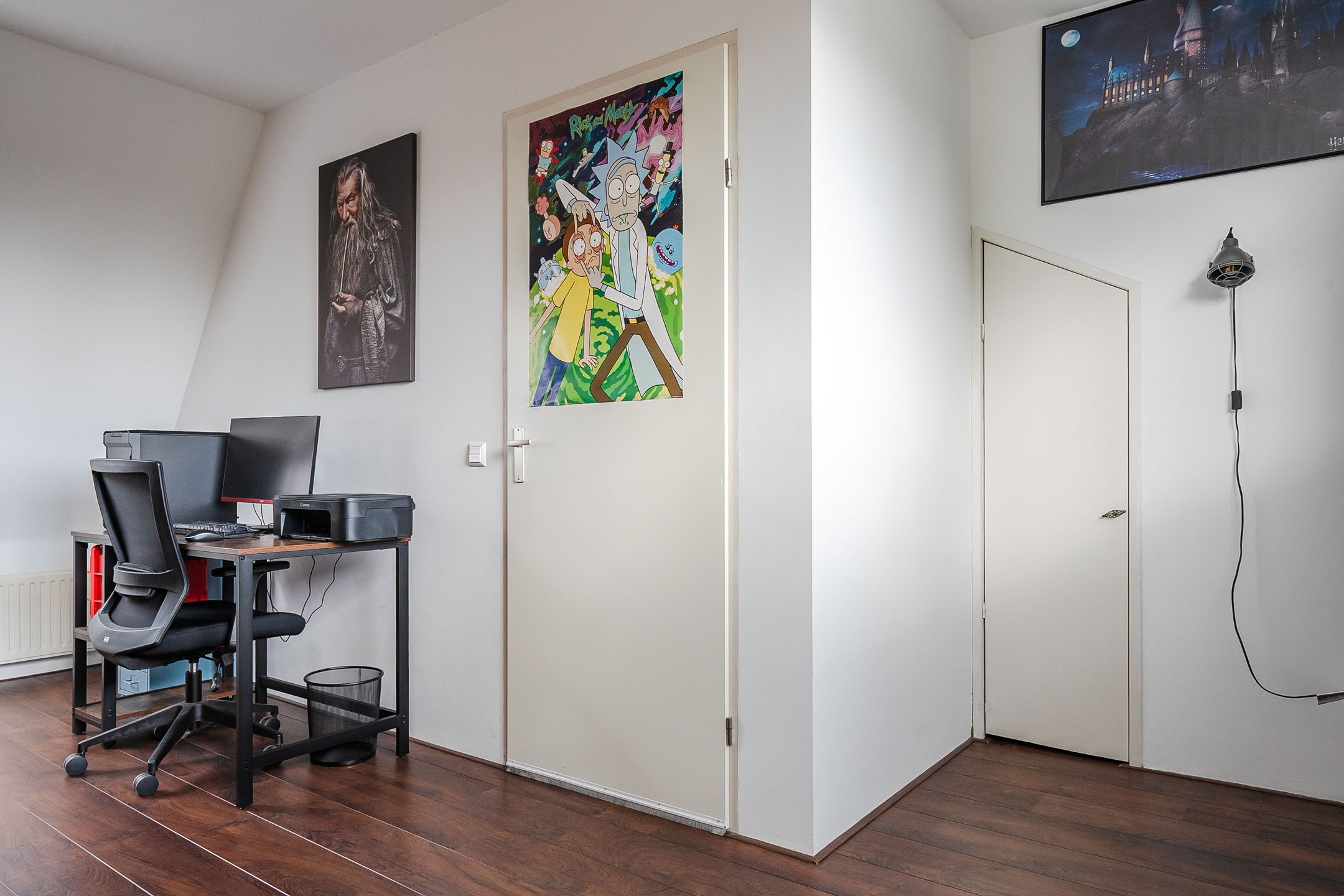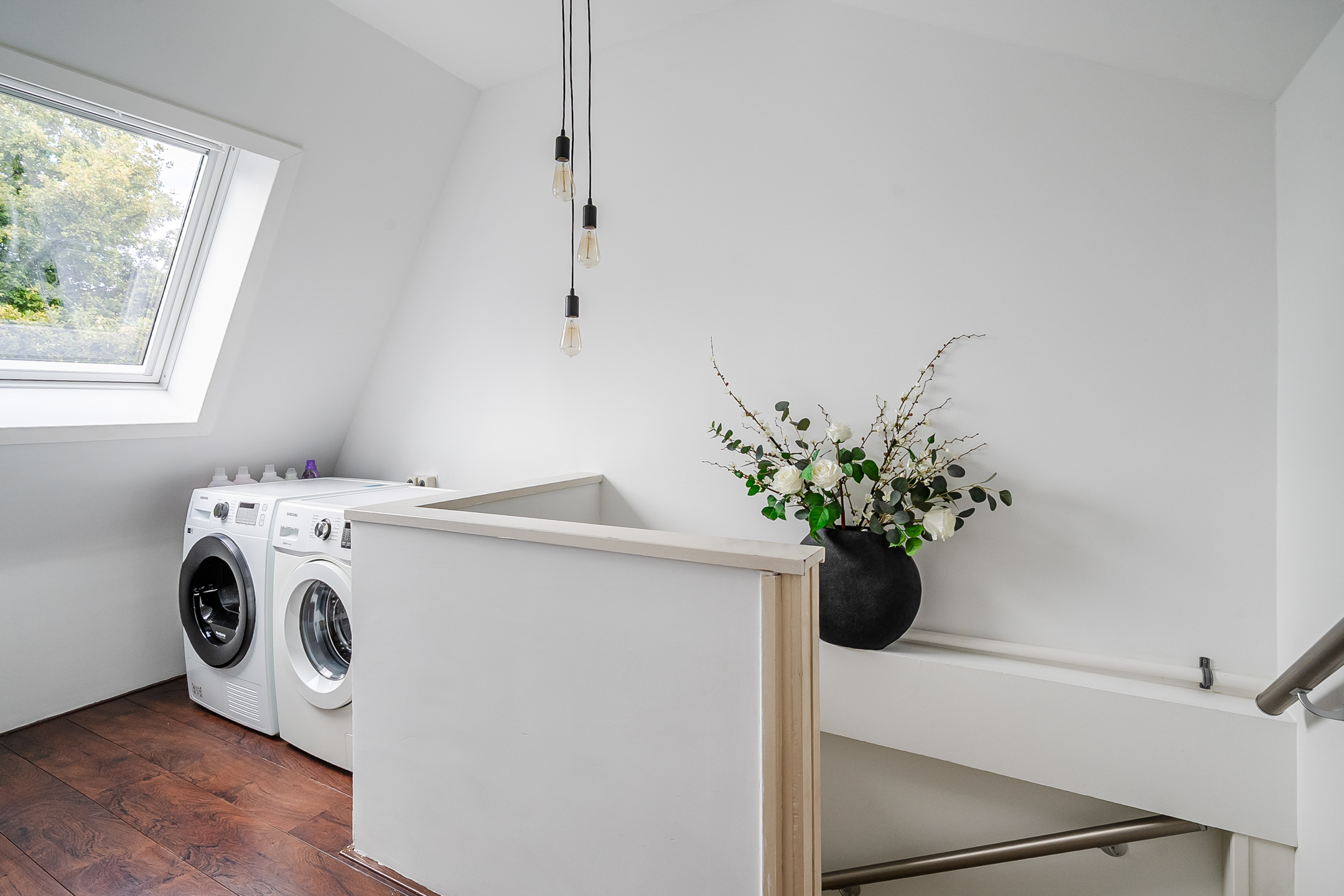Vaste trap, ruime overloop met opstelplaats voor wasmachine en droger, bergruimte met opstelling van de cv-ketel en een zeer riante 4e slaapkamer met dakkapel die keurig is afgewerkt en beschikt over extra veel bergruimte.