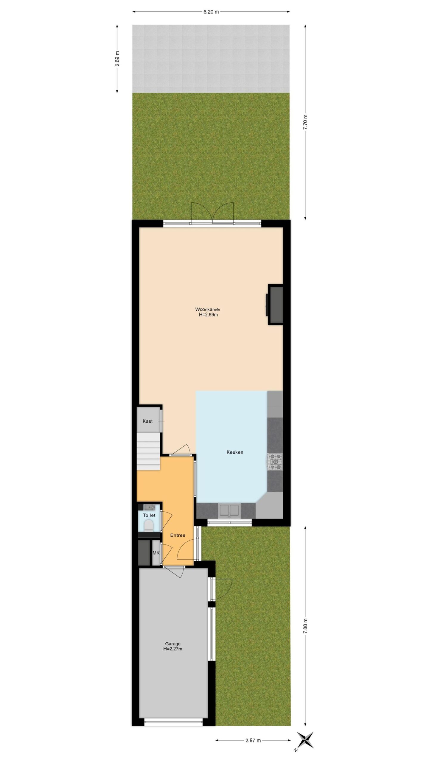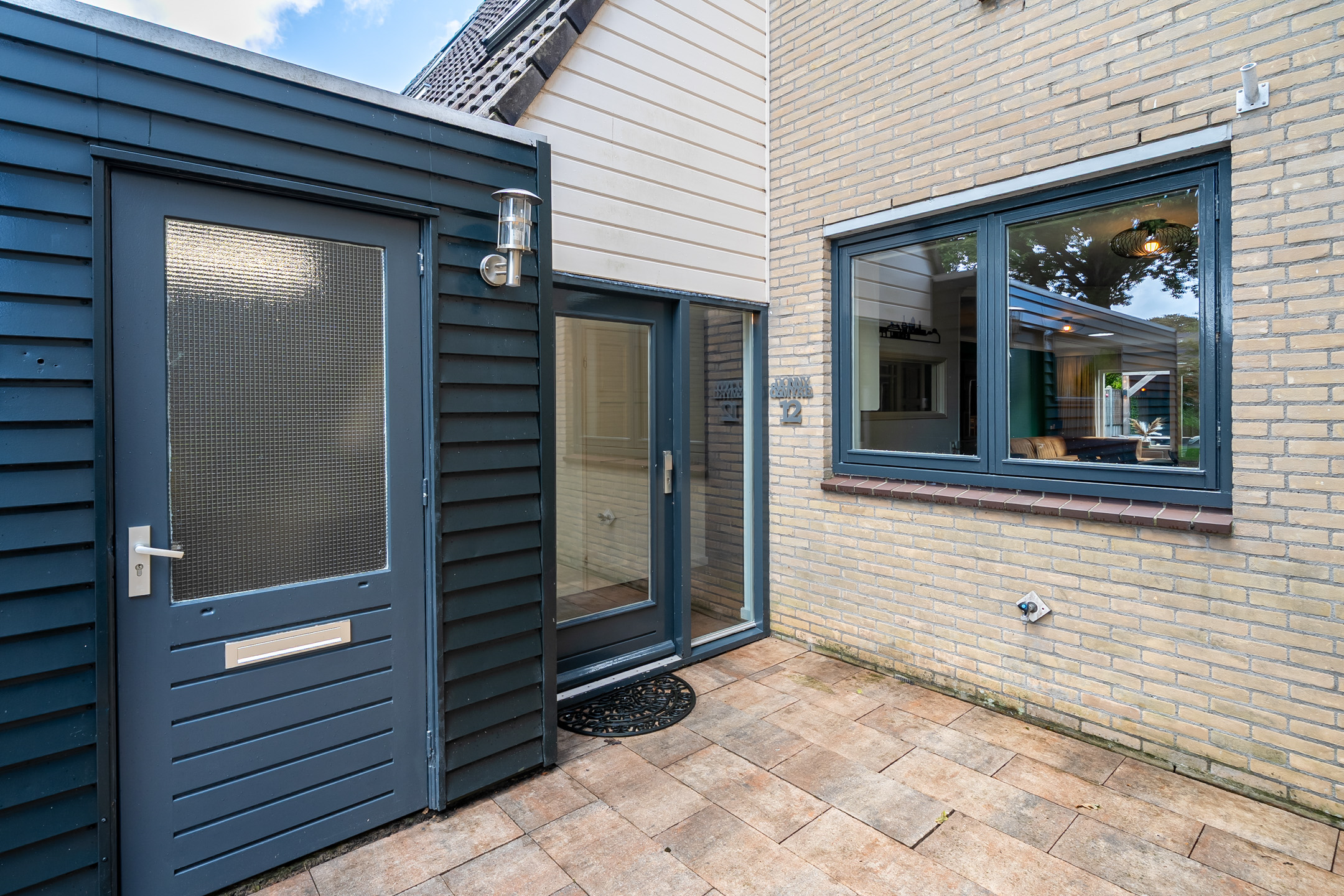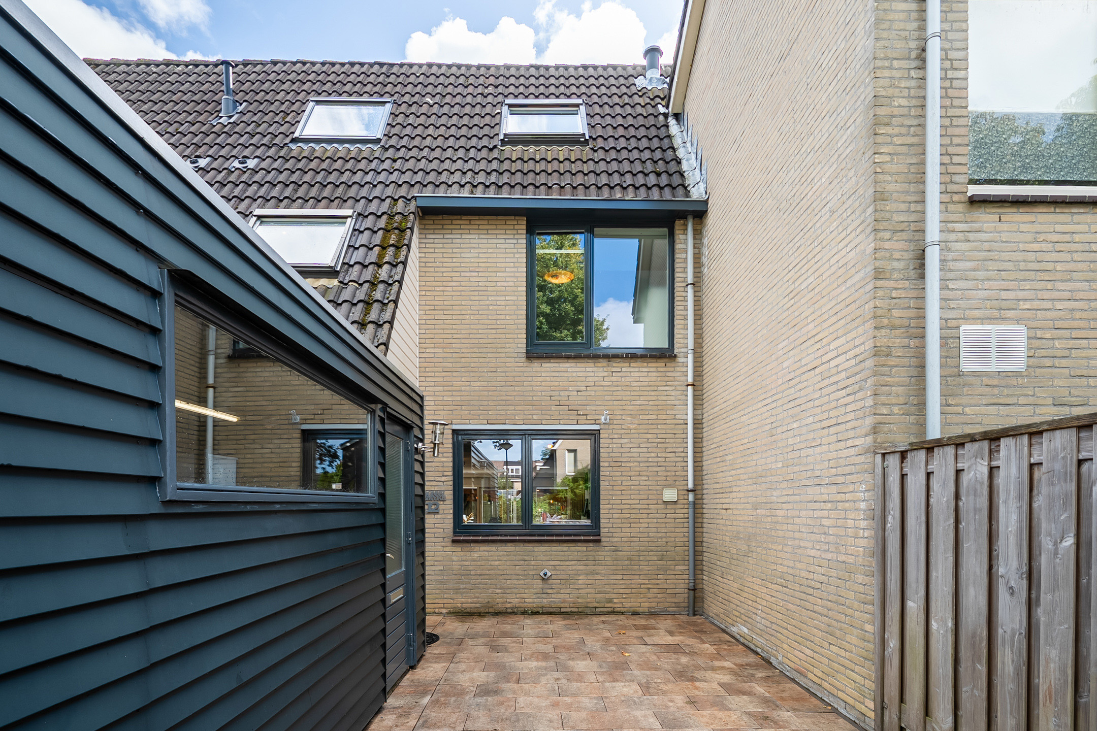 Zowel de voor- , als achtertuin zijn volledig bestraat, dus daar heeft u geen groene vingers voor nodig. In de achtertuin staat nog een stoere overkapping om gezellig te kunnen zitten.