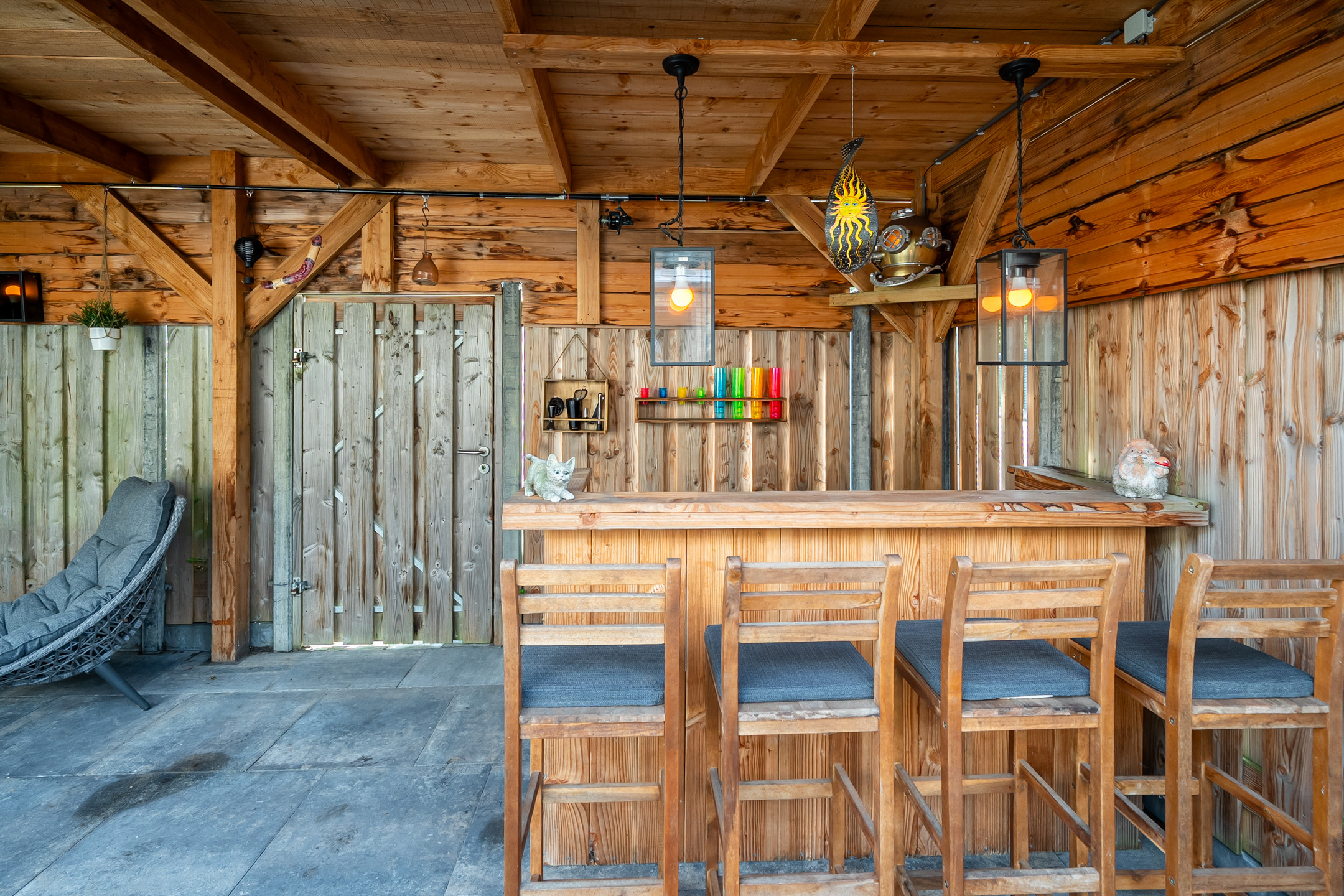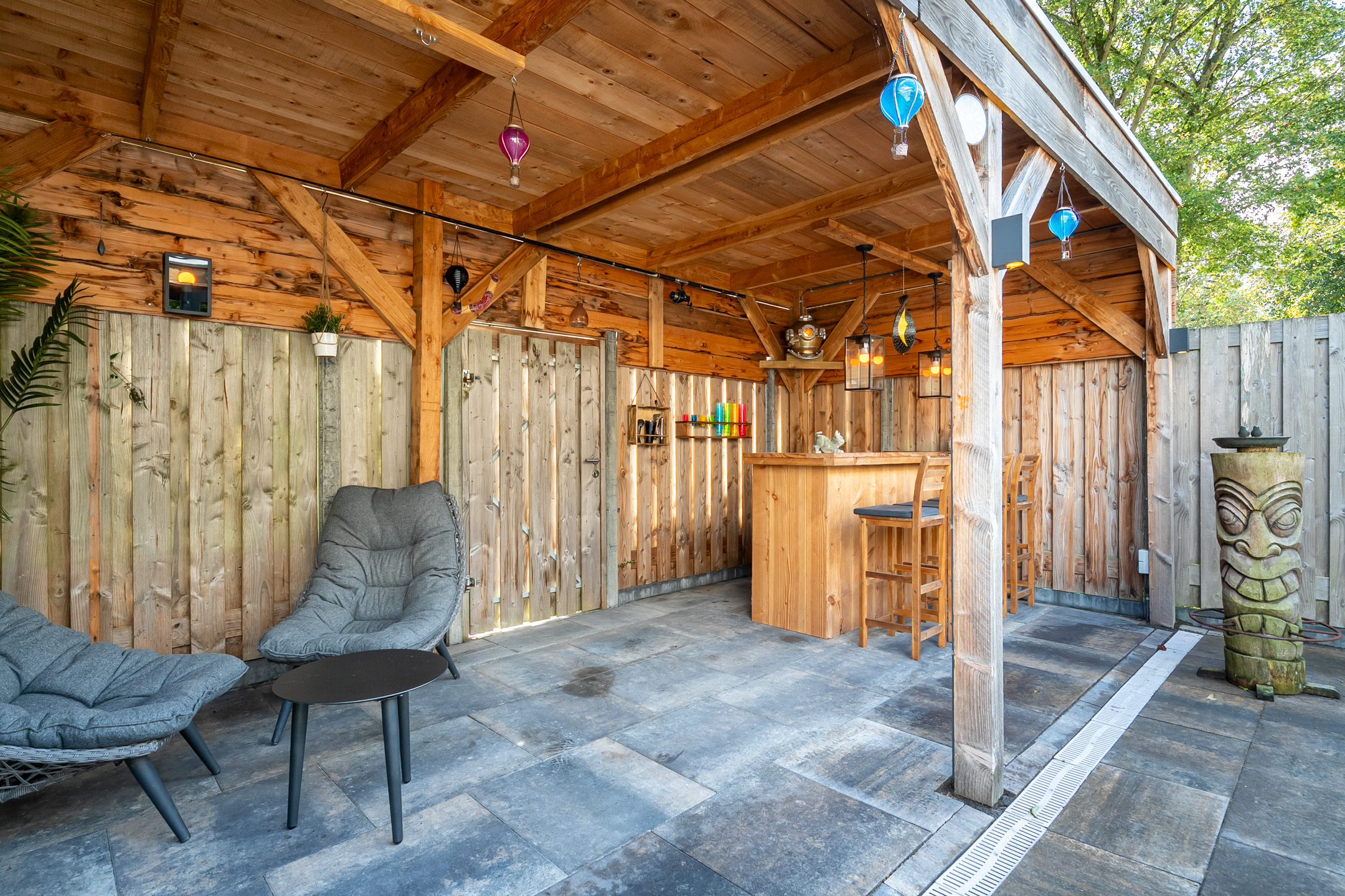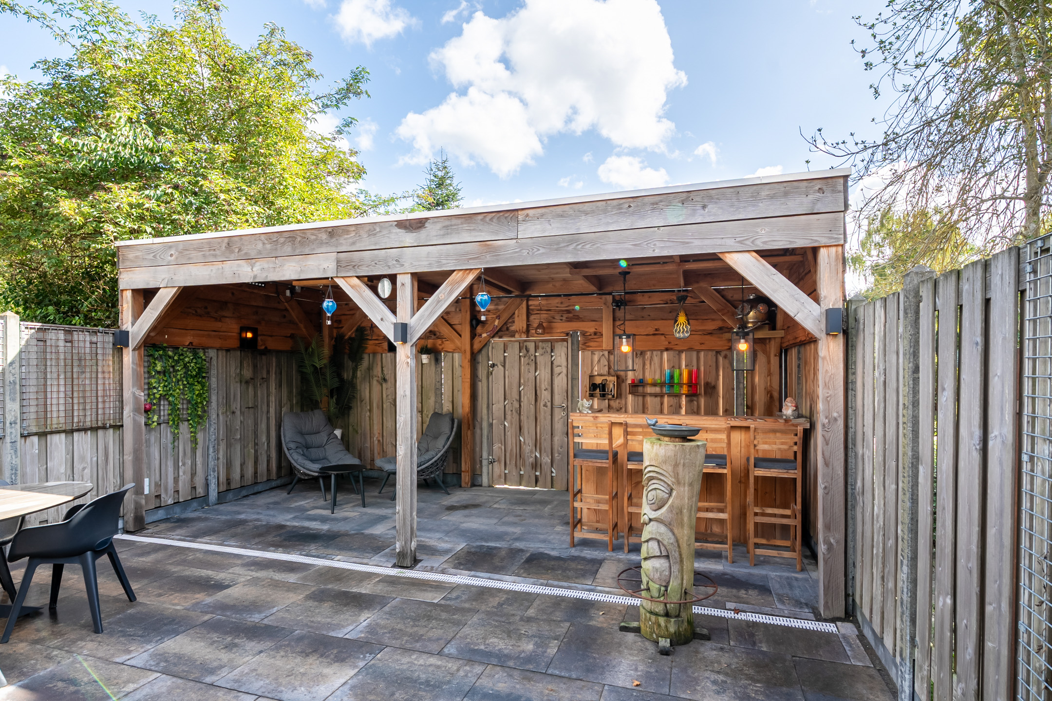 ⢠Over gehele breedte van de achtertuin een robuuste overkapping