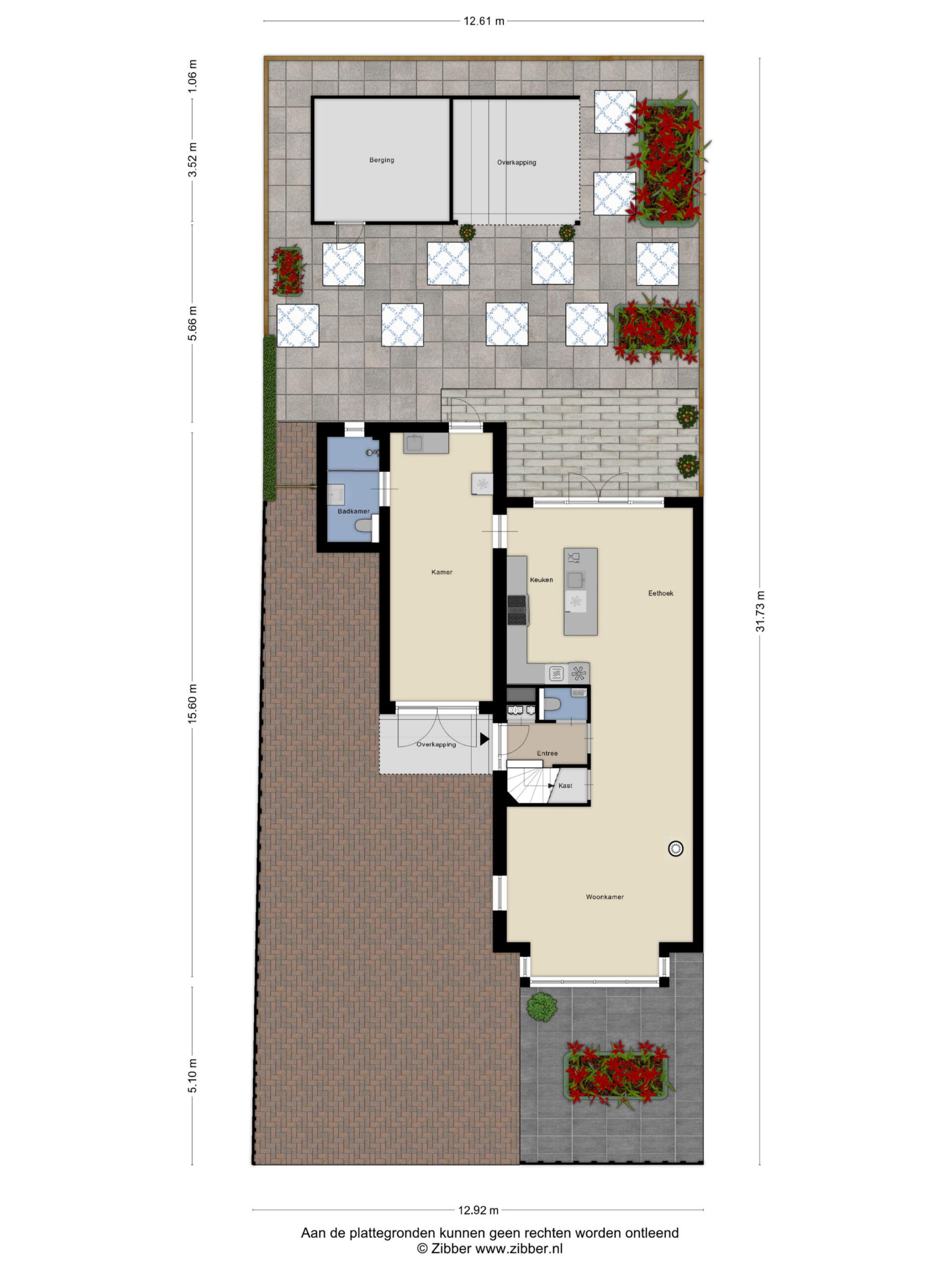 ⢠Onderhoudsarme tuin met veranda en berging;