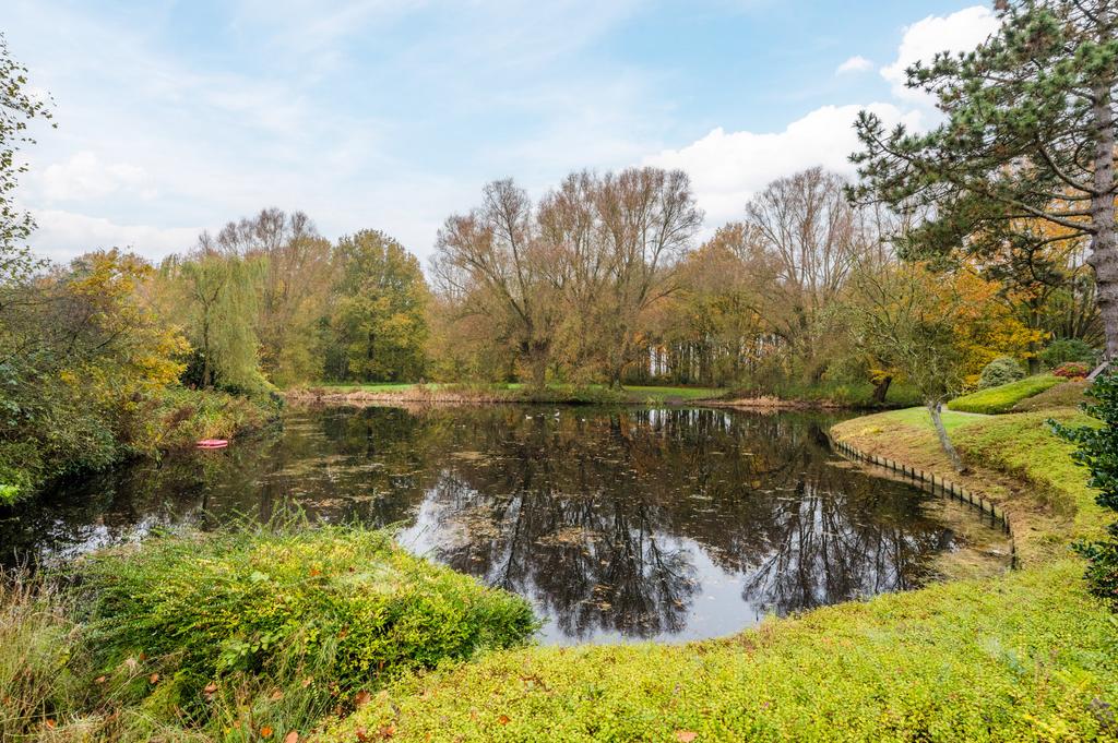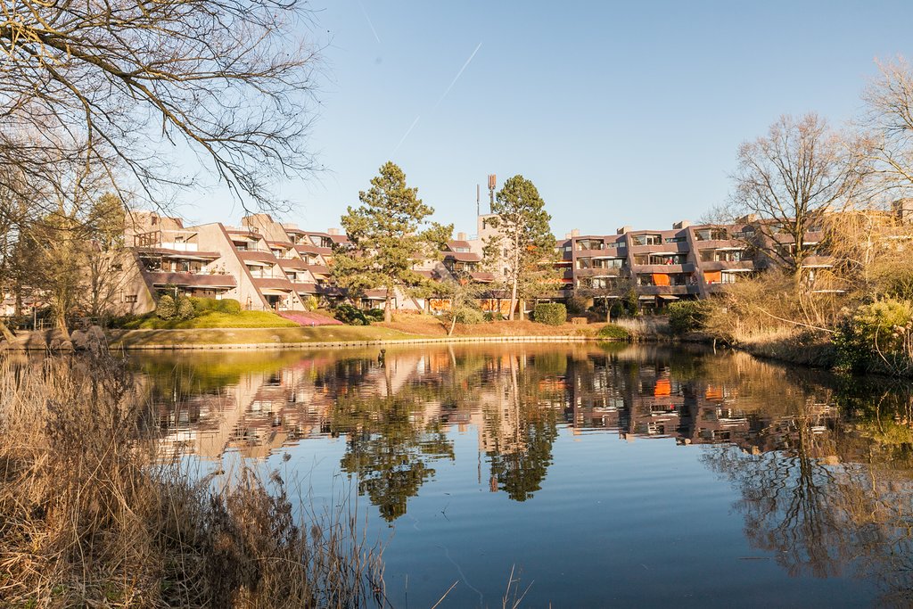 ⢠Groot en zonnig balkonterras op het Zuiden met vrij uitzicht op een park met vijver