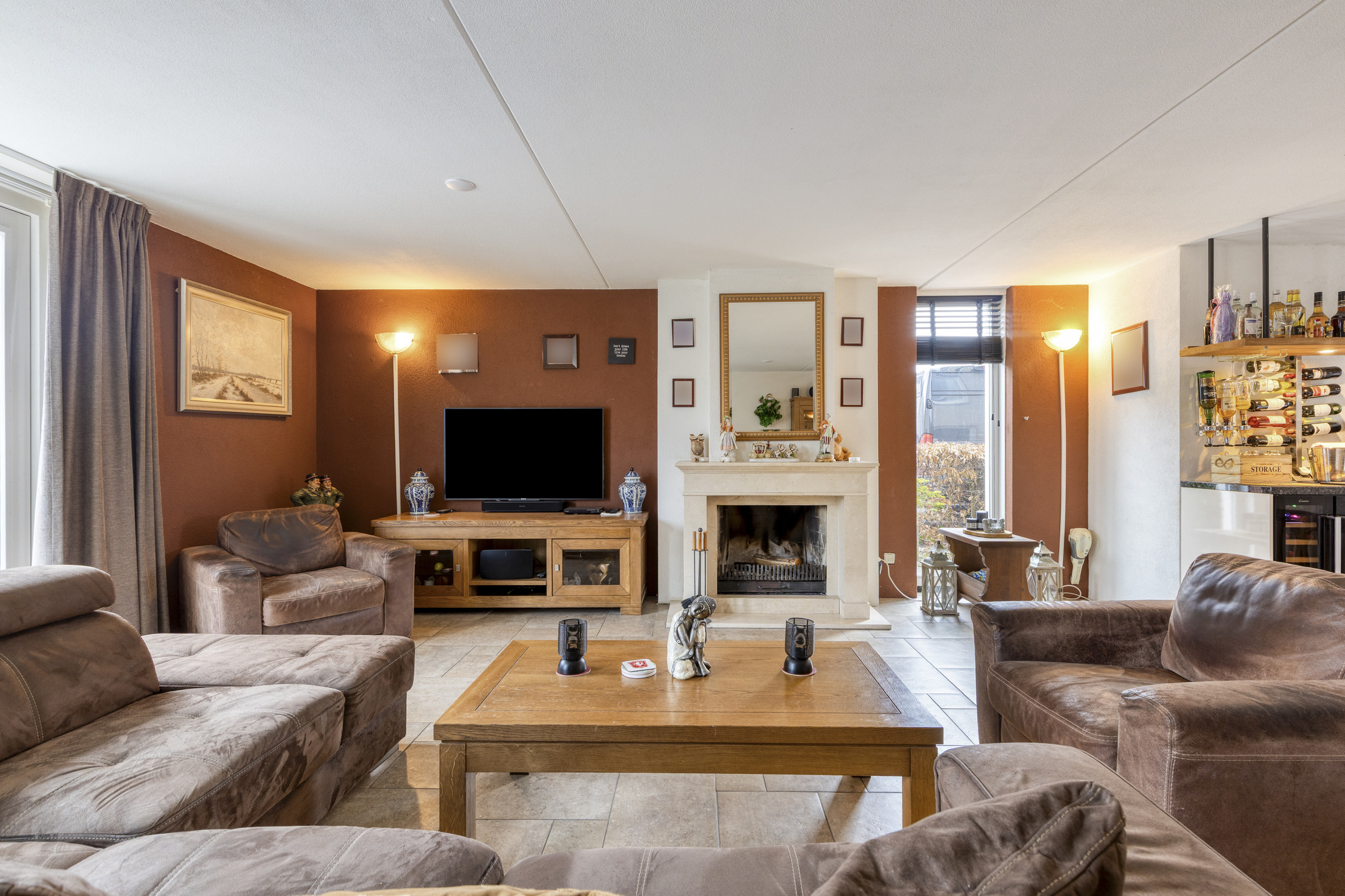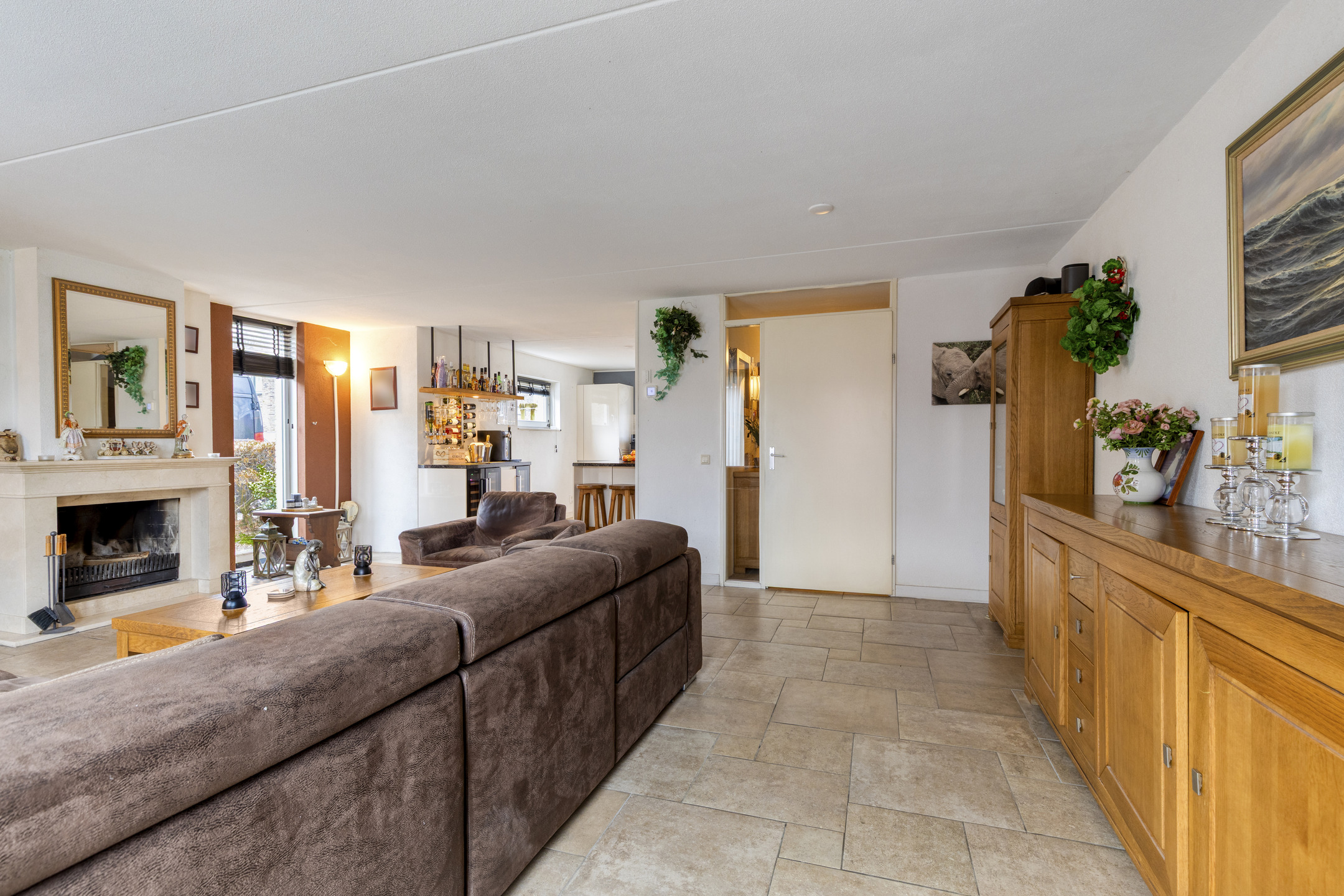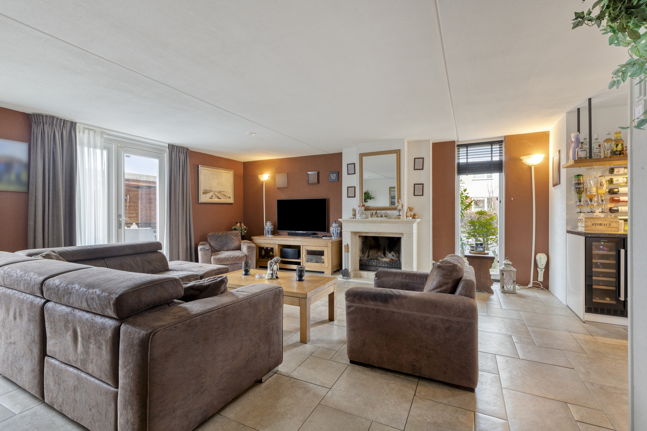 De woonkamer vormt het hart van de begane grond. Dankzij de open indeling en de grote raampartijen geniet u hier van veel lichtinval. Er is volop ruimte voor een royale zithoek en een gezellige eethoek. De openslaande deuren verbinden binnen moeiteloos met buiten. De haard is de sfeervolle eyecatcher die zorgt voor extra karakter en warmte.