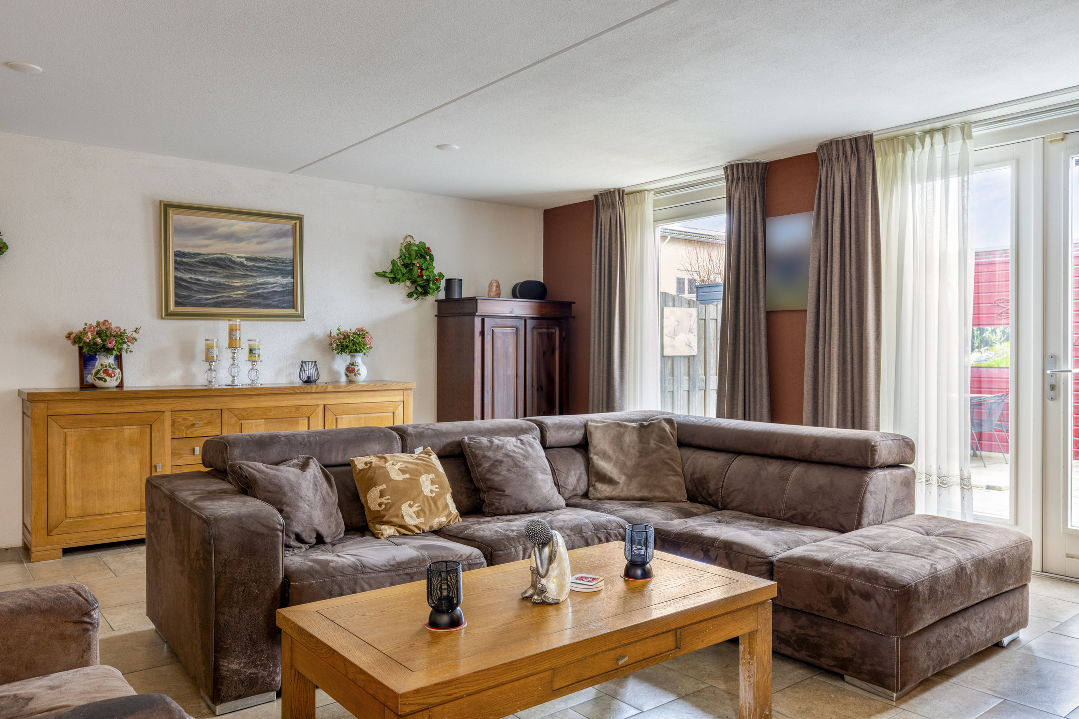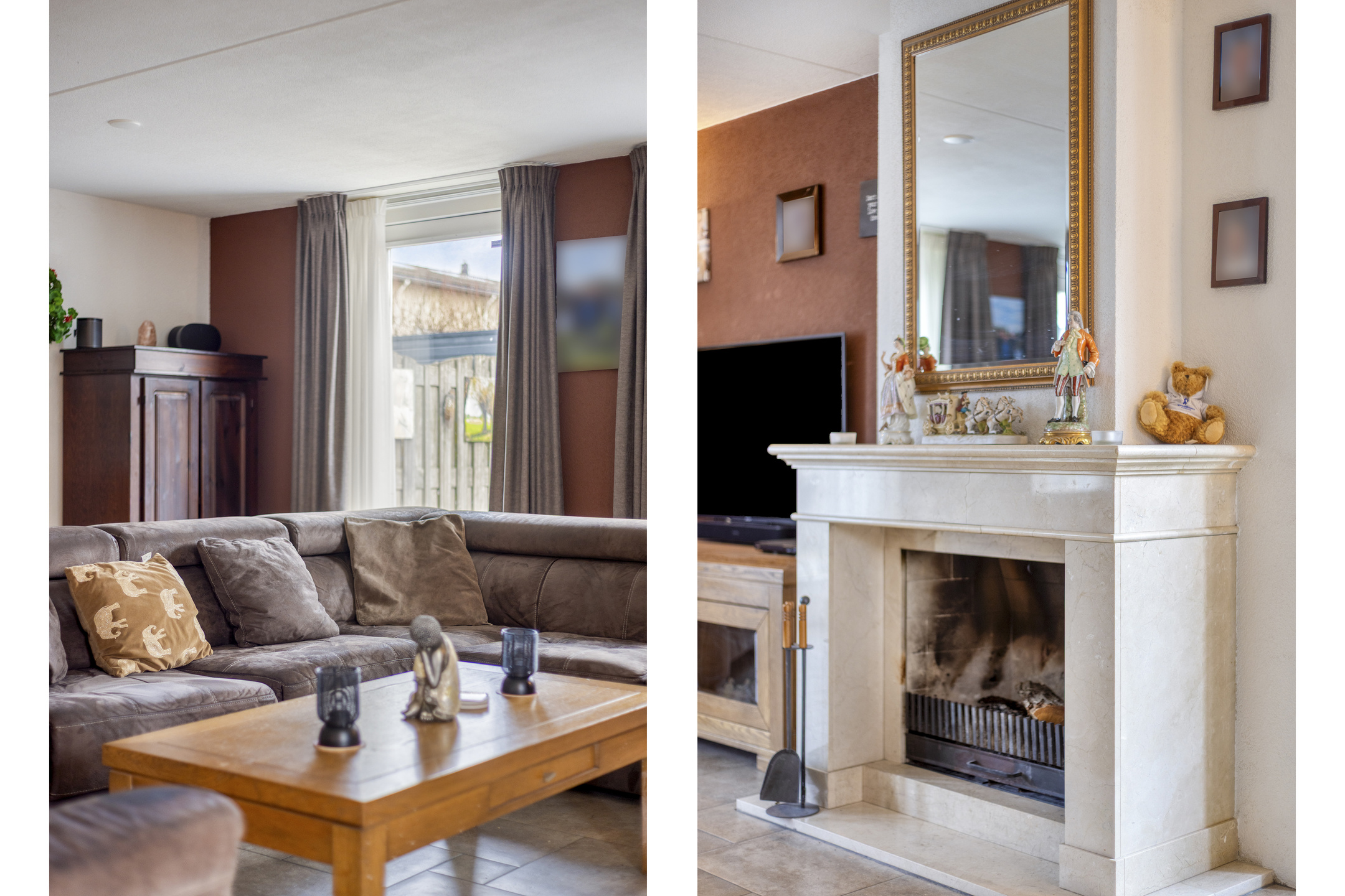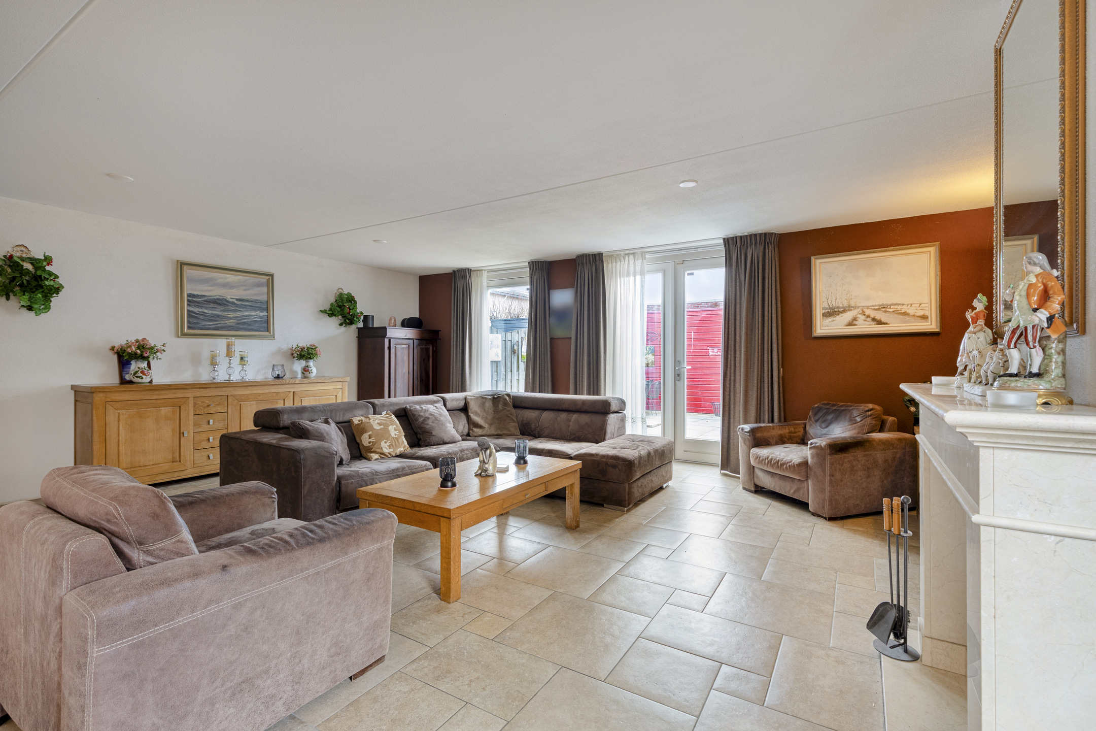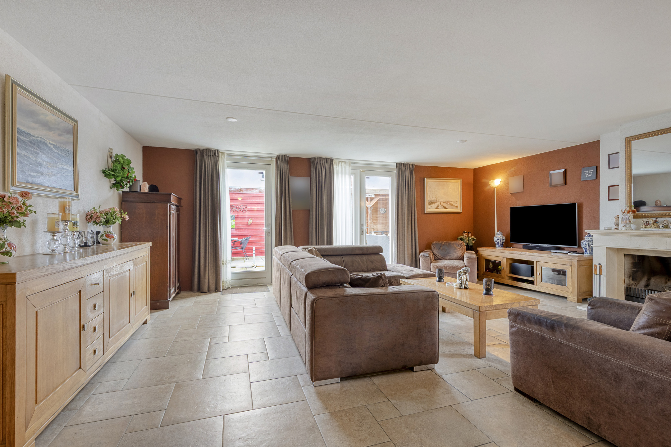De woonkamer vormt het hart van de begane grond. Dankzij de open indeling en de grote raampartijen geniet u hier van veel lichtinval. Er is volop ruimte voor een royale zithoek en een gezellige eethoek. De openslaande deuren verbinden binnen moeiteloos met buiten. De haard is de sfeervolle eyecatcher die zorgt voor extra karakter en warmte.
