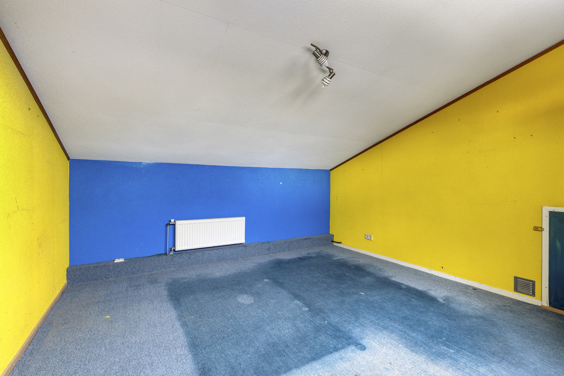 Via een vaste trap bereikt u de zolderverdieping. Op de overloop vindt u de witgoedaansluitingen. Daarnaast is hier een vierde slaapkamer gerealiseerd. De kamer is ruim, licht en beschikt over een prettige stahoogte. Ideaal als extra slaapkamer, werkruimte of hobbykamer.