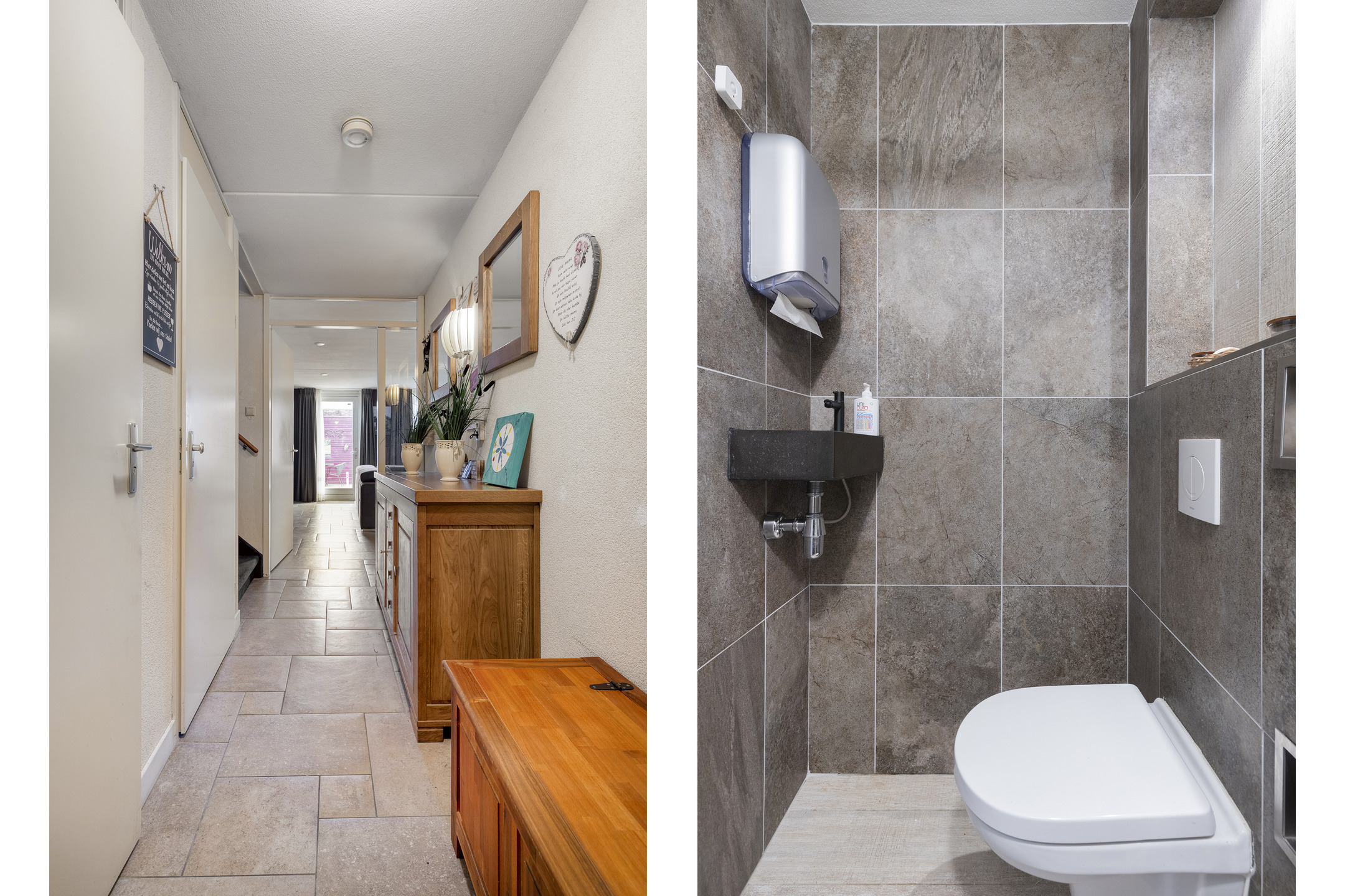 U betreedt de woning via de voortuin aan de straatzijde. Eenmaal binnen komt u in de hal die direct een verzorgde indruk maakt. Hier vindt u de toiletruimte en de trap naar de 1e verdieping, maar ook doorgang naar de woonkamer.
