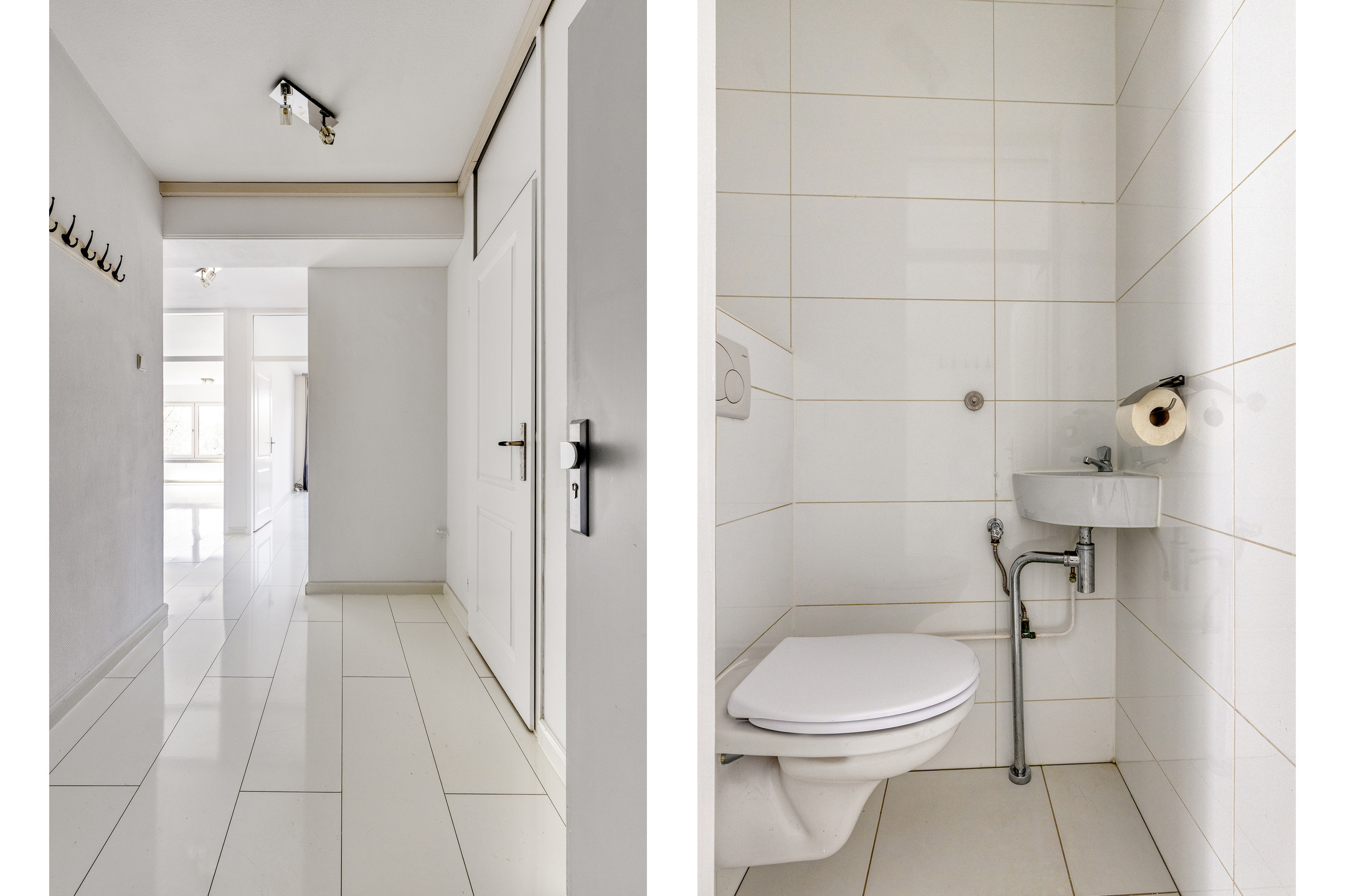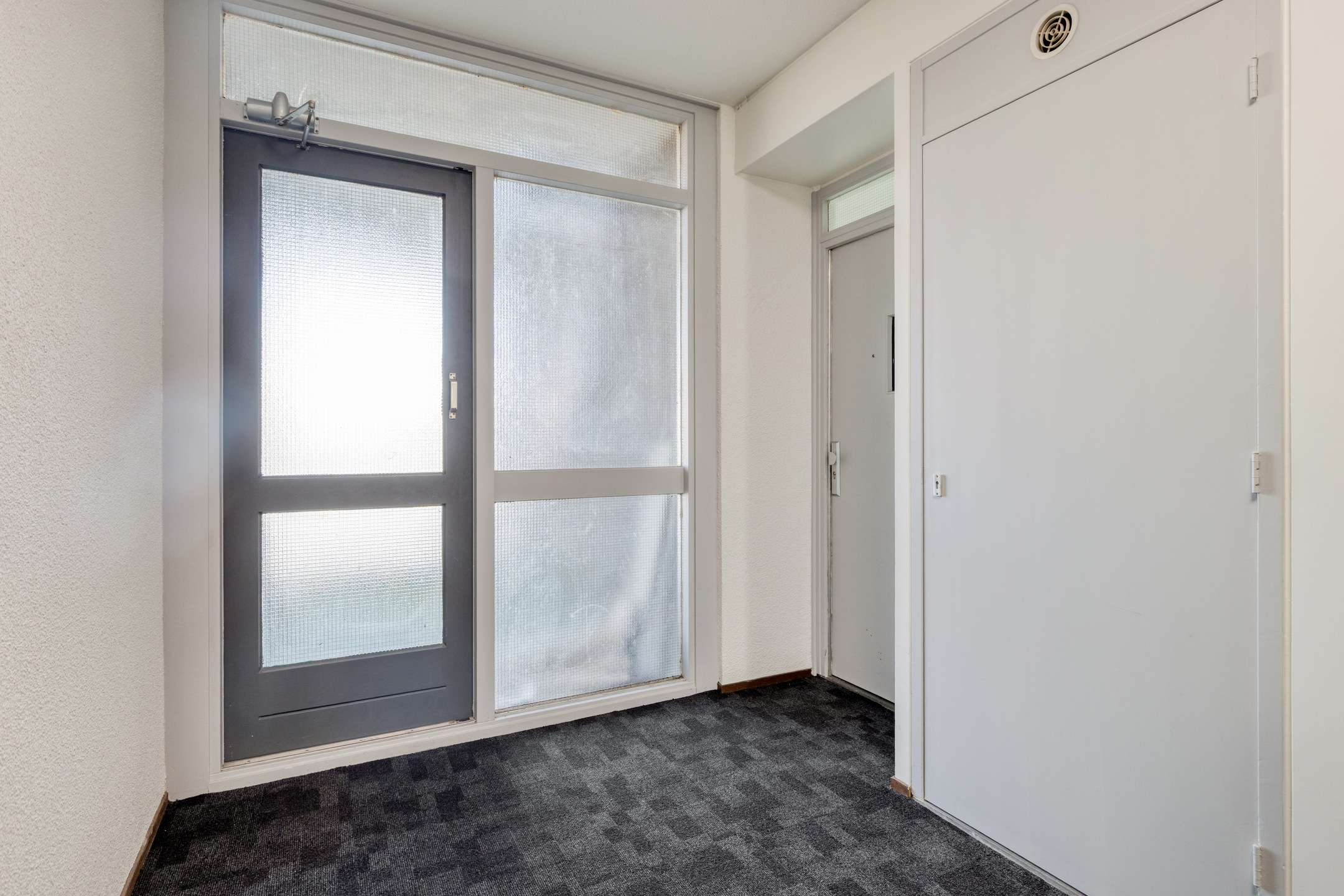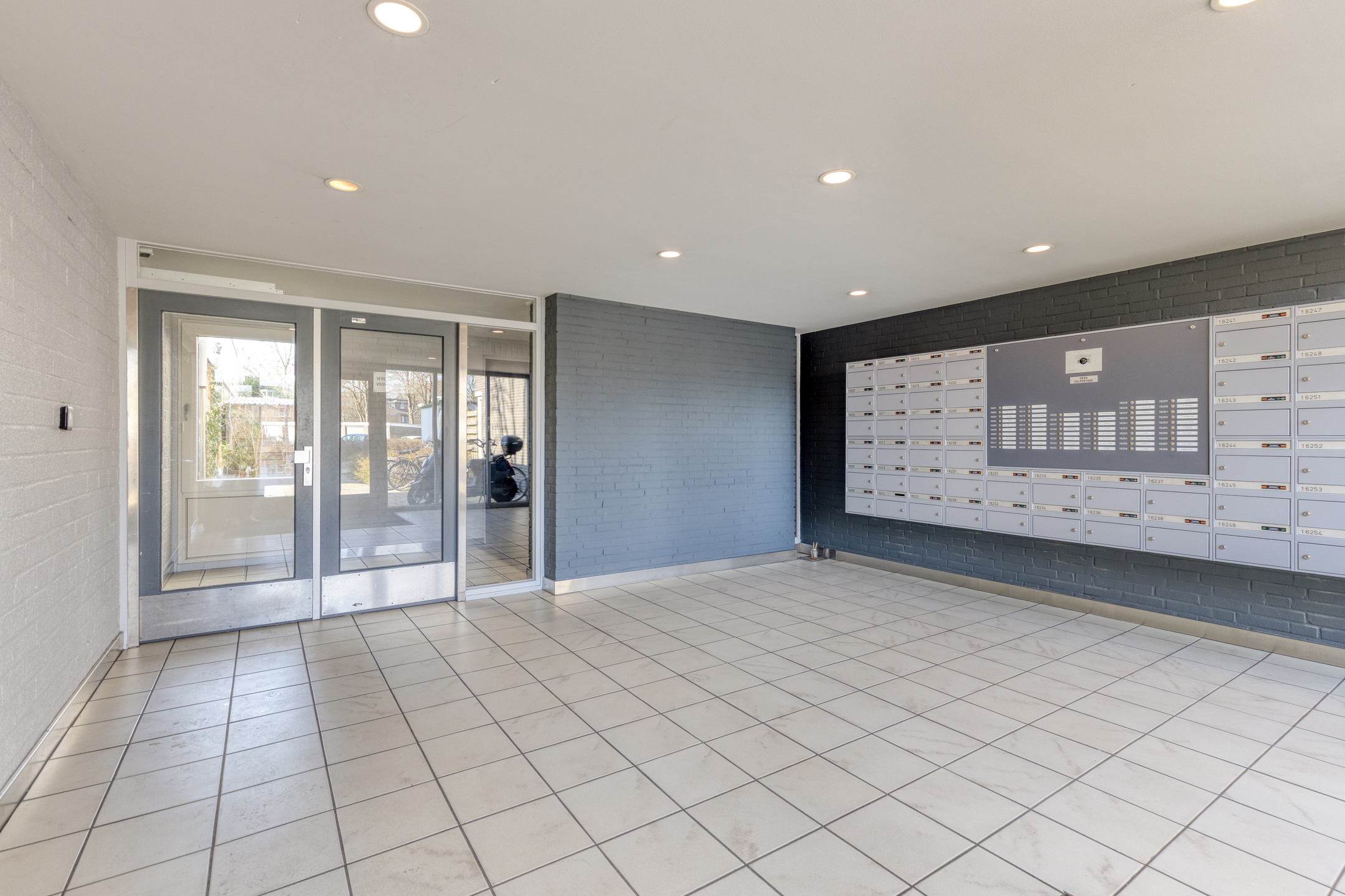 U betreedt het complex via de gezamenlijke entree, waar zich de brievenbussen en intercominstallatie bevinden. Vanuit hier bereikt u via de lift of trap de verdieping van de woning. Eenmaal binnen komt u in de hal, een centrale ruimte die direct een verzorgde indruk maakt en voldoende plek biedt voor een kapstok of opbergmeubel. Vanuit deze hal heeft u toegang tot alle vertrekken van het appartement, wat zorgt voor een praktische en overzichtelijke indeling.