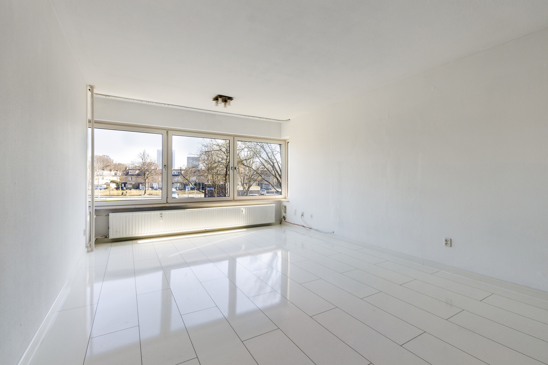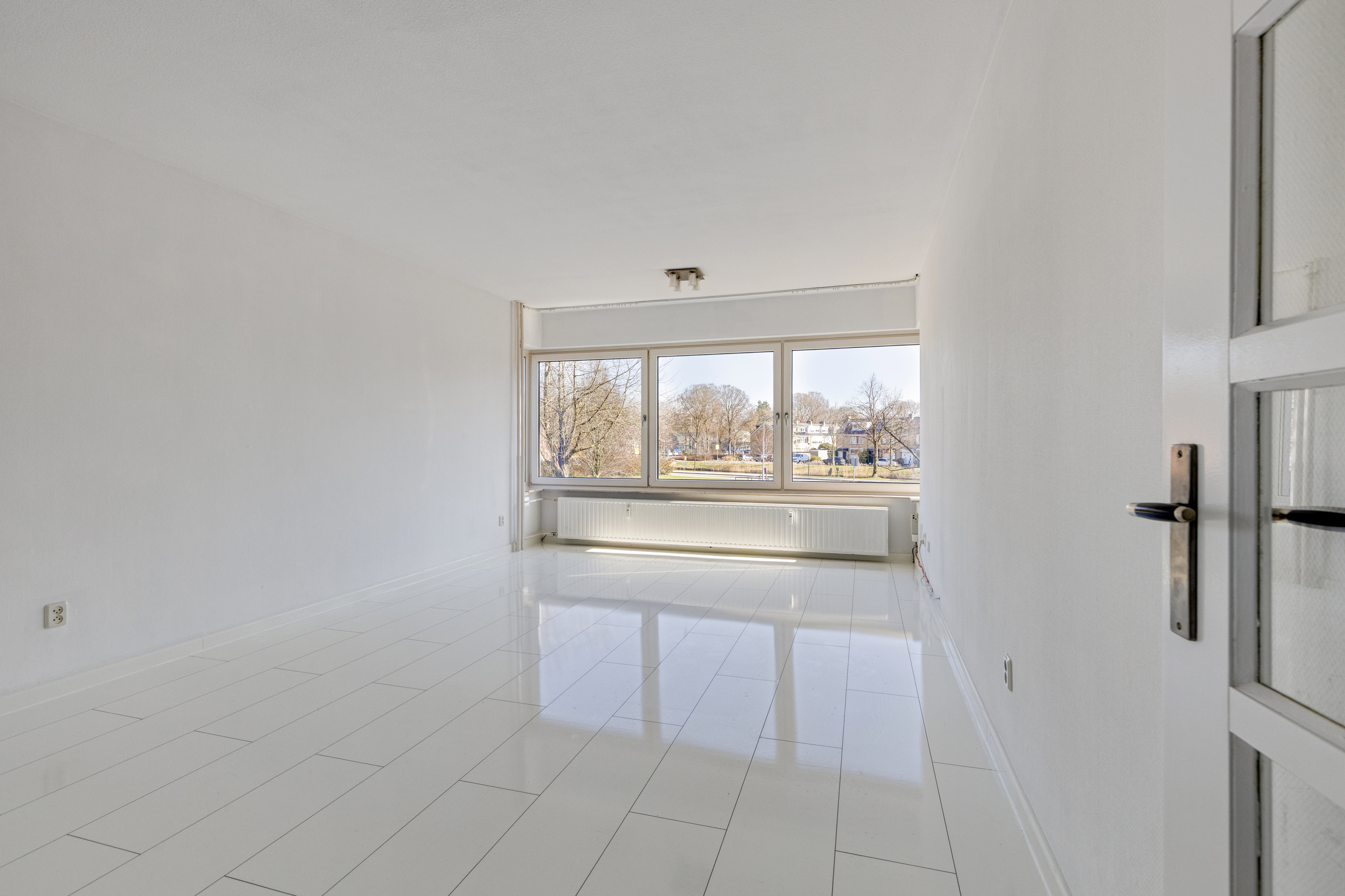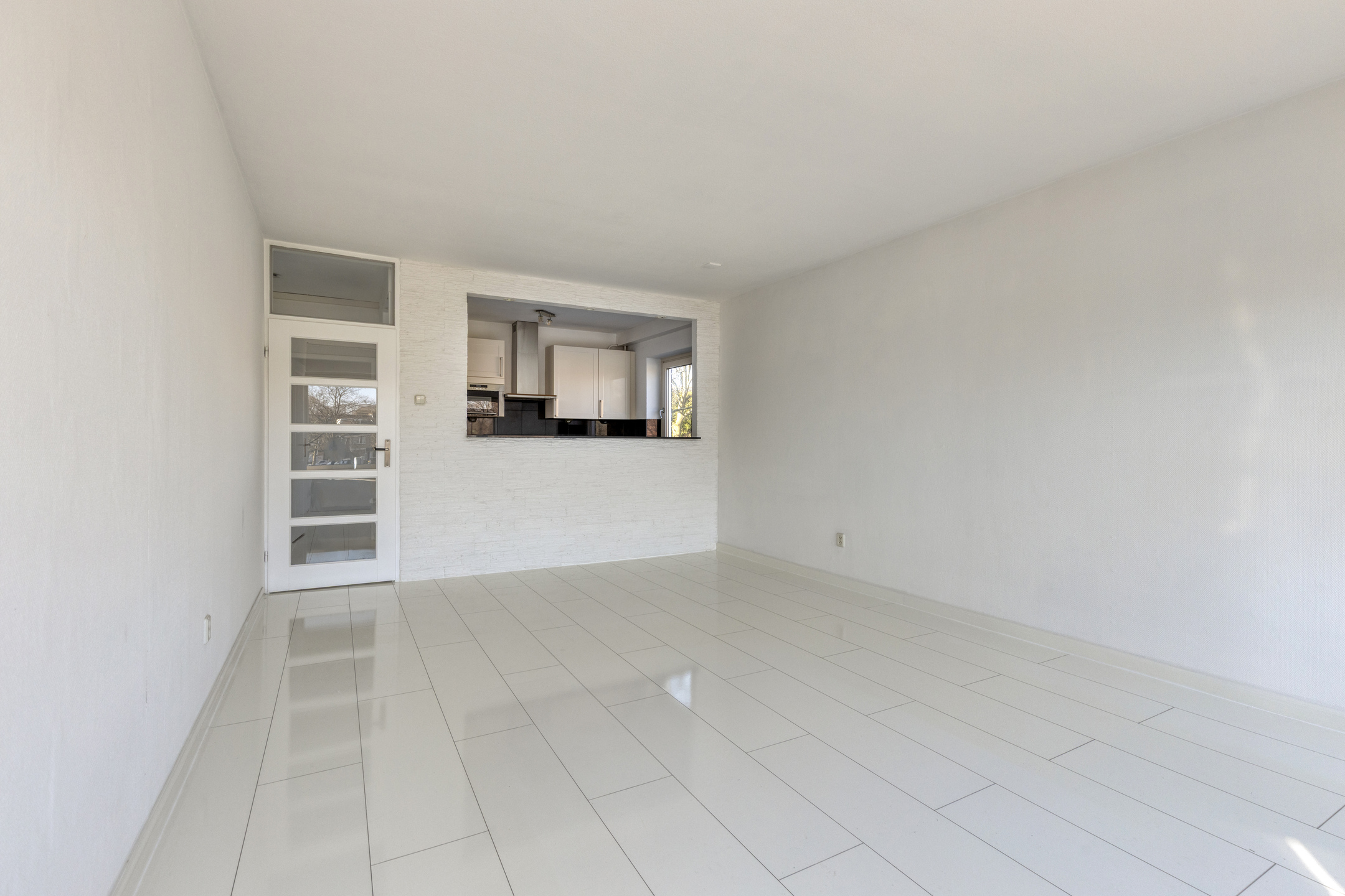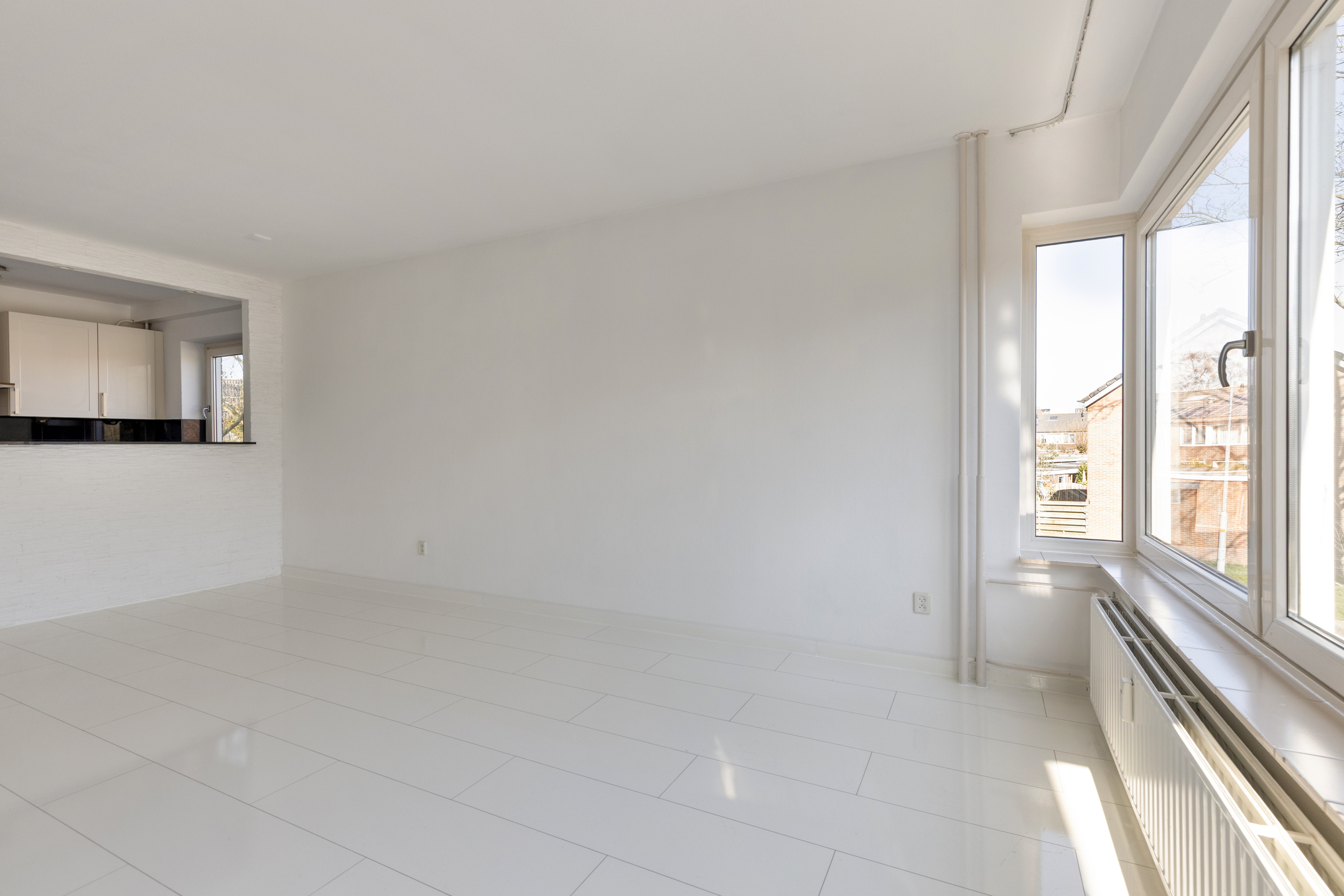 De woonkamer vormt het hart van de woning en voelt ruim en licht aan. Dankzij de grote raampartijen stroomt het daglicht rijkelijk naar binnen, wat zorgt voor een prettige en open sfeer. De ruimte biedt volop mogelijkheden om een comfortabele zithoek te creƫren en daarnaast een gezellige eethoek te plaatsen. Door de open indeling staat de woonkamer in fijne verbinding met de keuken, waardoor het een heerlijke plek is om te wonen en te ontspannen.