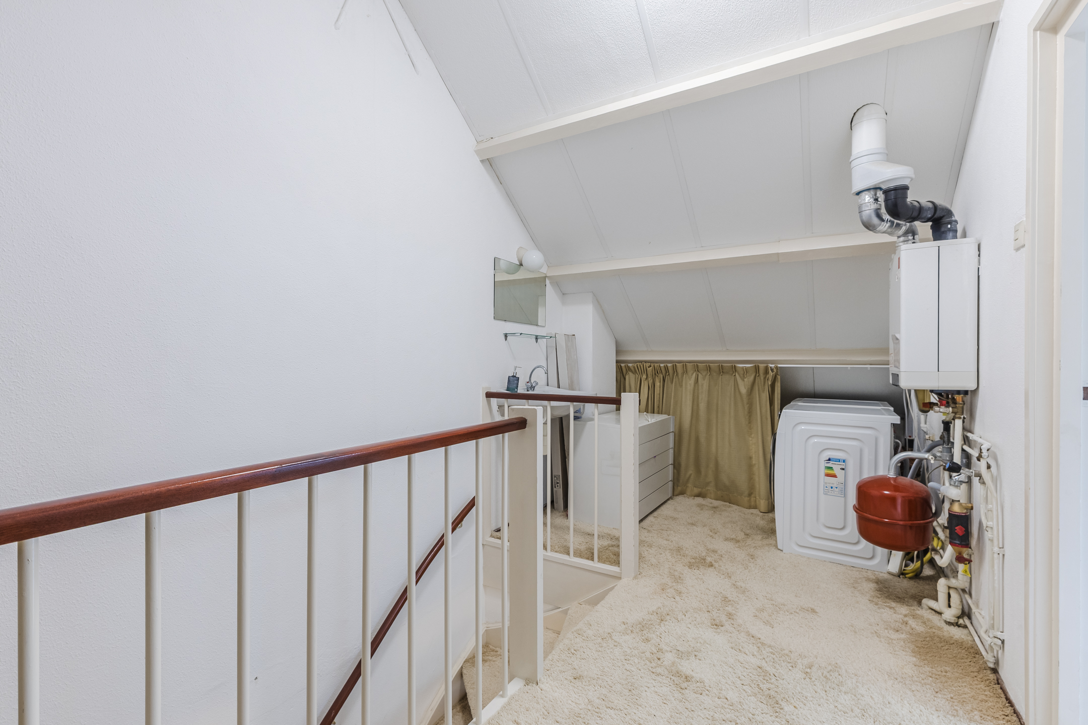 Via de vaste trap op de eerste verdieping, bereiken we de ruime tweede verdieping met overloop en vierde slaapkamer. Op de voorzolder/overloop is een opstelplaats voor de wasmachine en droger aanwezig, alsmede een extra wastafel. De ruime vierde slaapkamer met dakkapel is wederom netjes afgewerkt.