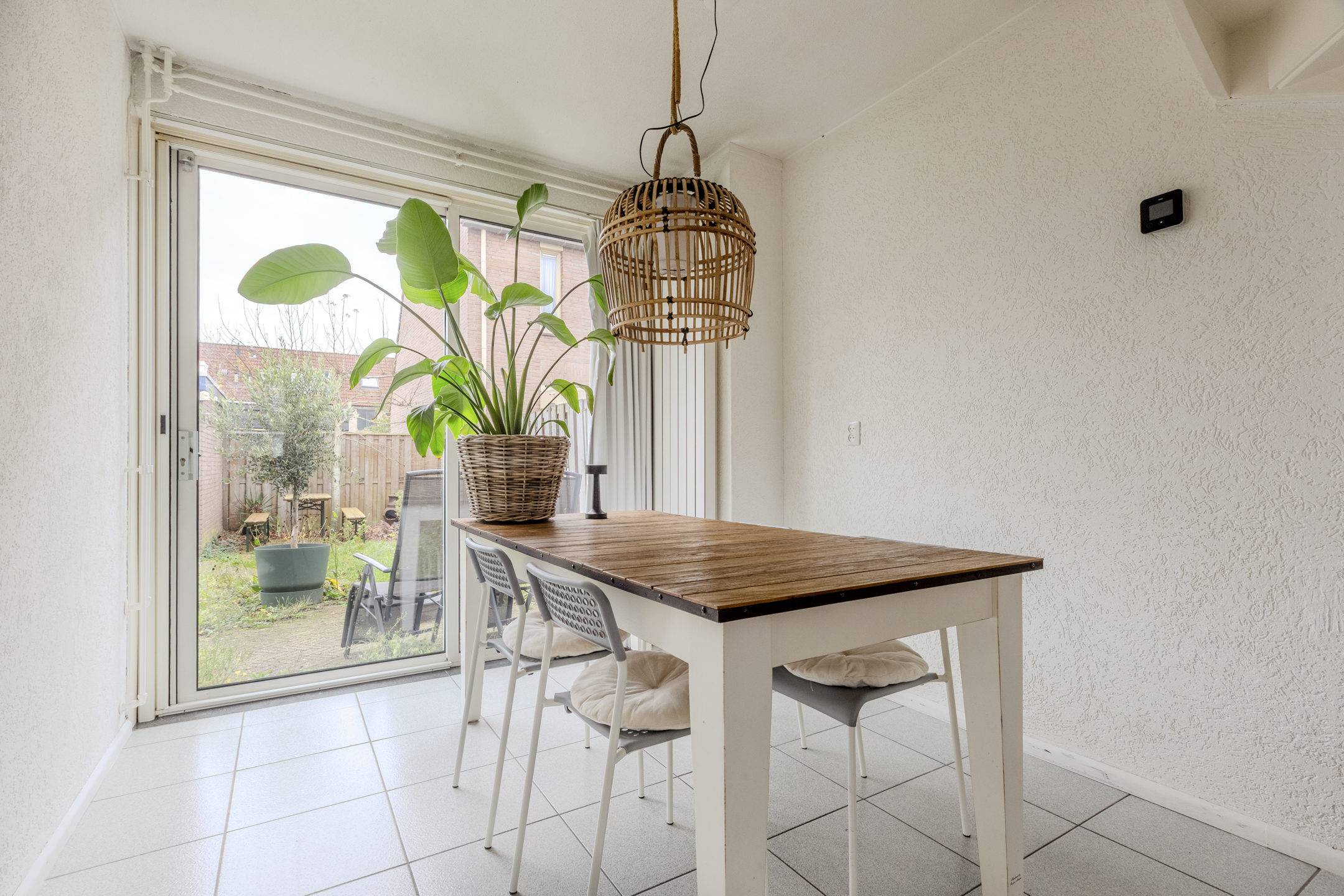 Een grote schuifpui en extra achterdeur bieden toegang tot de tuin.