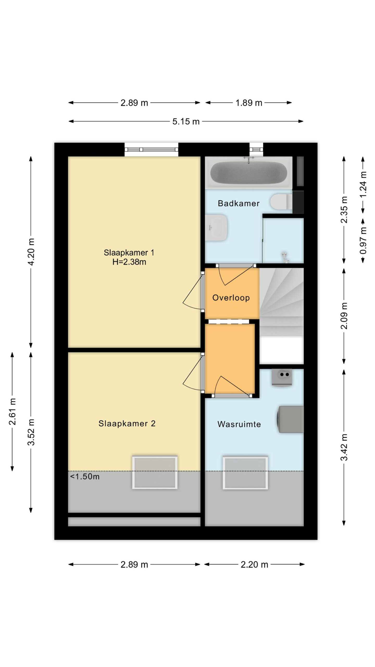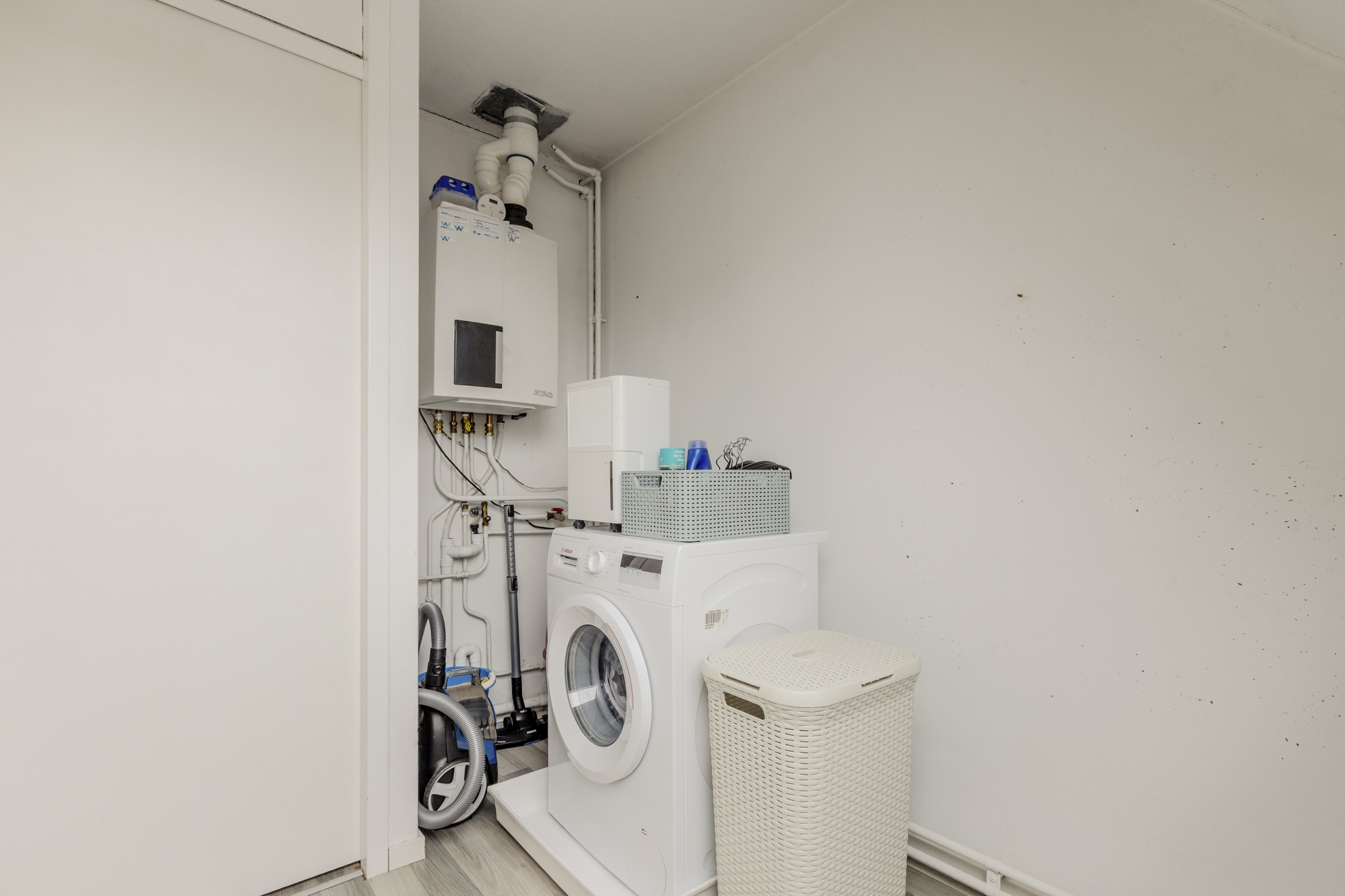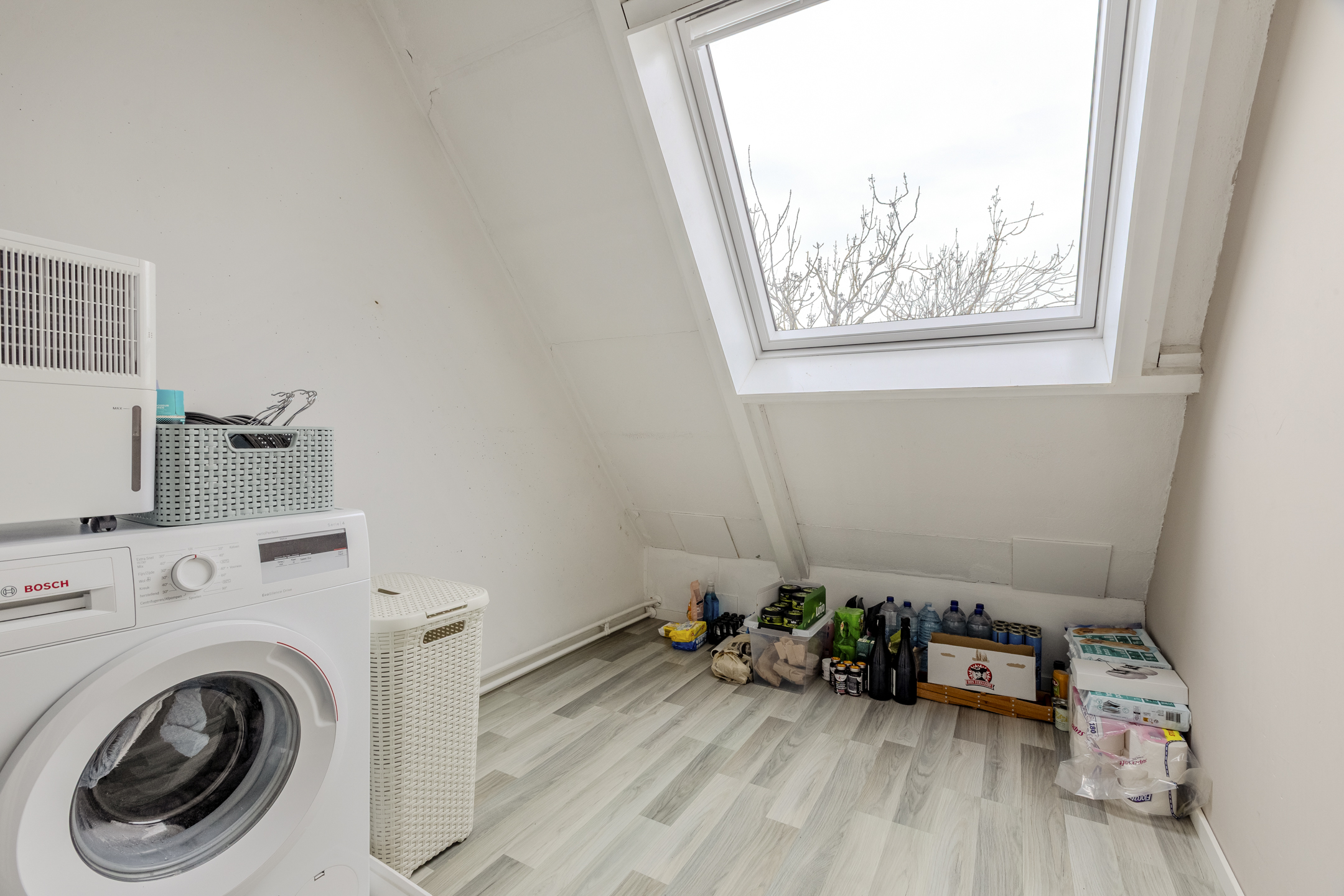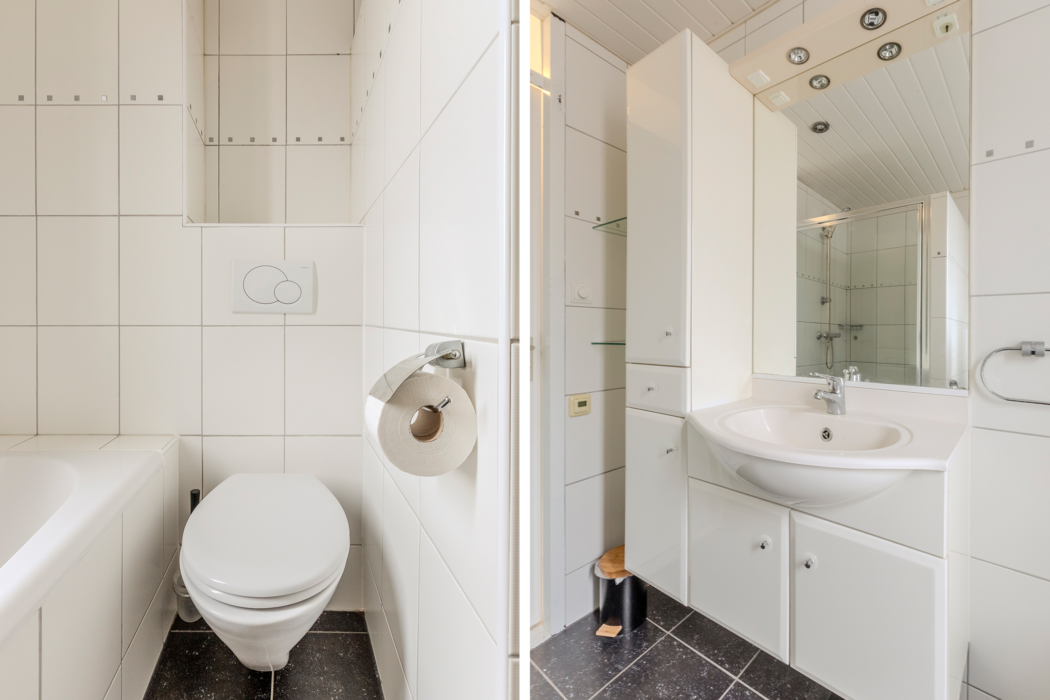 Op deze verdieping vinden we 2 slaapkamers, een aparte wasruimte/berging (eventueel extra slaapkamer/thuiswerkplek!) en de badkamer met vloerverwarming, een tweede toilet, een wastafel met meubel, een ligbad en een aparte inloopdouche.