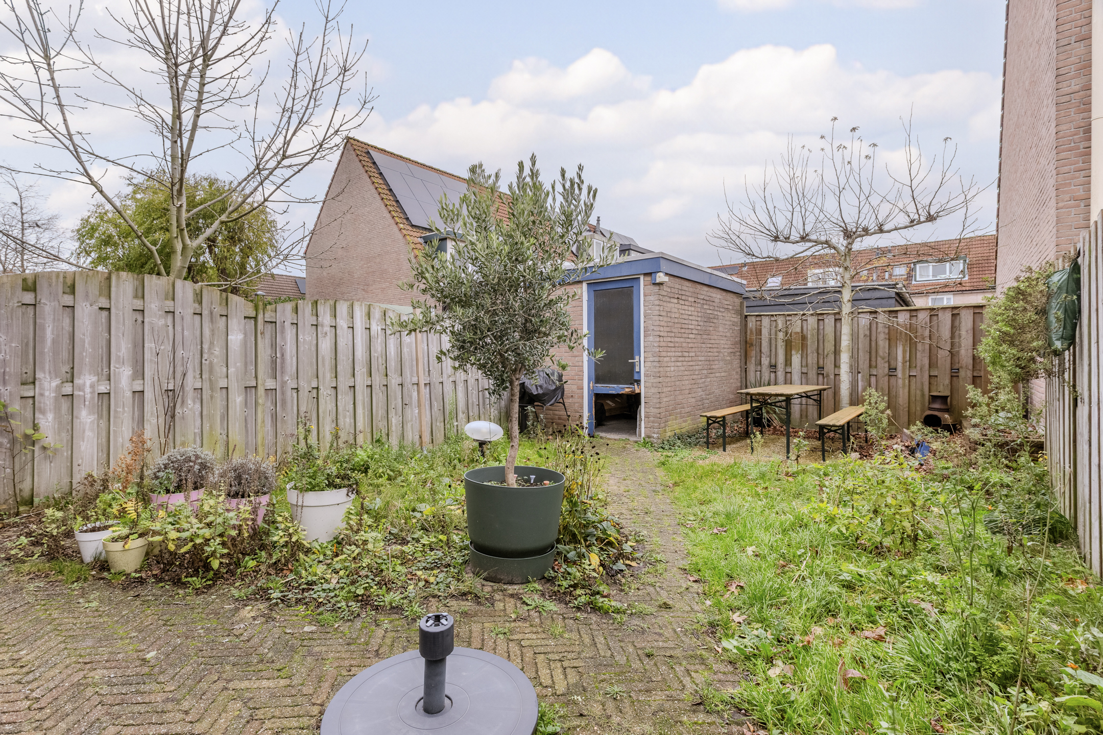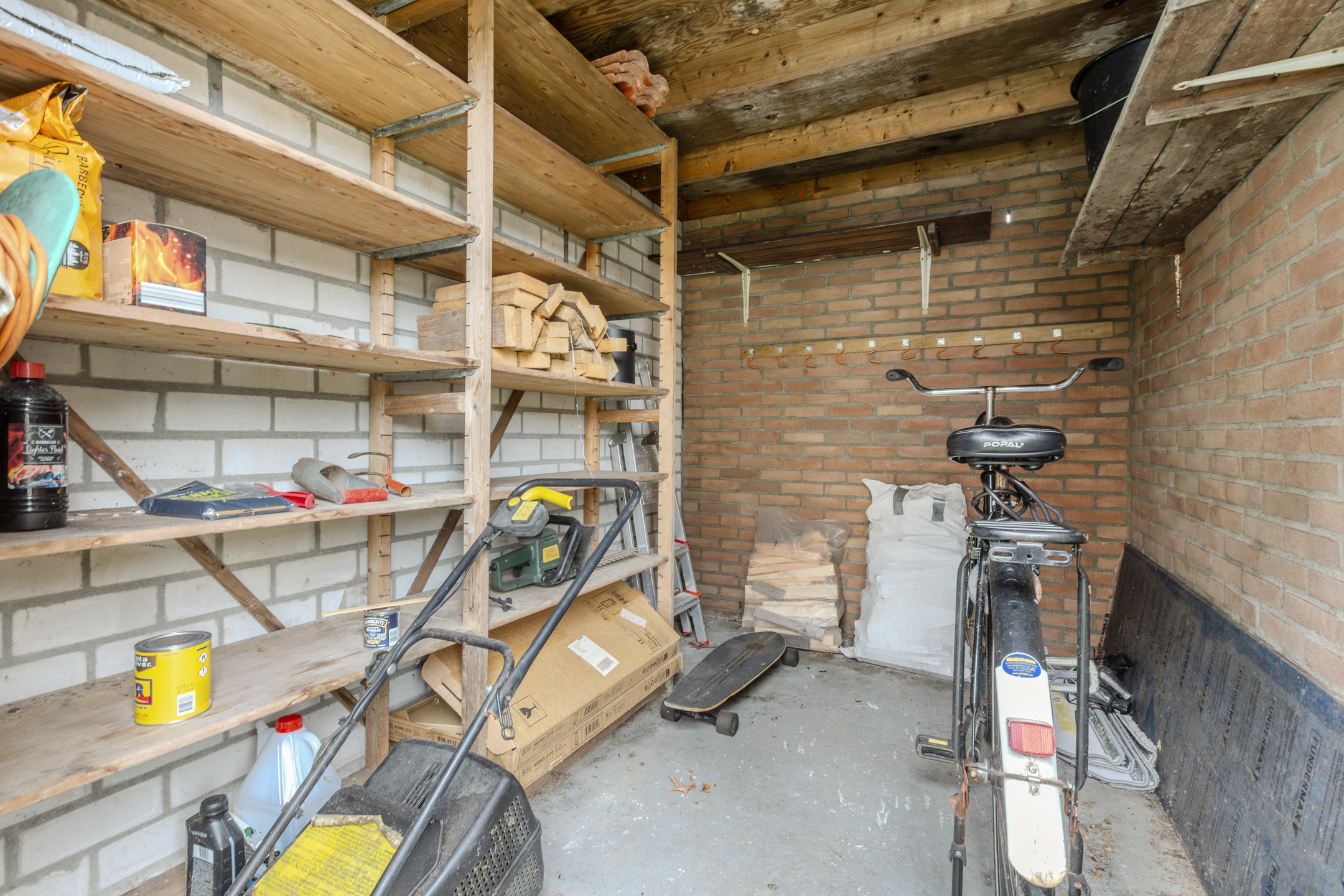De ruime achtertuin op het zuidoosten is een heel fijne plek om buiten te zitten. Je kunt hier vrijwel de hele dag de zon en/of schaduw opzoeken. De tuin beschikt over een variatie van tegels en groen, achterin de tuin staat een handige stenen berging welke voorzien is van elektriciteit. De tuin is tevens via een achterom toegankelijk.