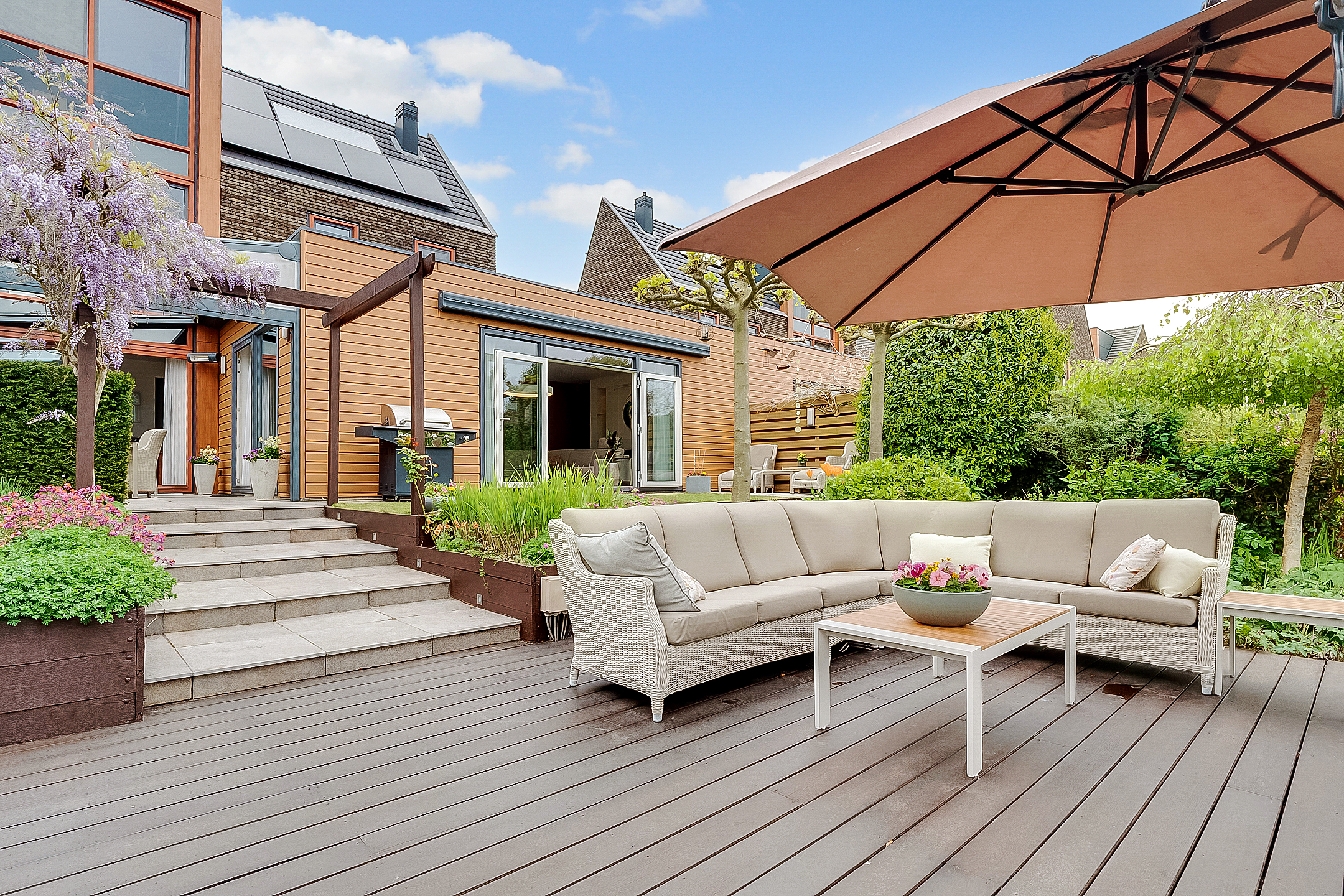 Uitgebouwde woonkamer en verwarmde tuinkamer