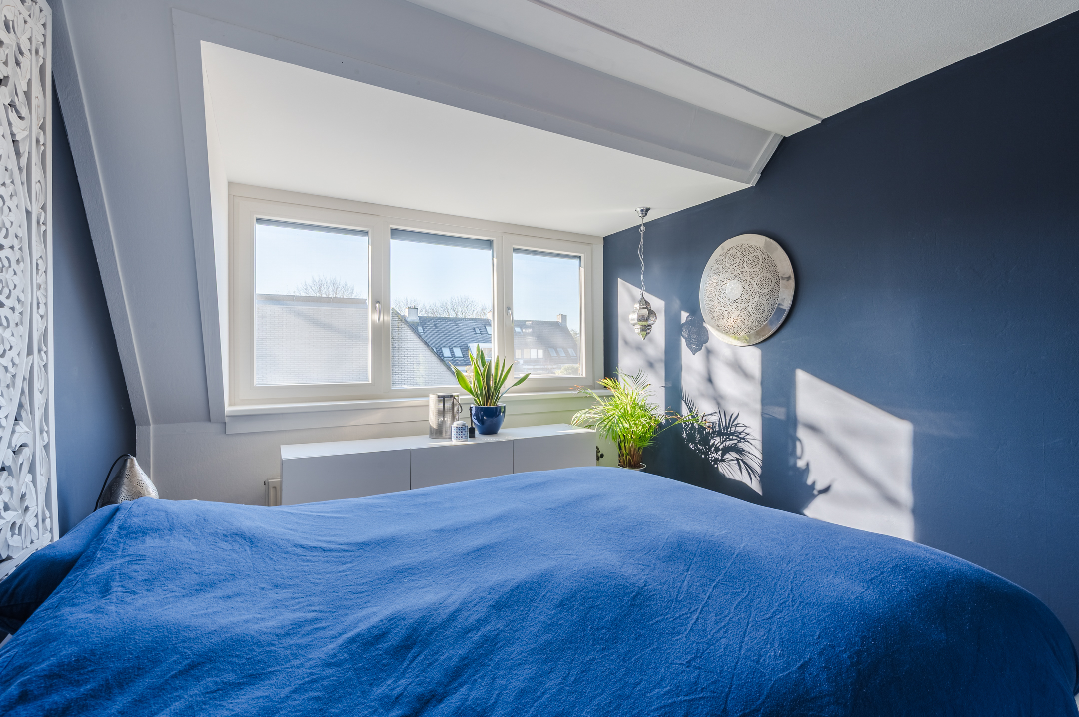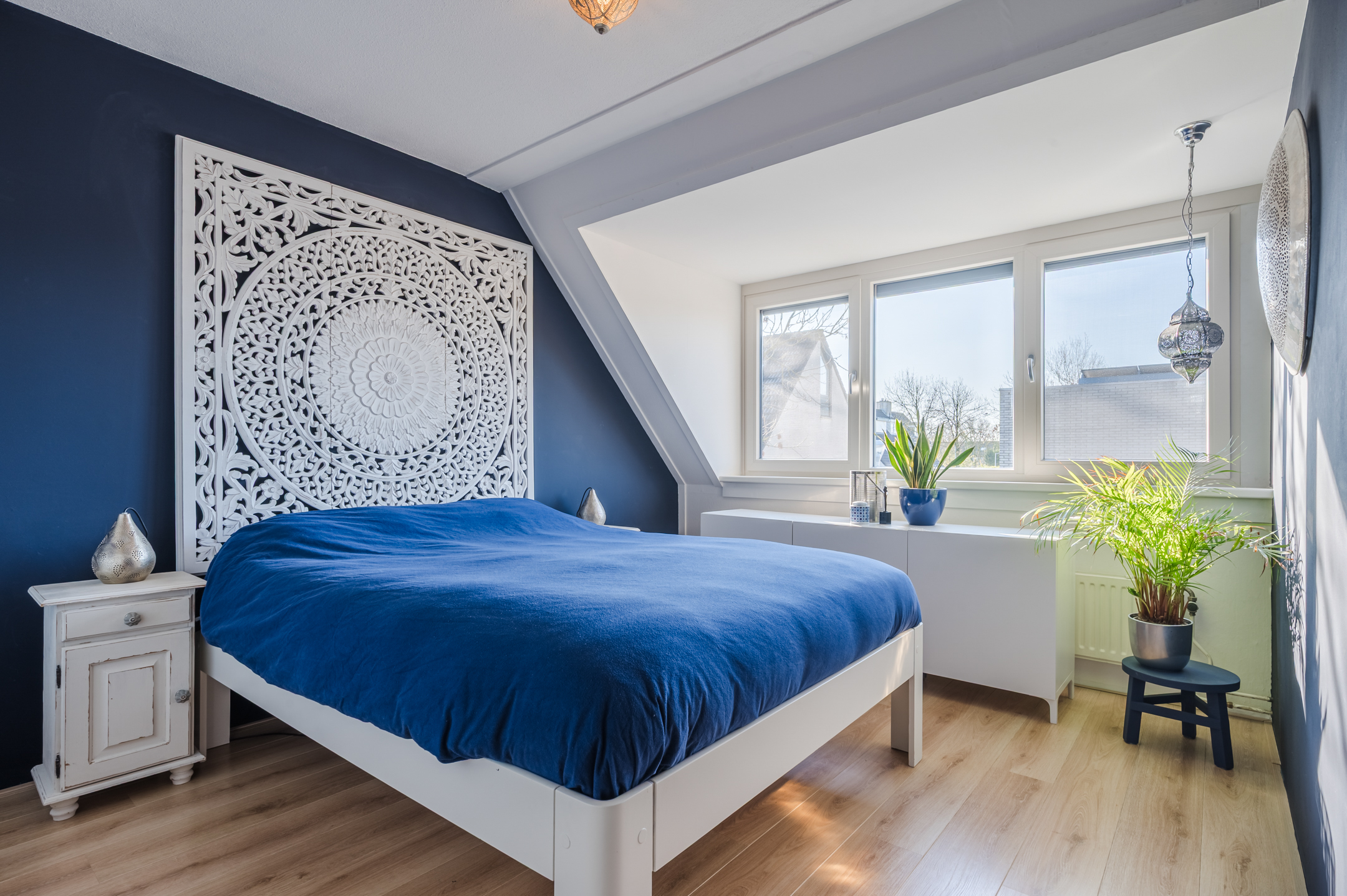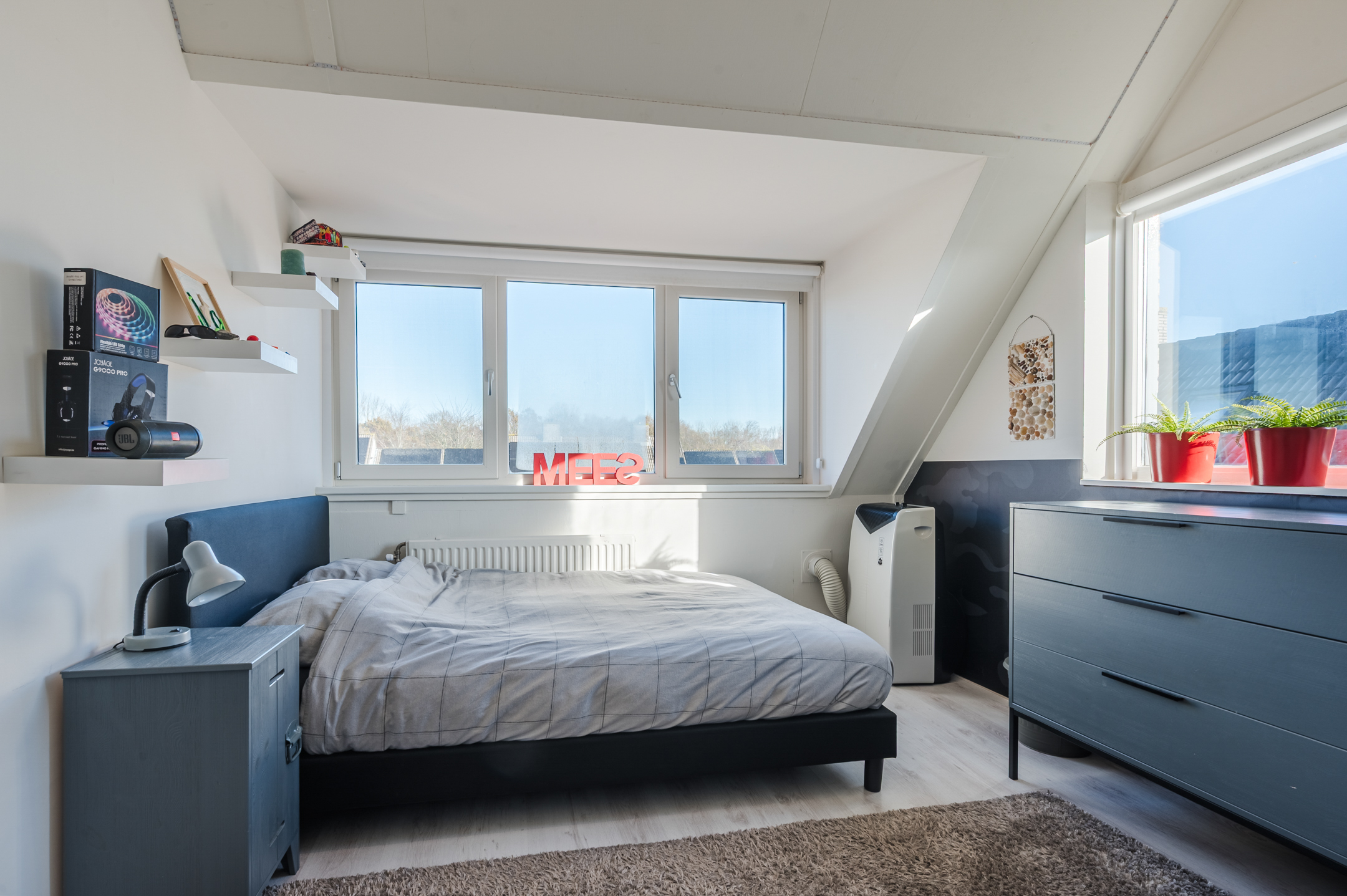 Via de vaste trap op de eerste verdieping bereiken we de ruime tweede verdieping met overloop en 4e slaapkamer. De aansluitingen voor de witgoedopstelling bevinden zich op de overloop en er is onder het schuine dak veel bergruimte achter knieschotten aanwezig.
