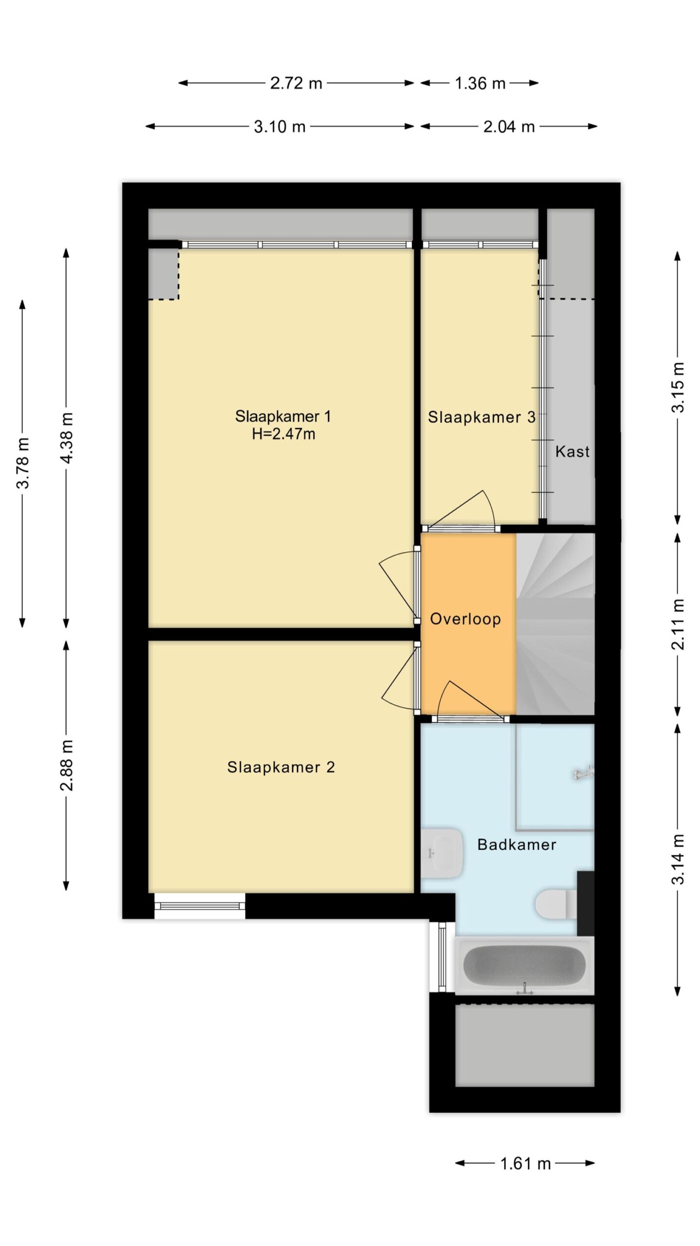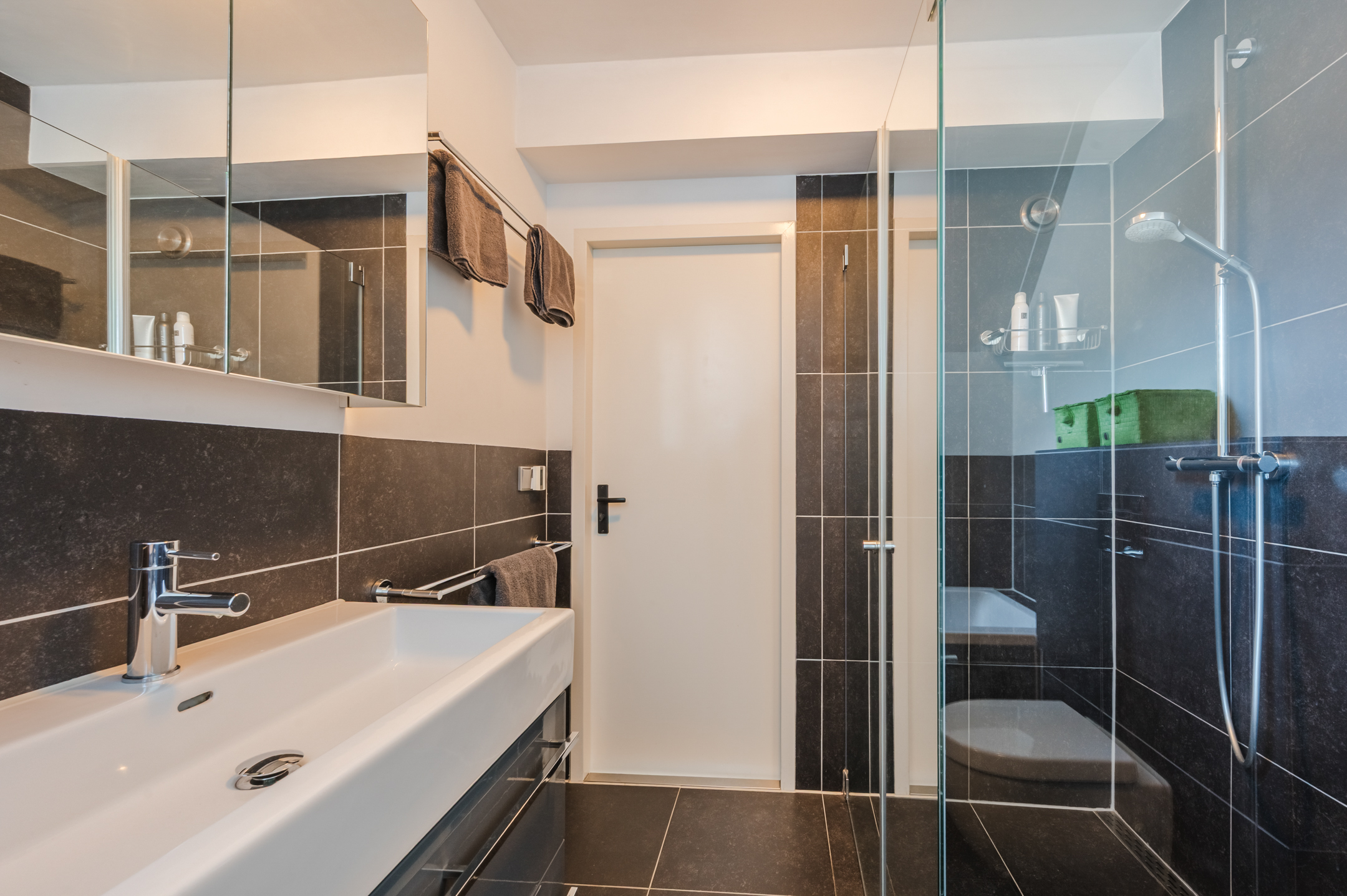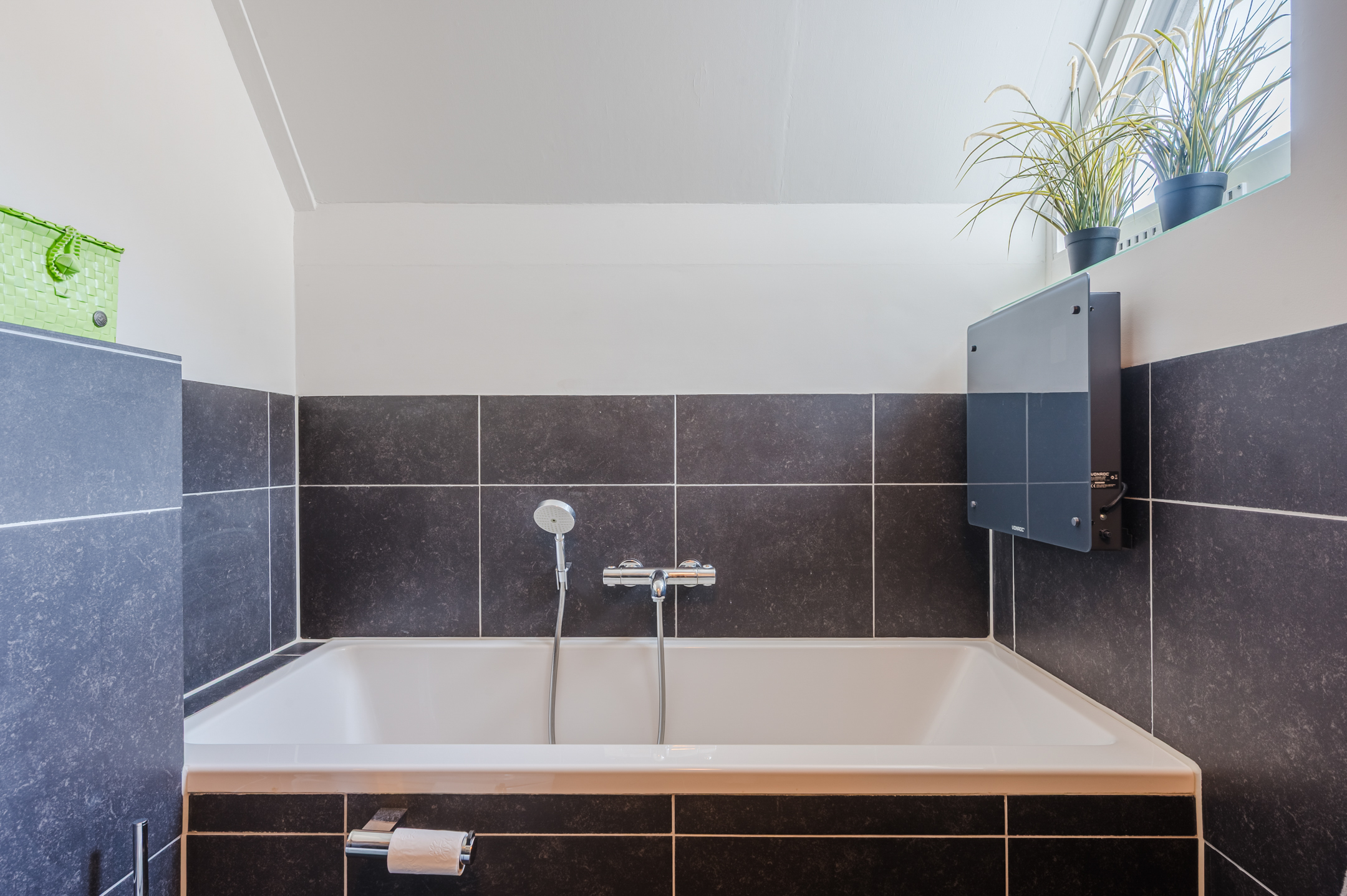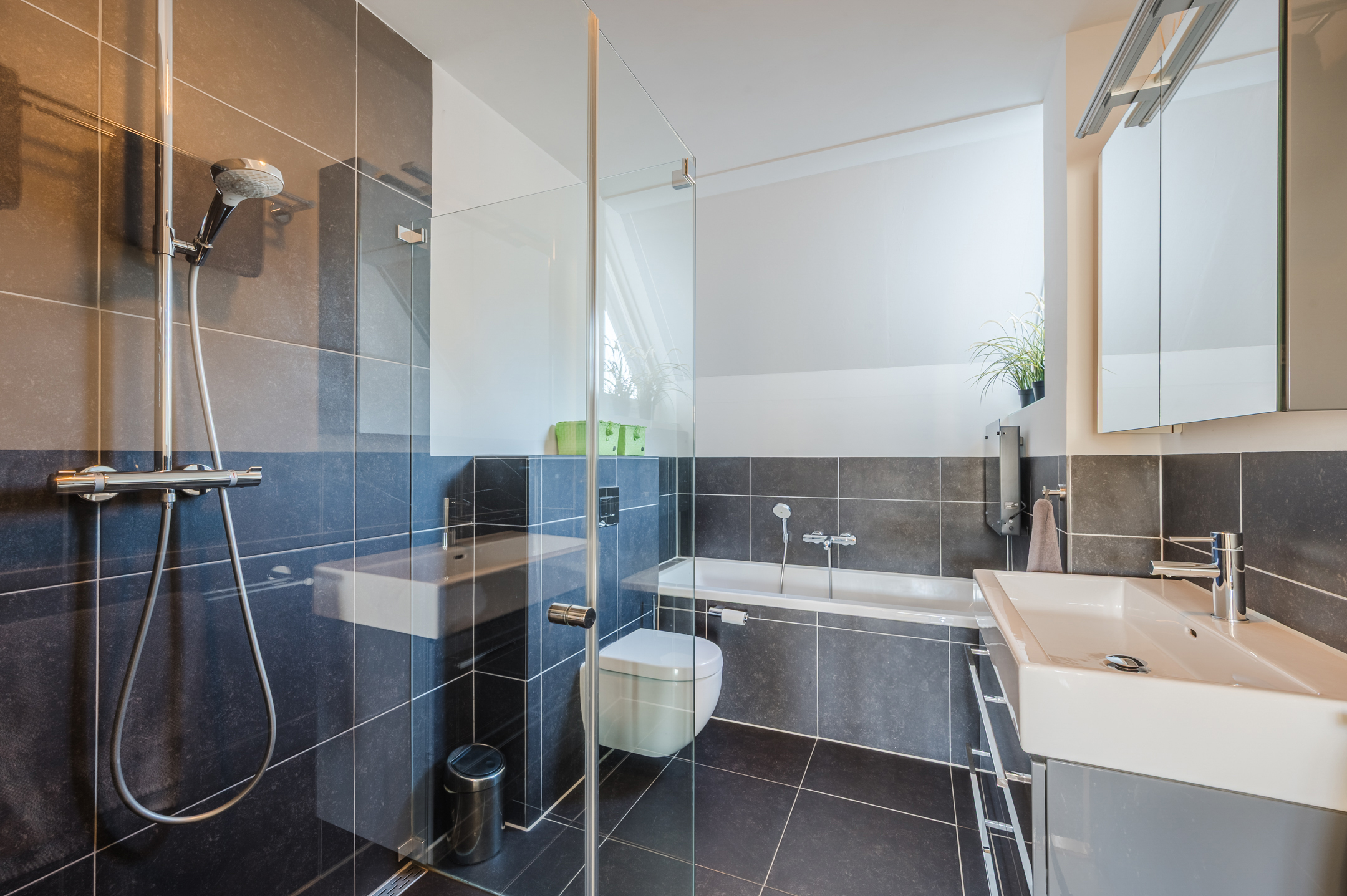 Vanaf de overloop is er toegang tot 3 slaapkamers ā alle netjes afgewerkt met een laminaatvloer ā en de grote badkamer (met vloerverwarming) met tweede toilet, wastafel met meubel, ligbad en een aparte inloopdouche.