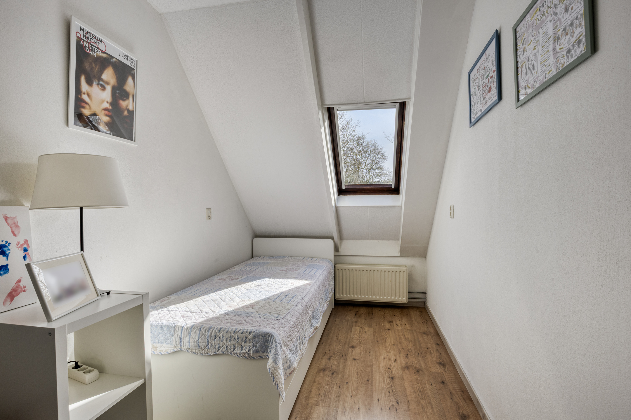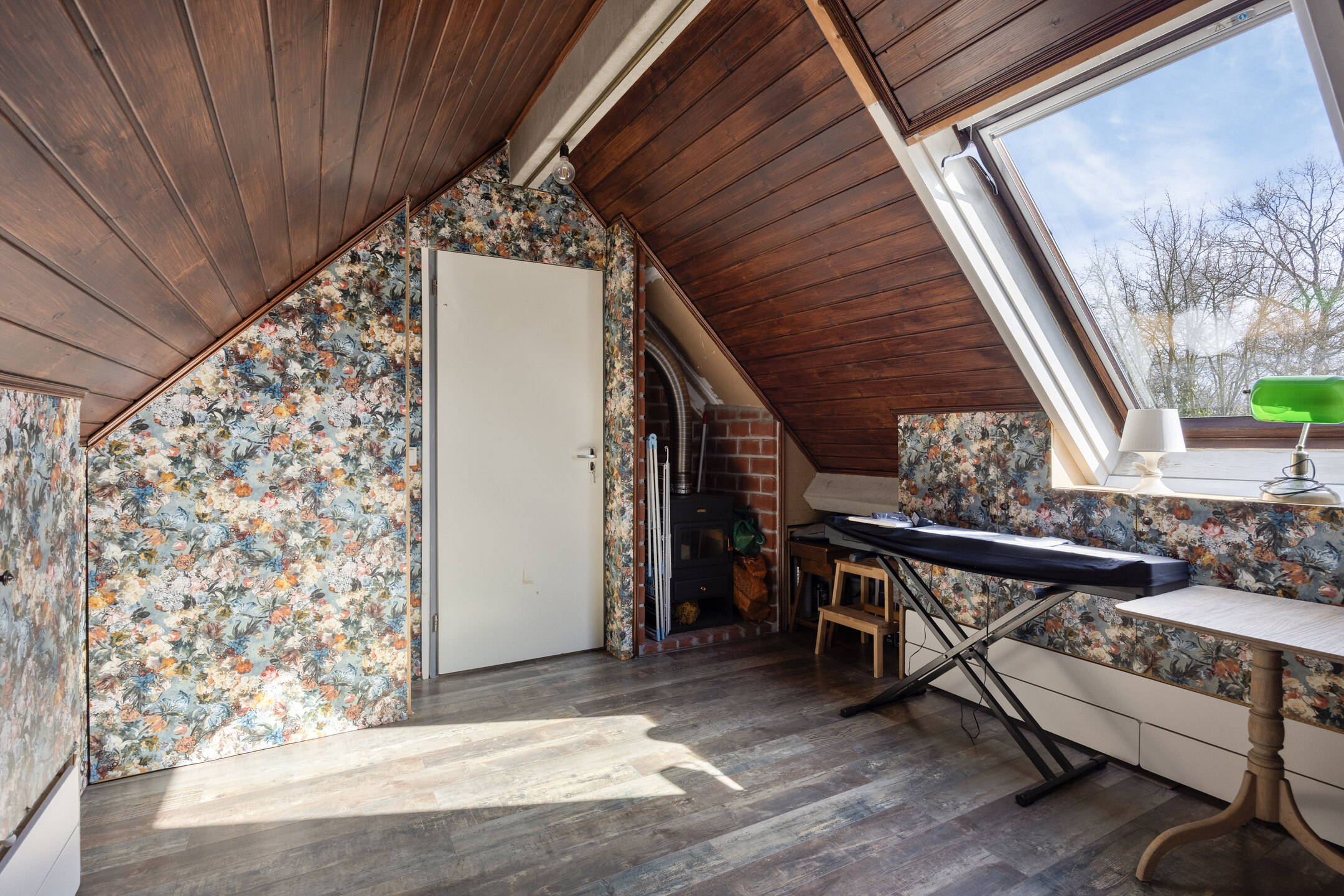 Op de tweede verdieping bevindt zich een zolderkamer met dakraam. De ruimte is geschikt als extra slaapkamer, werkplek of hobbyruimte. Achter de knieschotten is extra bergruimte aanwezig.