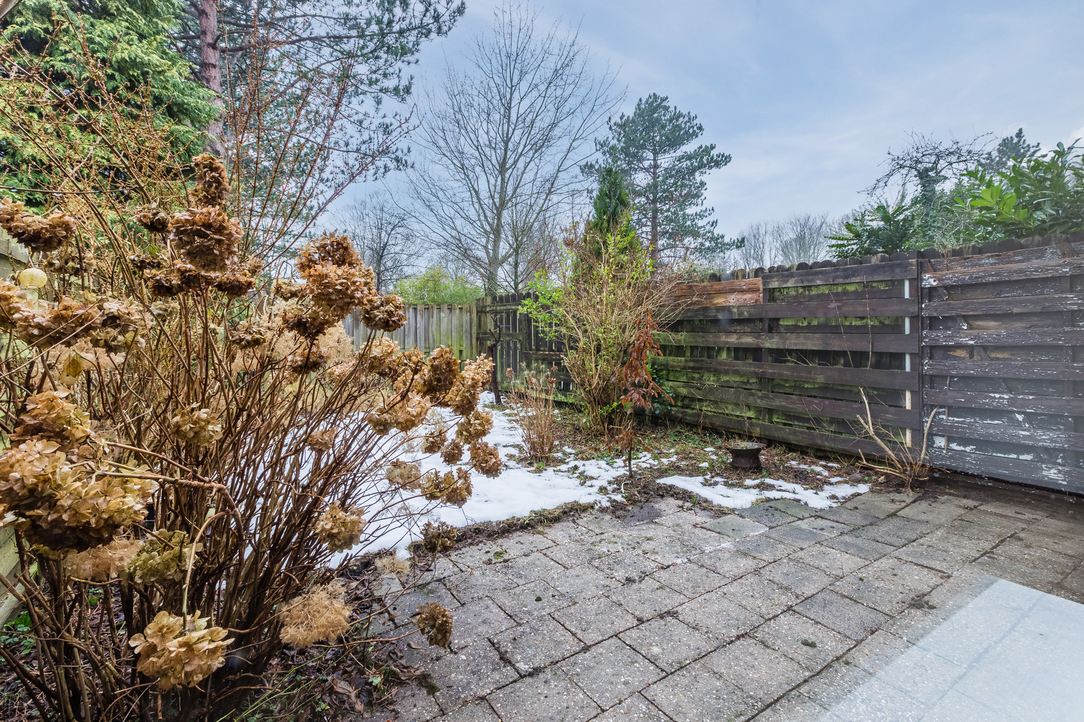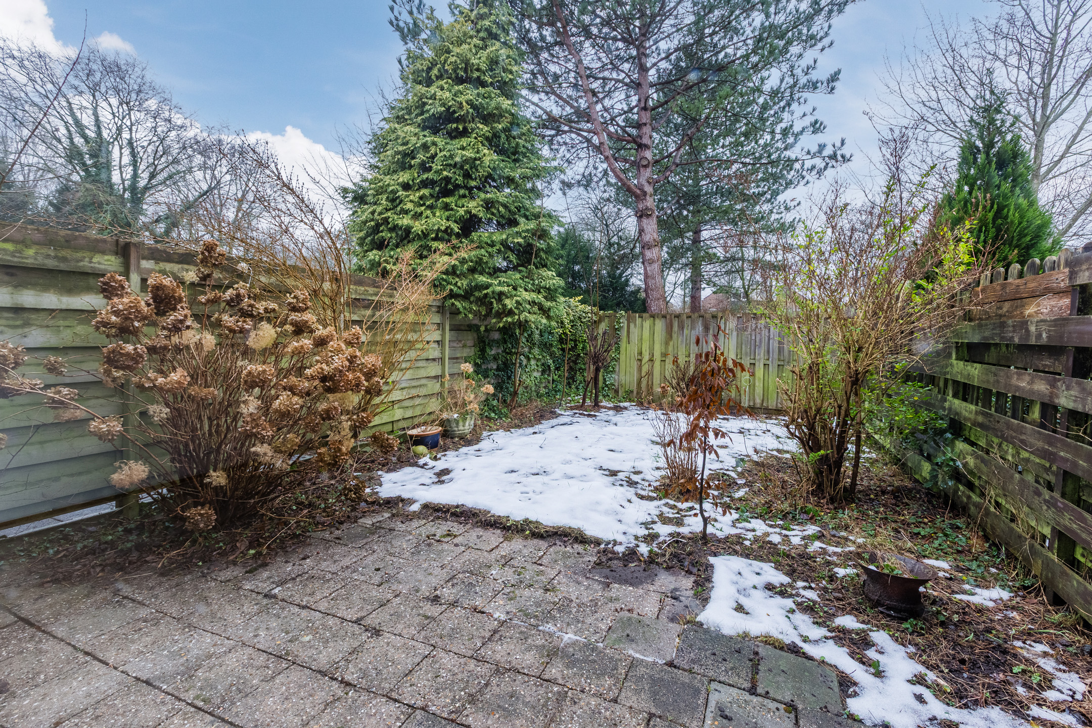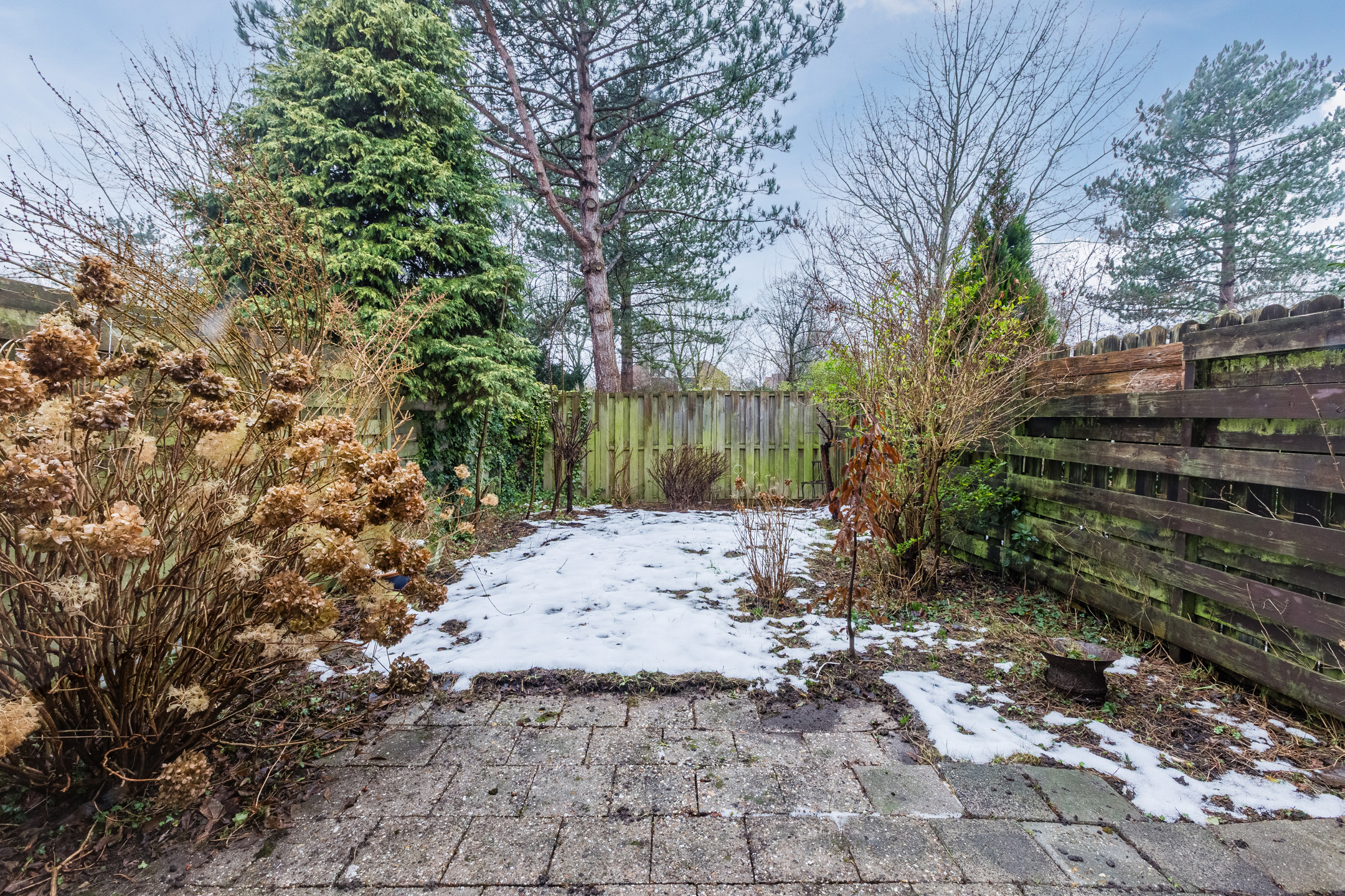 De woning beschikt over een fijne achtertuin gelegen op het westen, ideaal om in de zomer van het buitenleven te genieten. De separate berging is gelegen onder het tegenovergelegen appartementencomplex. Wel zo handig.