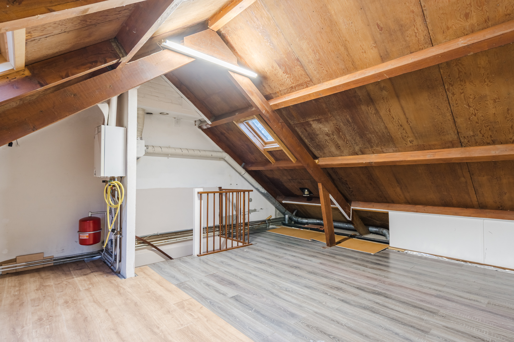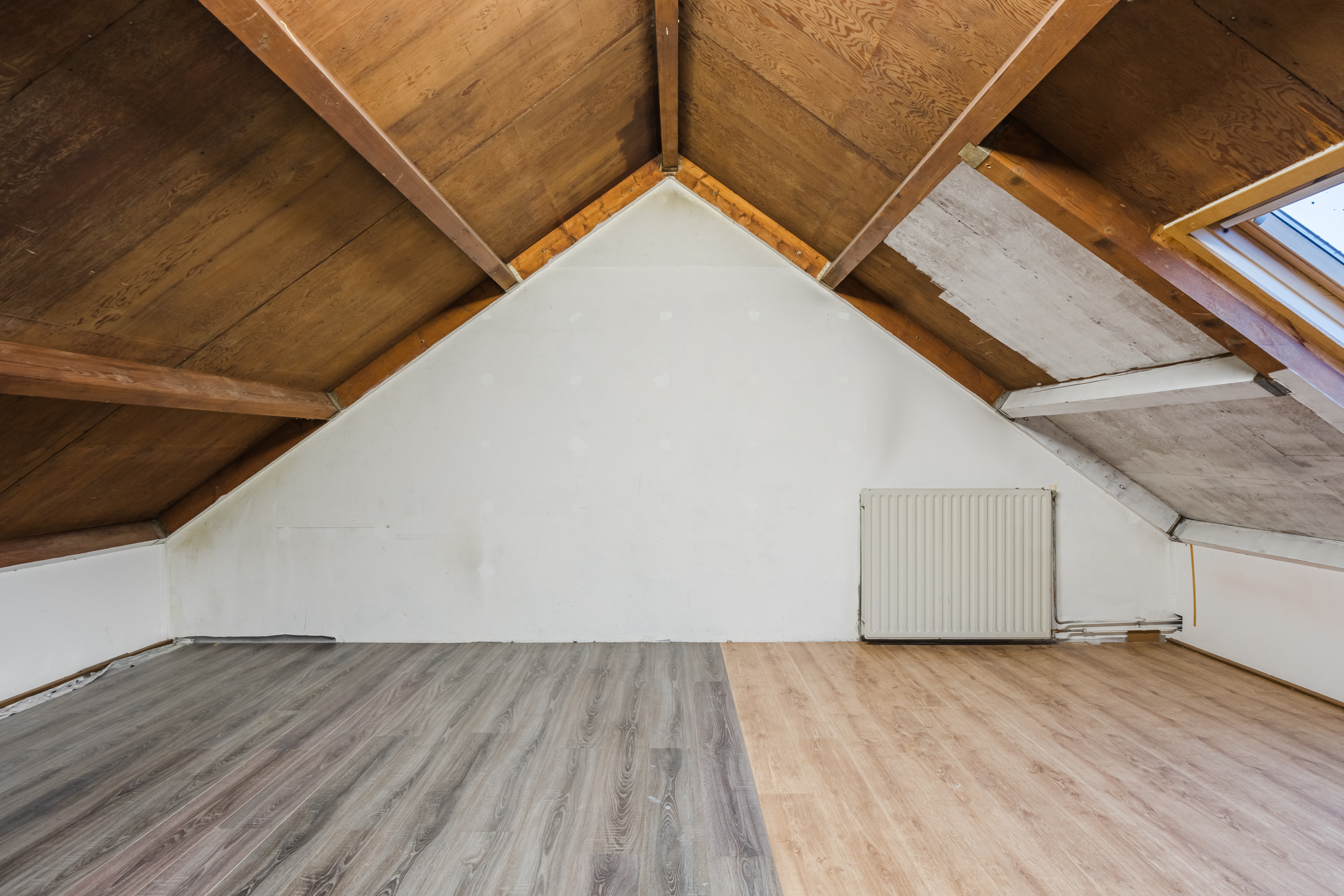 Zolder: Op de zolderverdieping bevindt zich nu een grote open ruimte die eenvoudig kan worden omgebouwd tot een vierde, grote slaapkamer met een hoog plafond en dakraam, wat een ruimtelijk gevoel geeft (of waar een ruime vliering gemaakt kan worden). Daarnaast is hier extra bergruimte waar je al je spullen kunt opbergen.