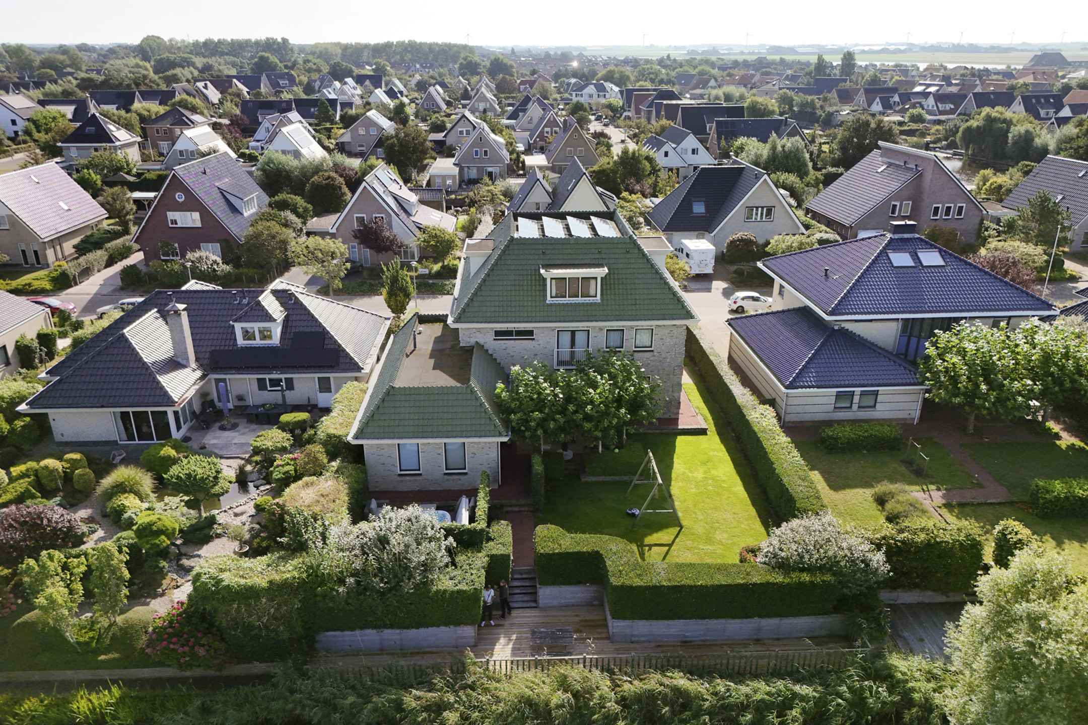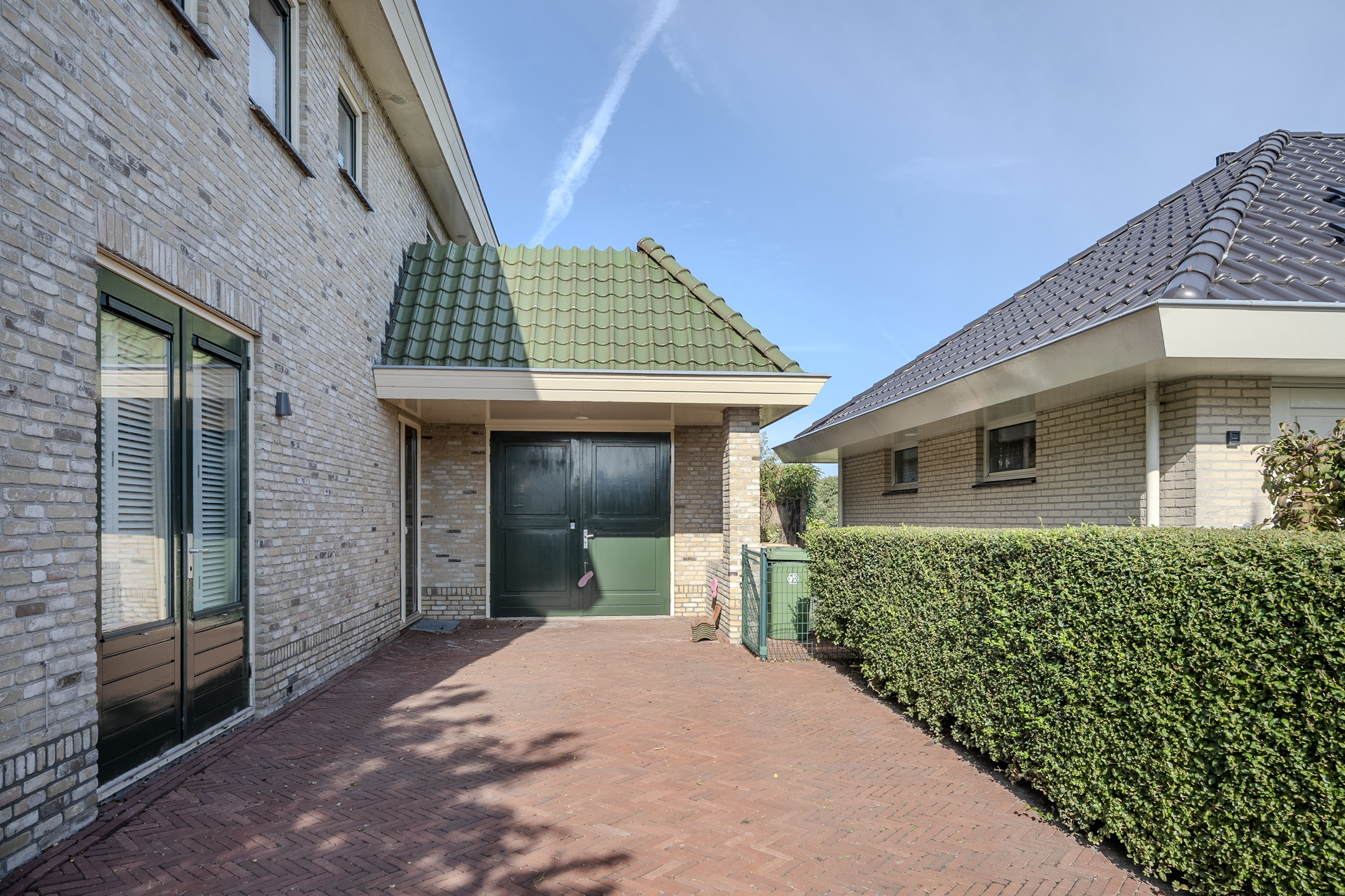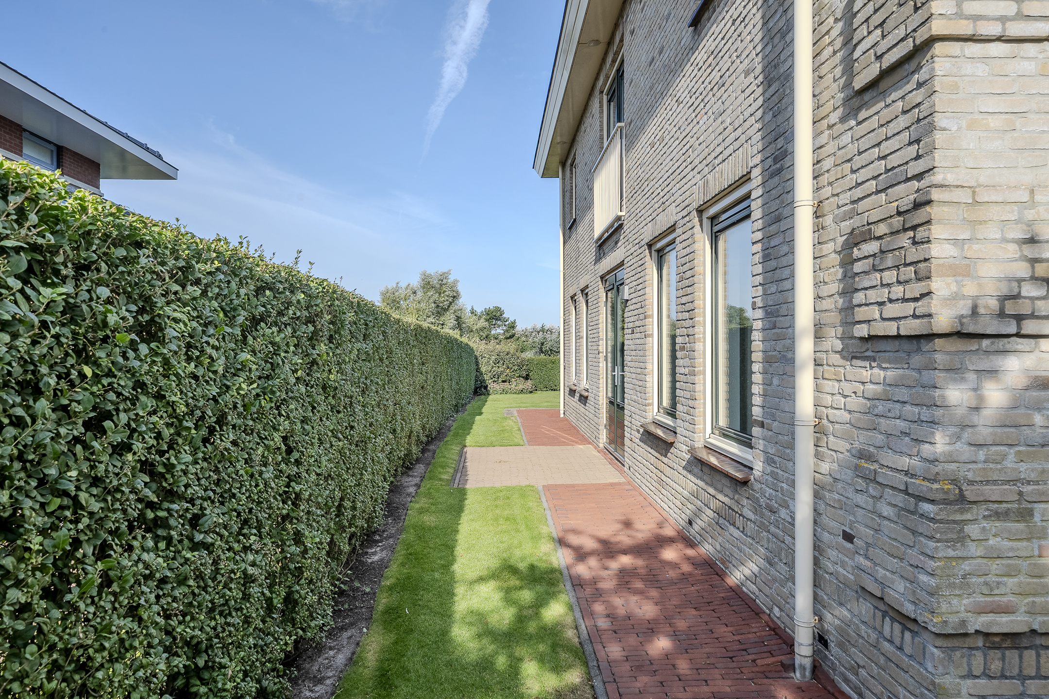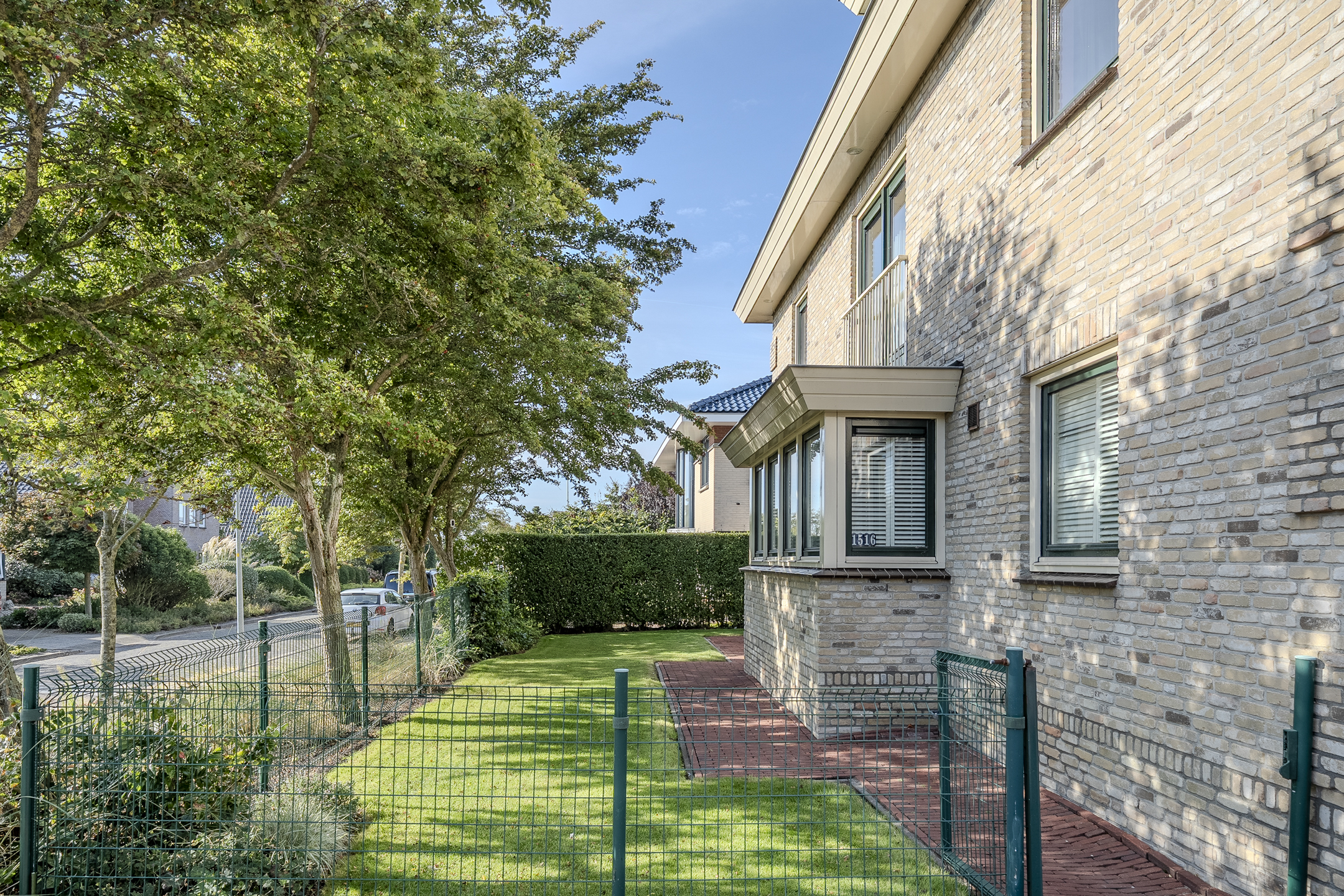 This house has a beautiful garden that runs almost completely around the house. The backyard faces west and borders a ditch with the golf course behind it. Furthermore, this is a remarkably sheltered garden, where you can enjoy plenty of privacy. In the front yard, you can easily park your car on your own driveway.