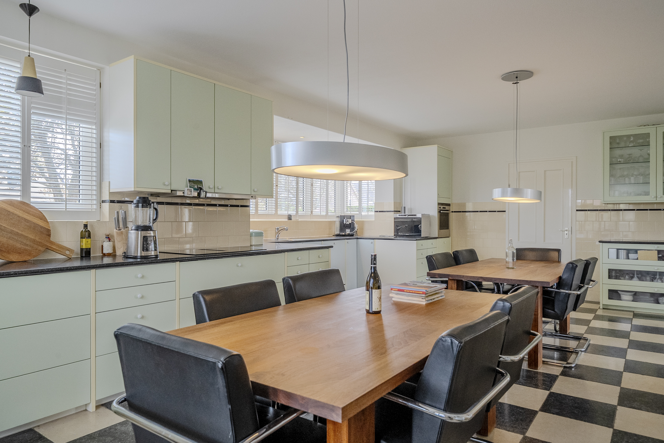 De keukenruimte is eveneens zeer ruim, groot genoeg om een grote eettafel centraal in de ruimte te zetten. Je kunt dit ook gerust het hart van het huis noemen en is bij uitstek geschikt om heerlijk te tafelen of voor gezellige borrelmomenten.