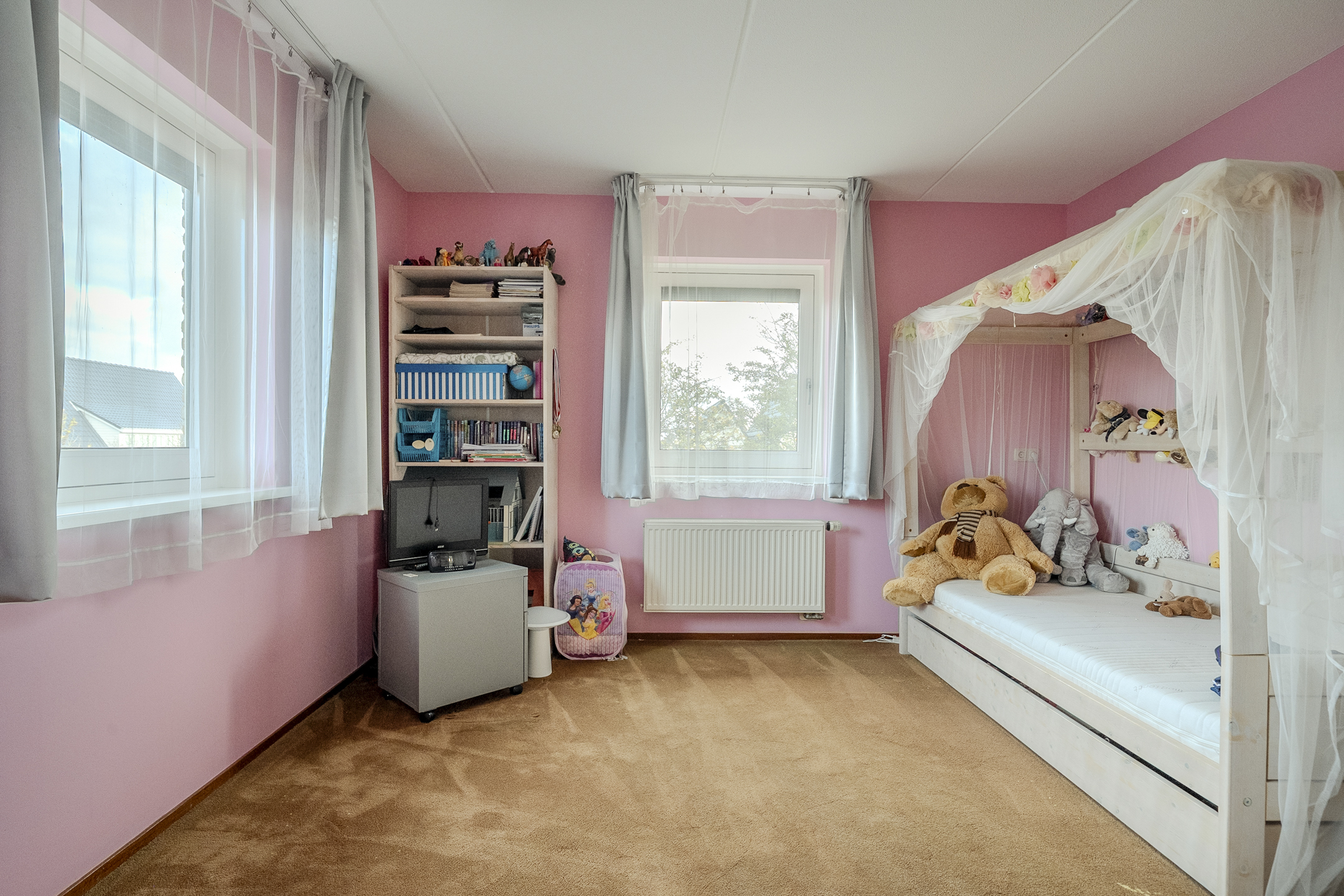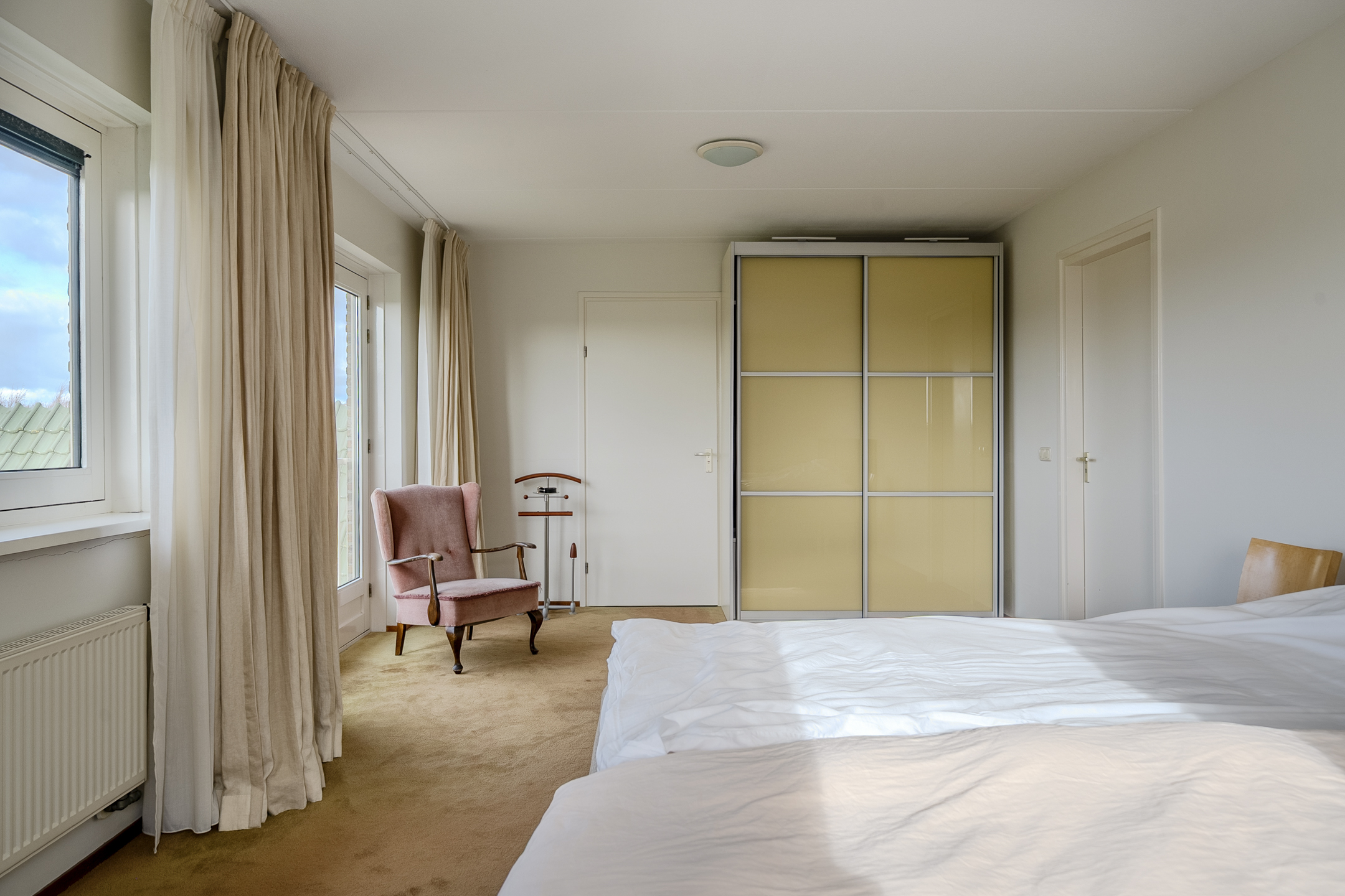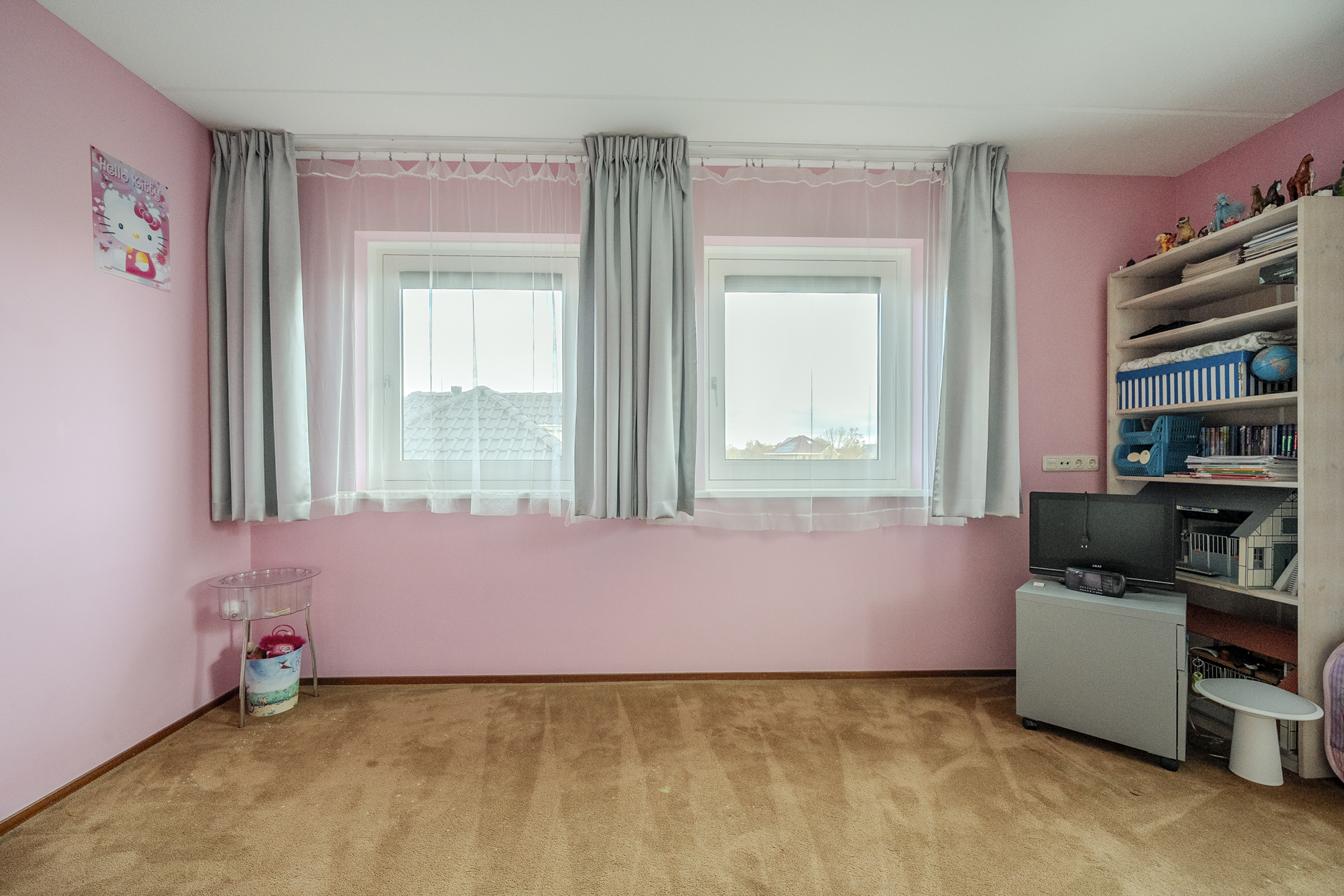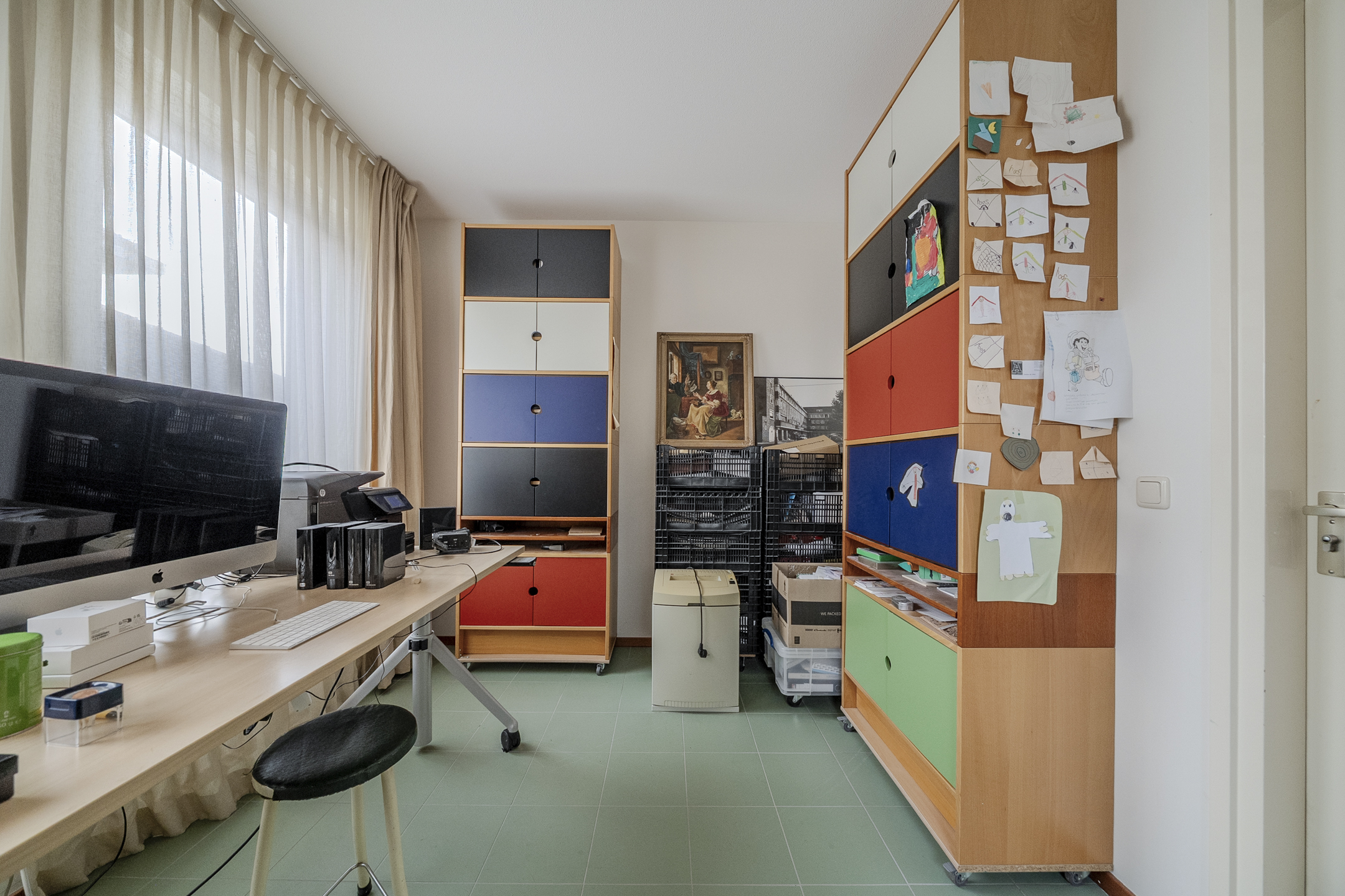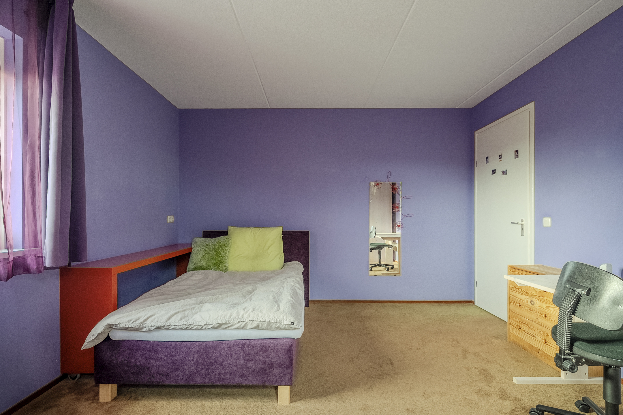 The ground floor is completed by a separate room, accessible from the kitchen. This room is currently used as a home office, but you could also create an play- or extra bedroom here, for example.