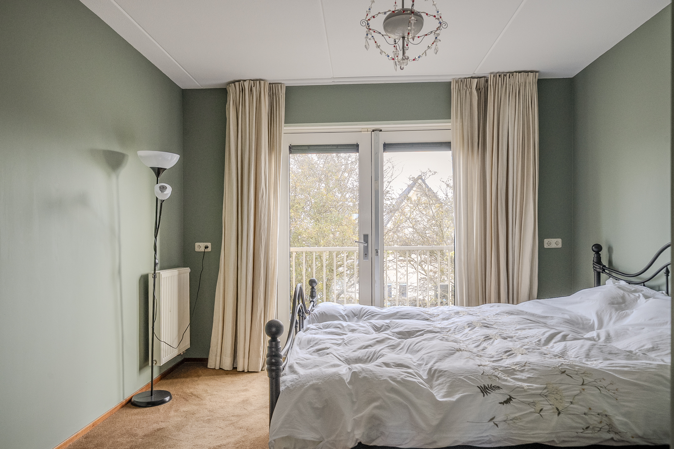 On the first floor, there is a spacious landing. From here, no fewer than five full bedrooms are accessible, all of which are of a generous size. In addition, three of the rooms have a French balcony. This floor also houses the second bathroom of the house. This is a fully equipped bathroom with underfloor heating, a large bathtub, a comfortable walk-in shower, a washbasin, and a free-hanging toilet.
