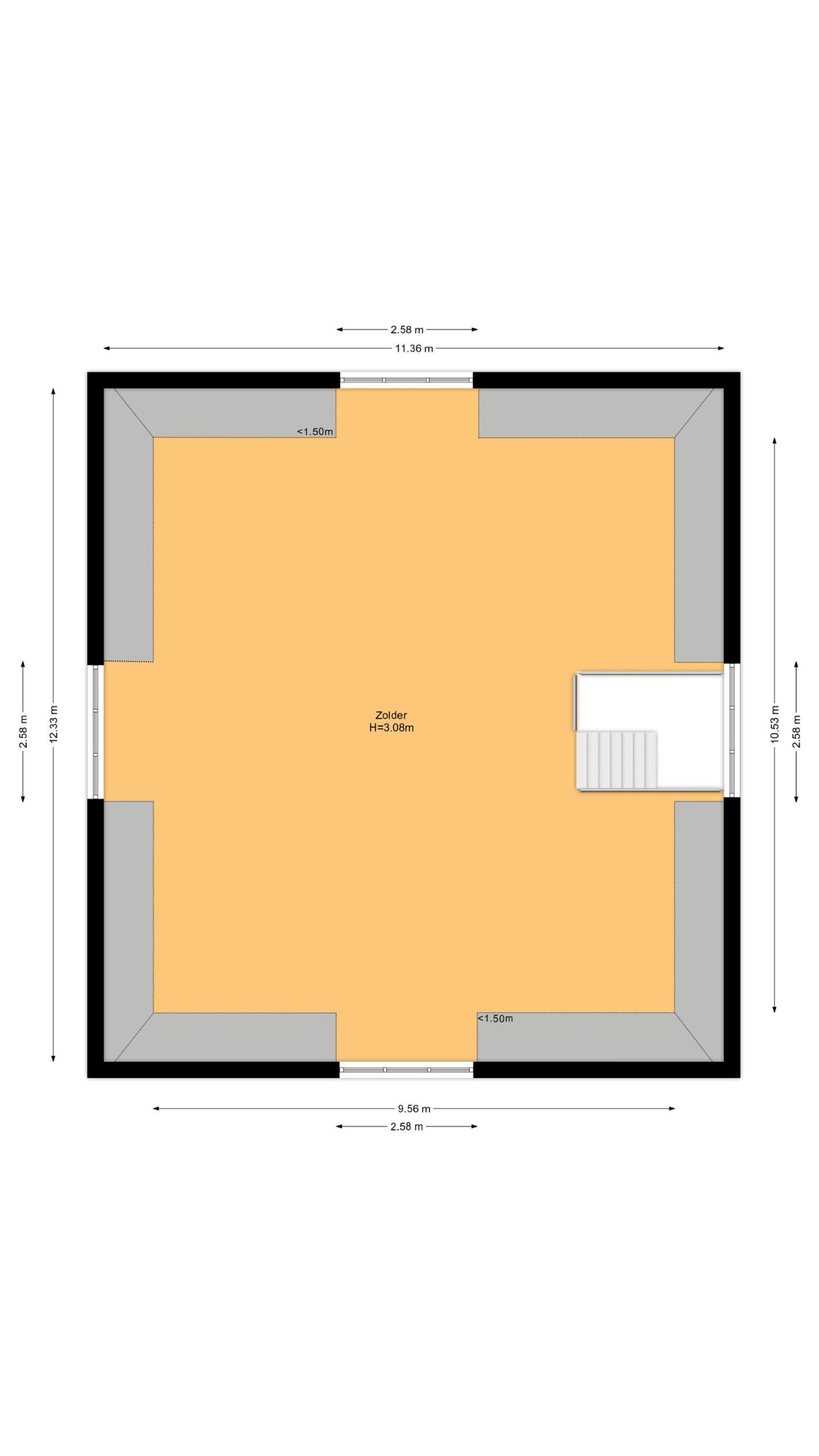 ⢠Zeer grote zolderruimte over hele oppervlakte van de woning.
