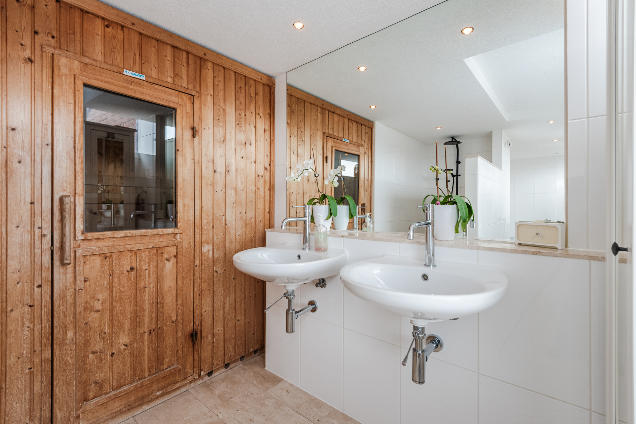 • Luxe badkamer met ligbad, inloopregendouche en sauna