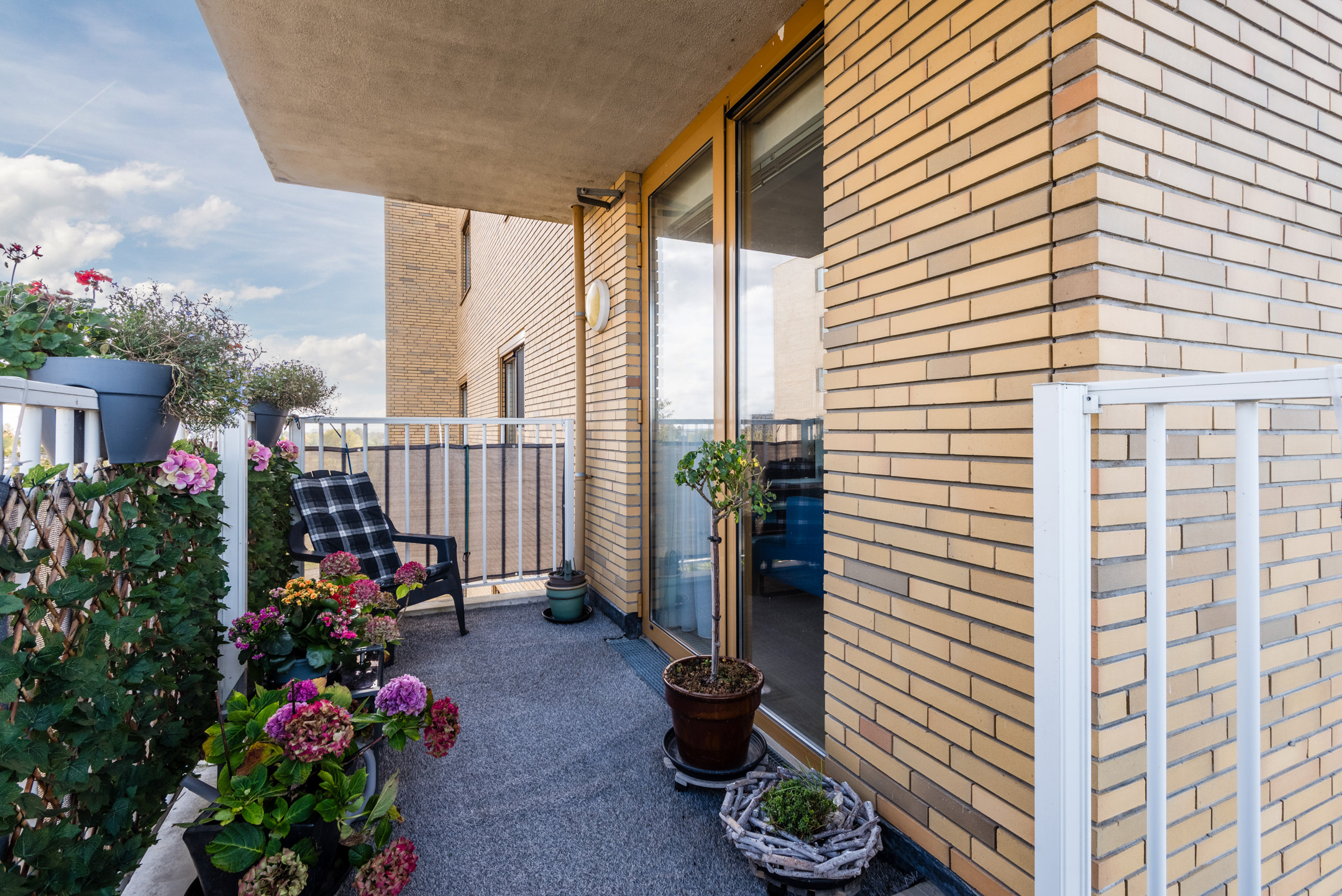 De lichte woonkamer met open keuken geniet door de aanwezigheid van veel raampartijen van een heerlijke lichtinval. Vanuit de woonkamer is er toegang tot het ruime balkon waar je optimaal van de zon kunt genieten.