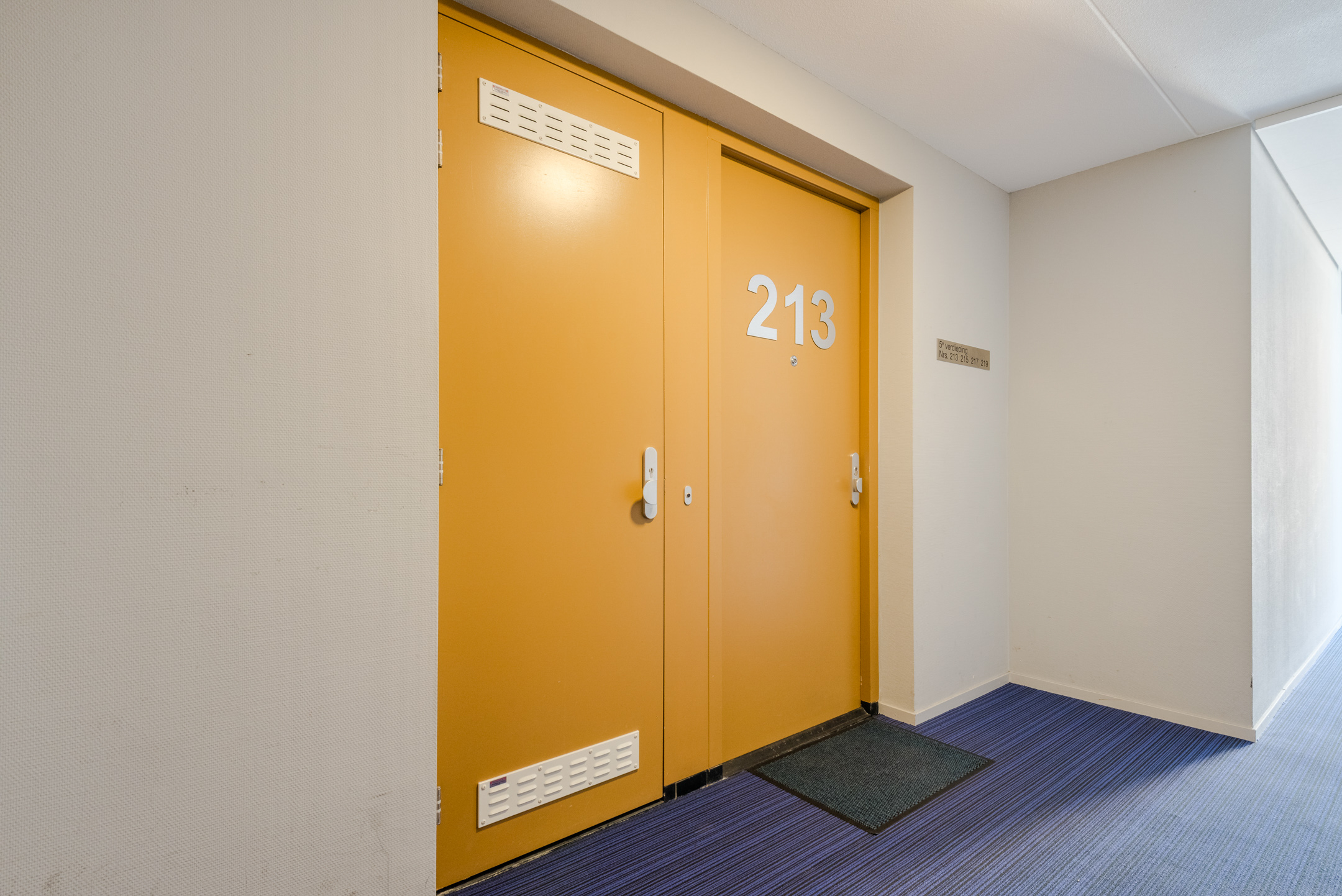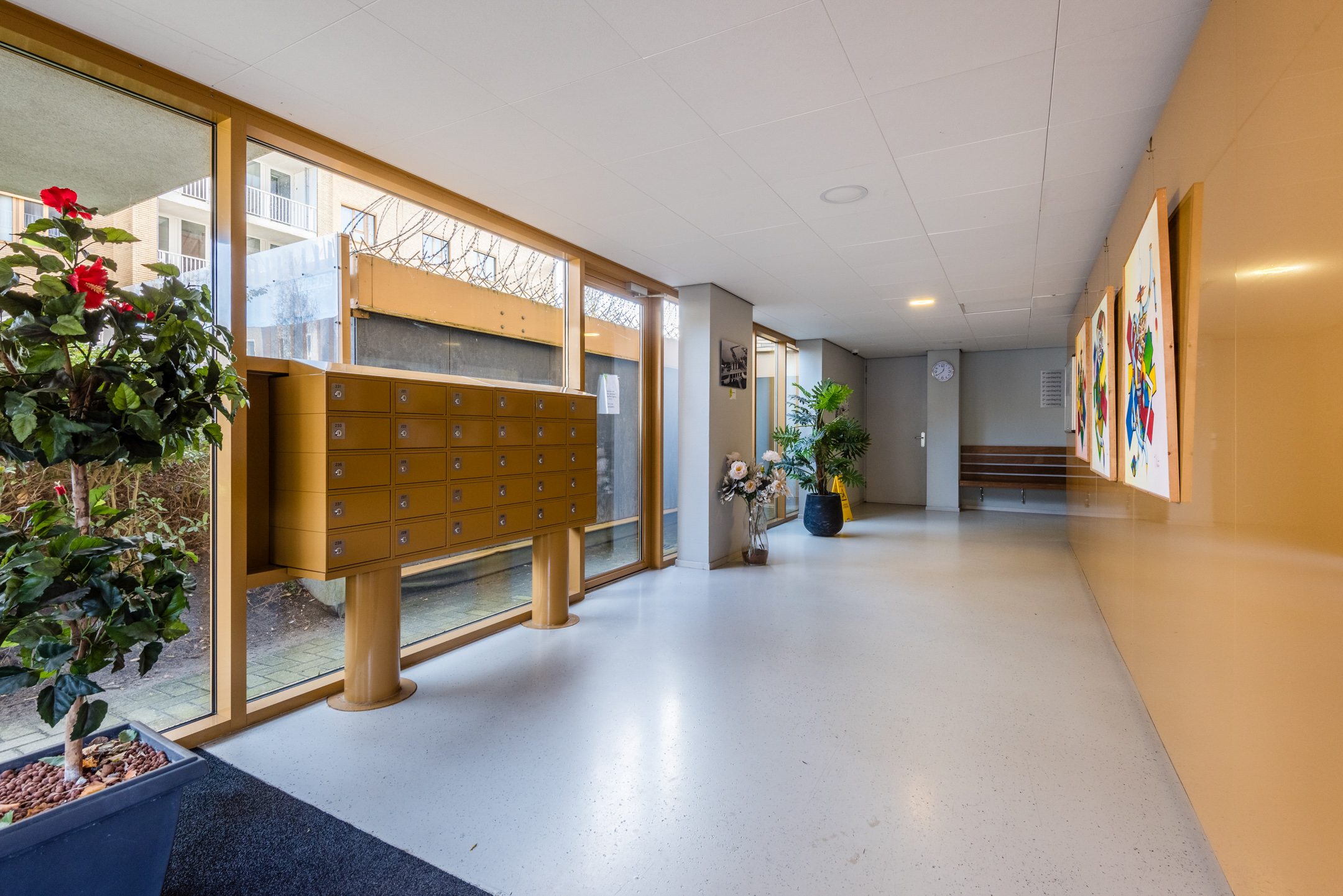 Via het gezamenlijke trappenhuis of de lift, bereiken we het appartement op de vijfde etage.