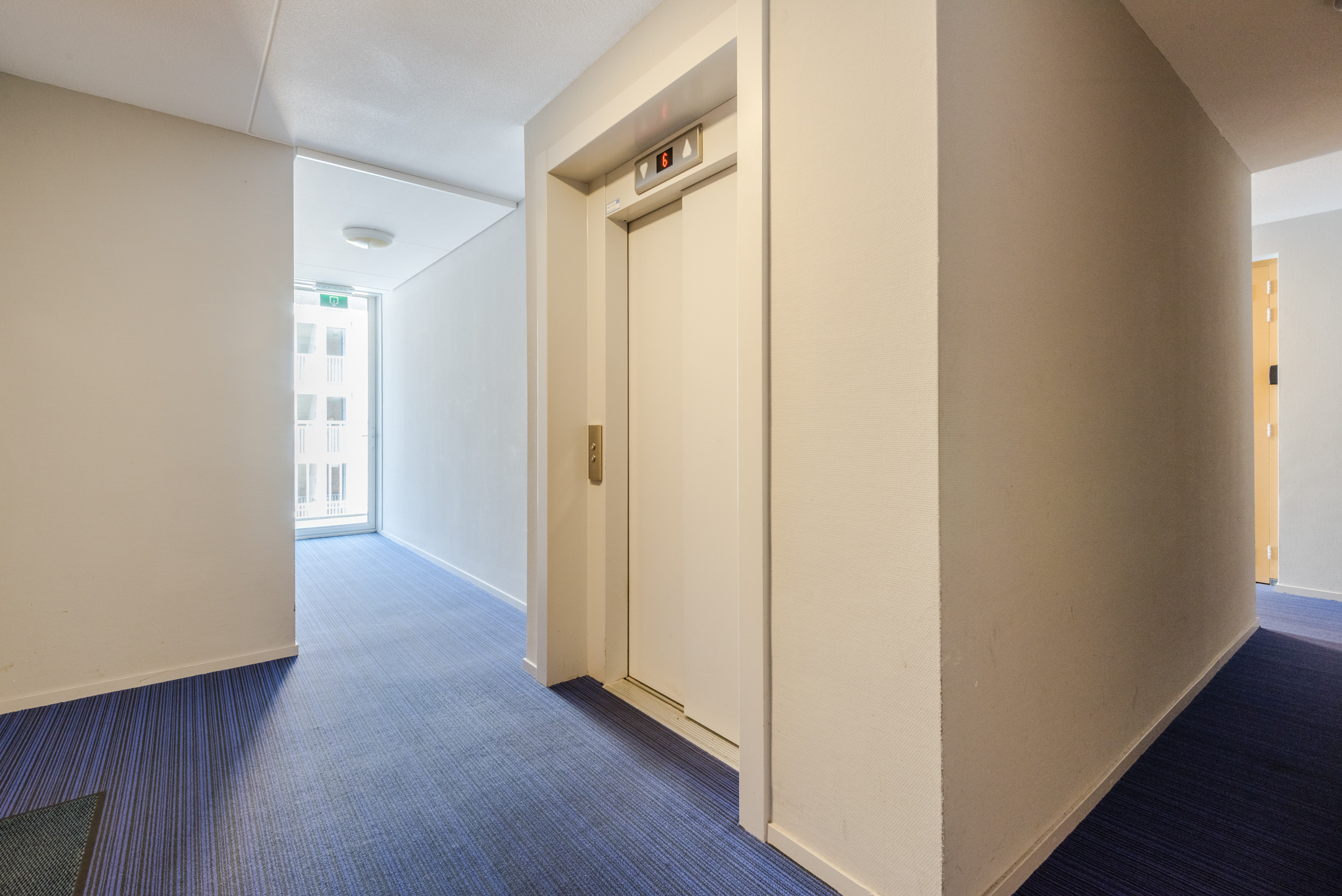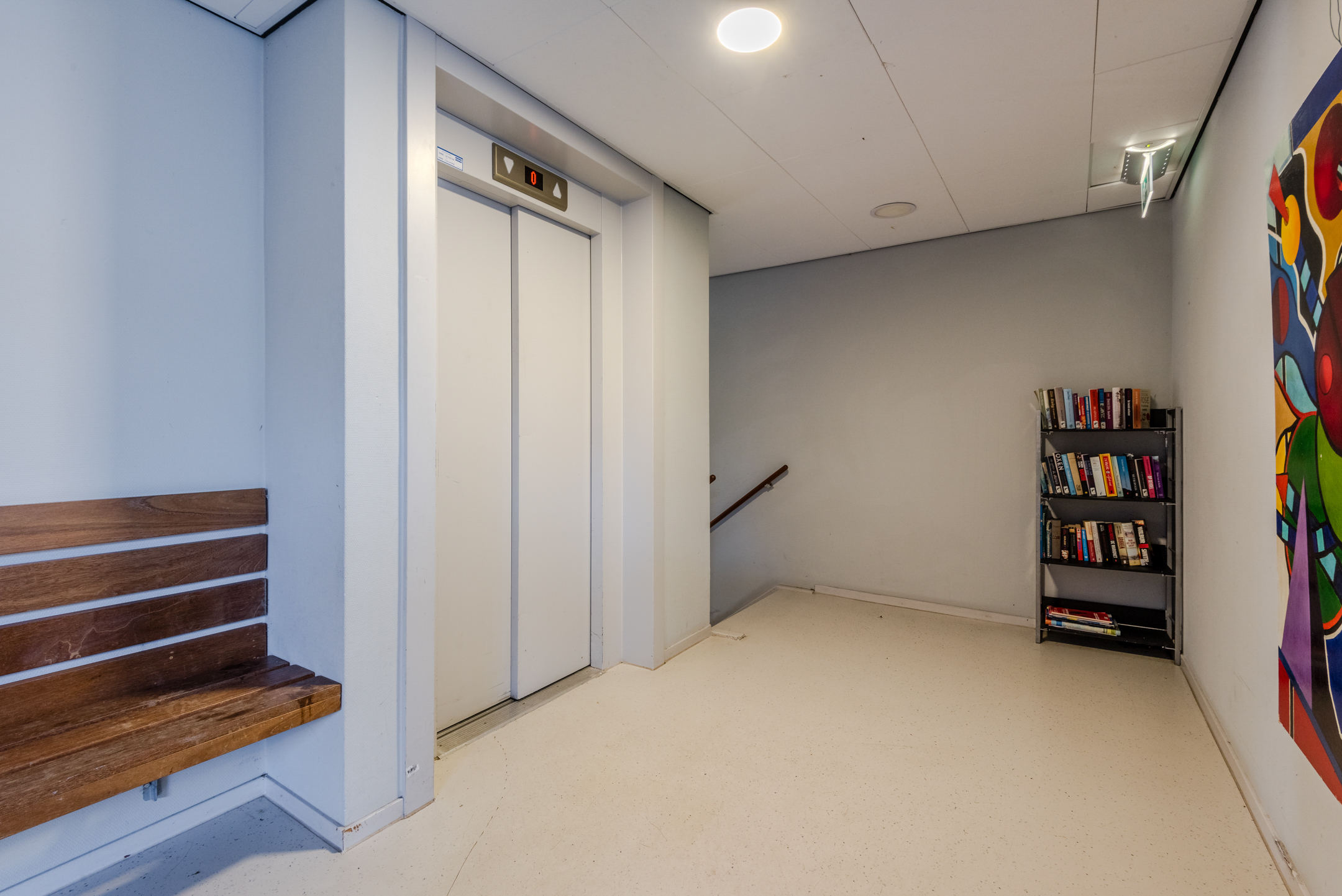 Centraal trappenhuis en lift naar alle etages inclusief de parkeergarage.