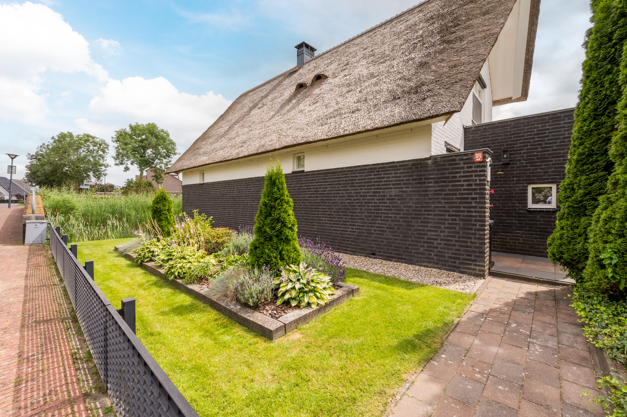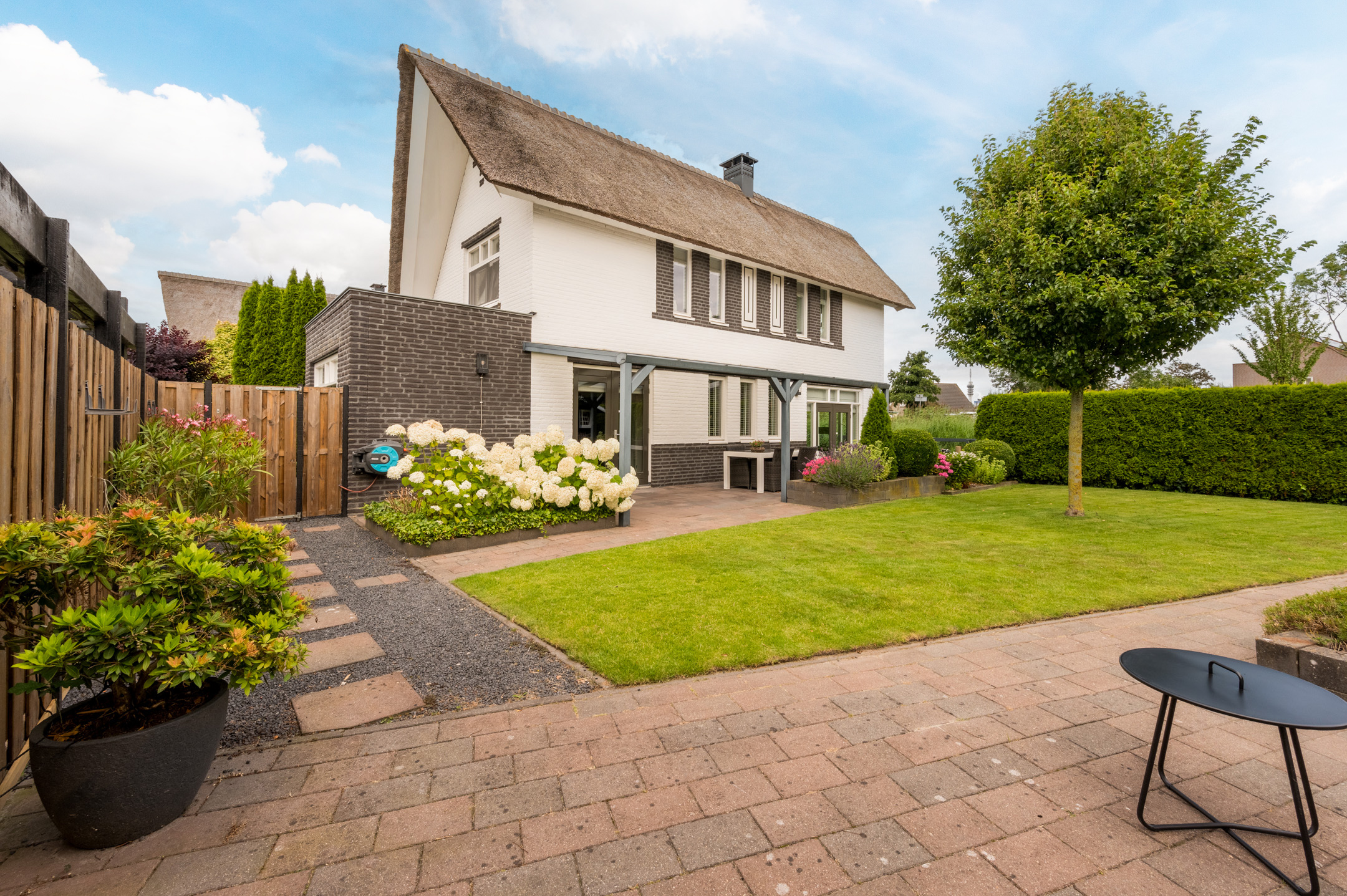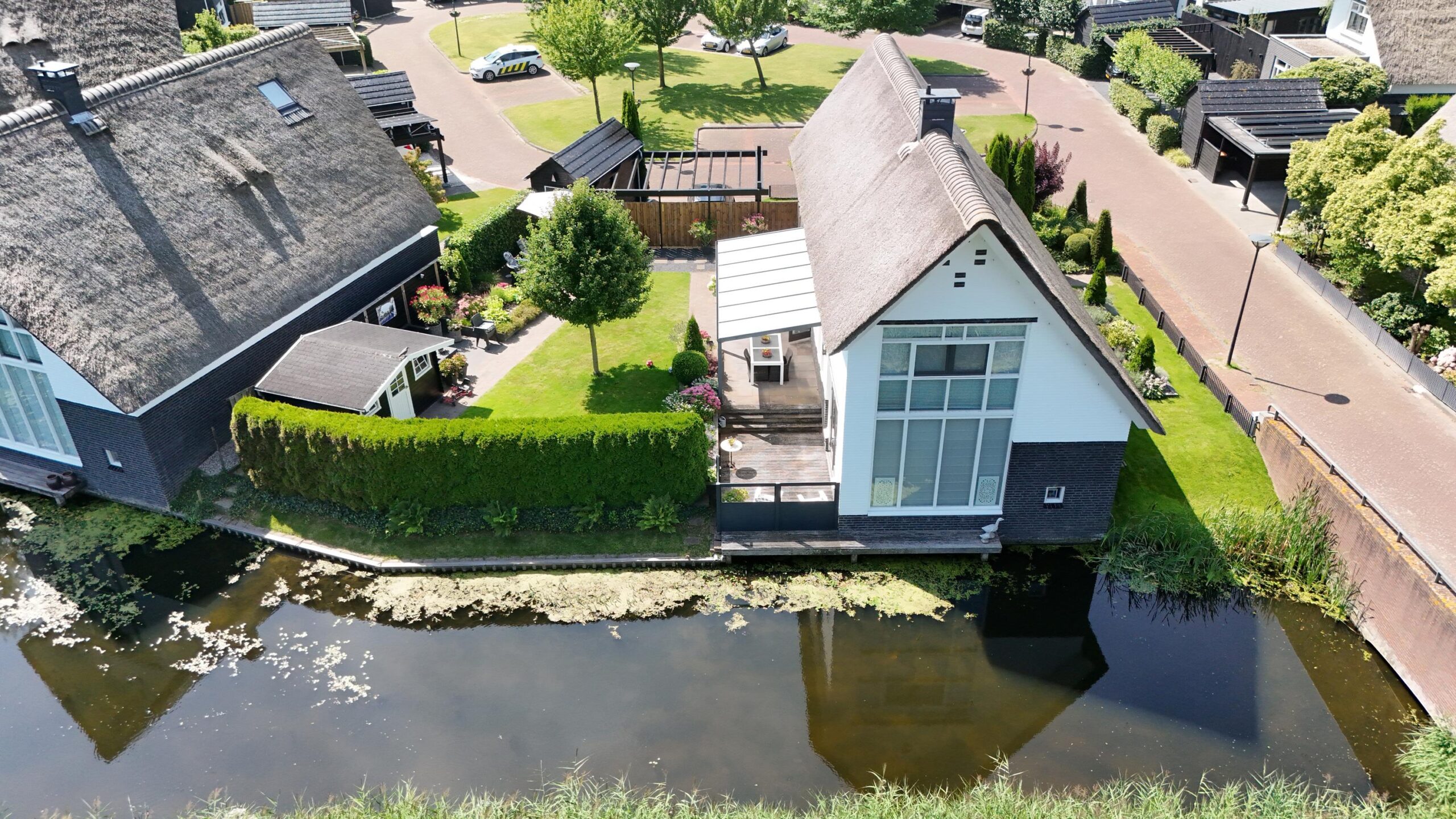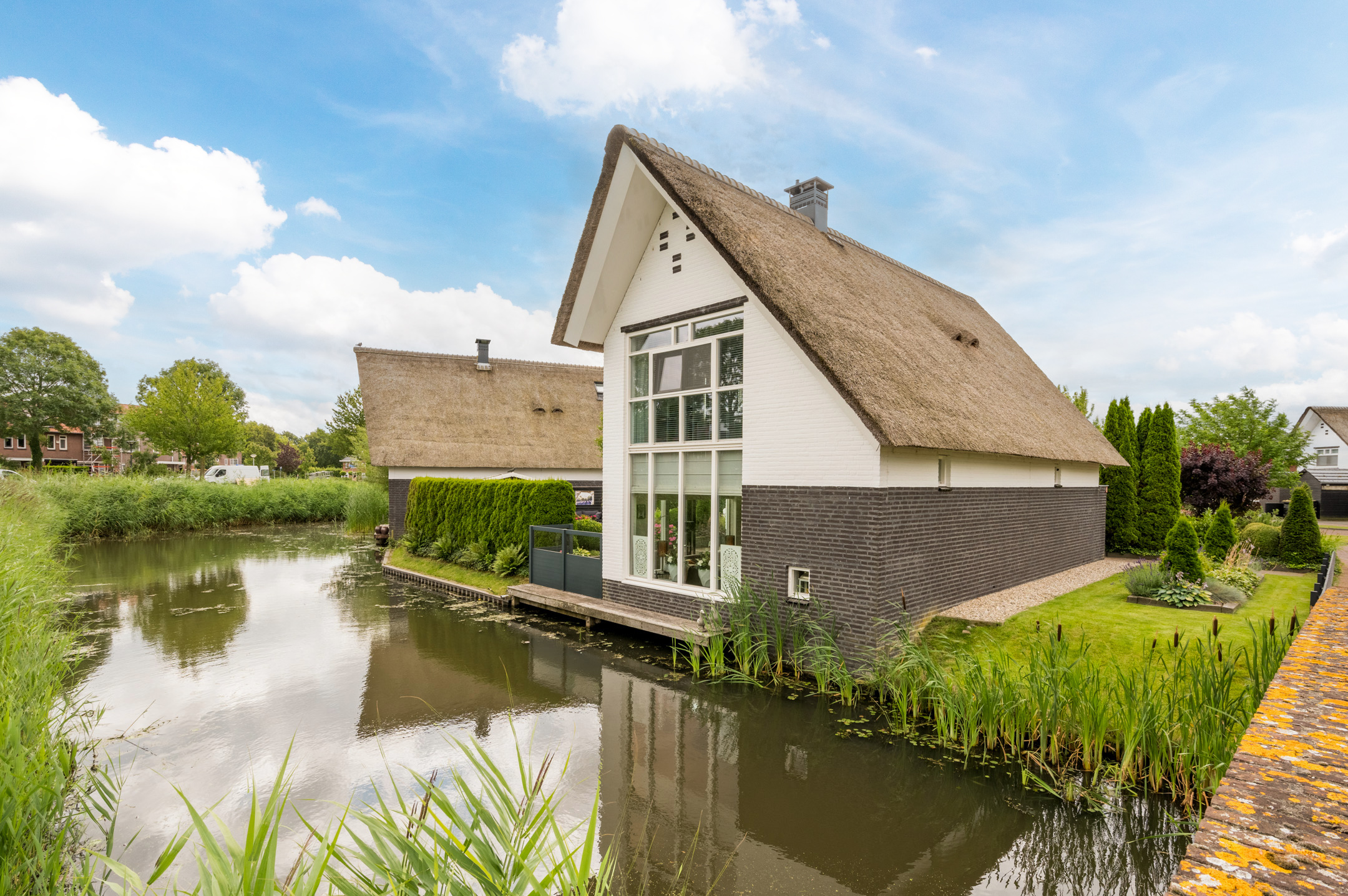 De woning is keurig onderhouden en voorzien van horren in beide tuindeuren en openslaande ramen op de eerste etage, nieuw schilderwerk en recent onderhoud aan het rieten dak (2021) en een nieuwe cv-ketel die voorbereid is op een warmtepomp (2023).