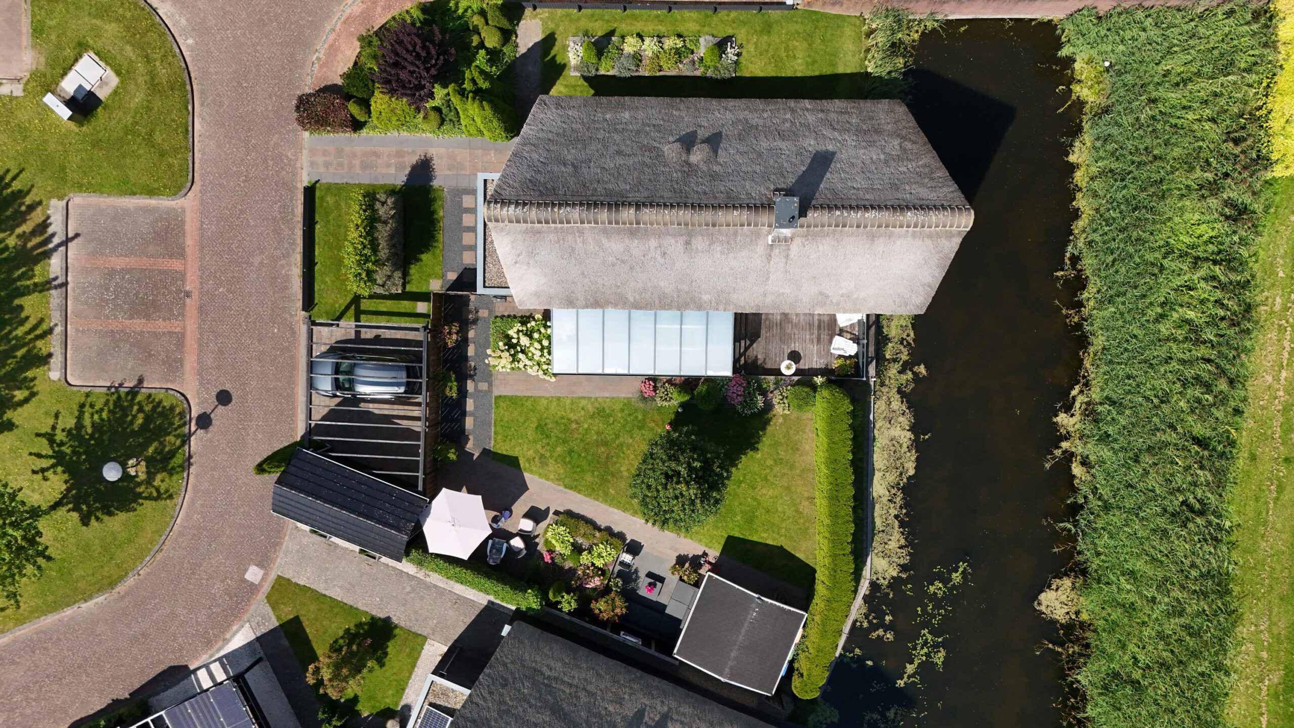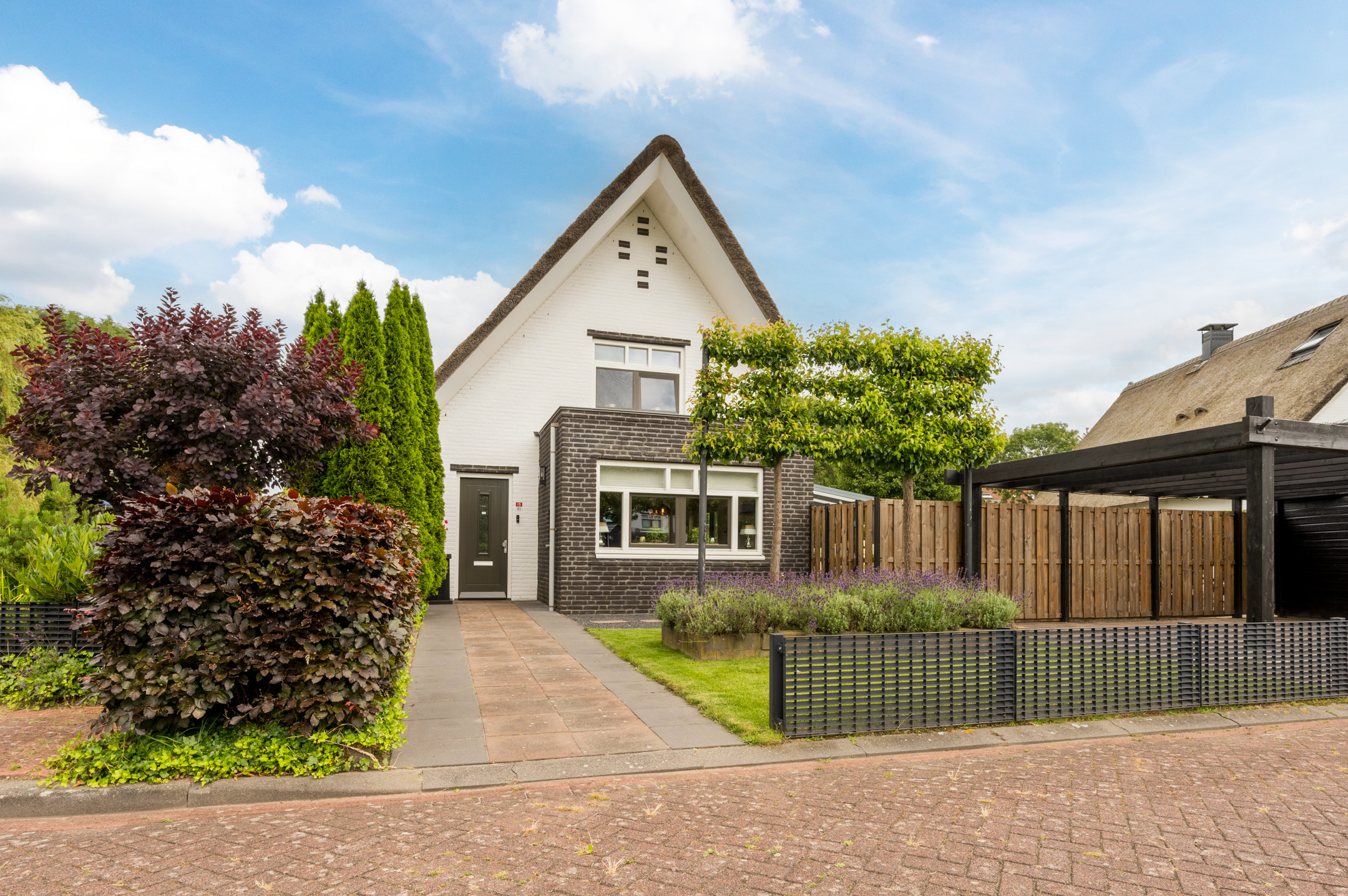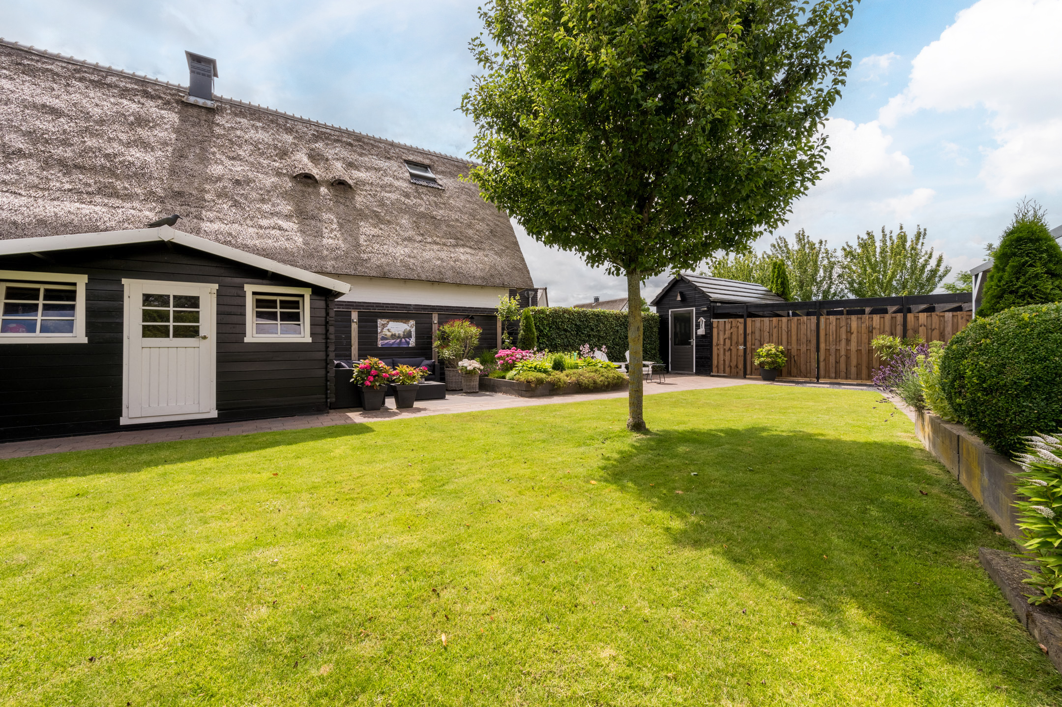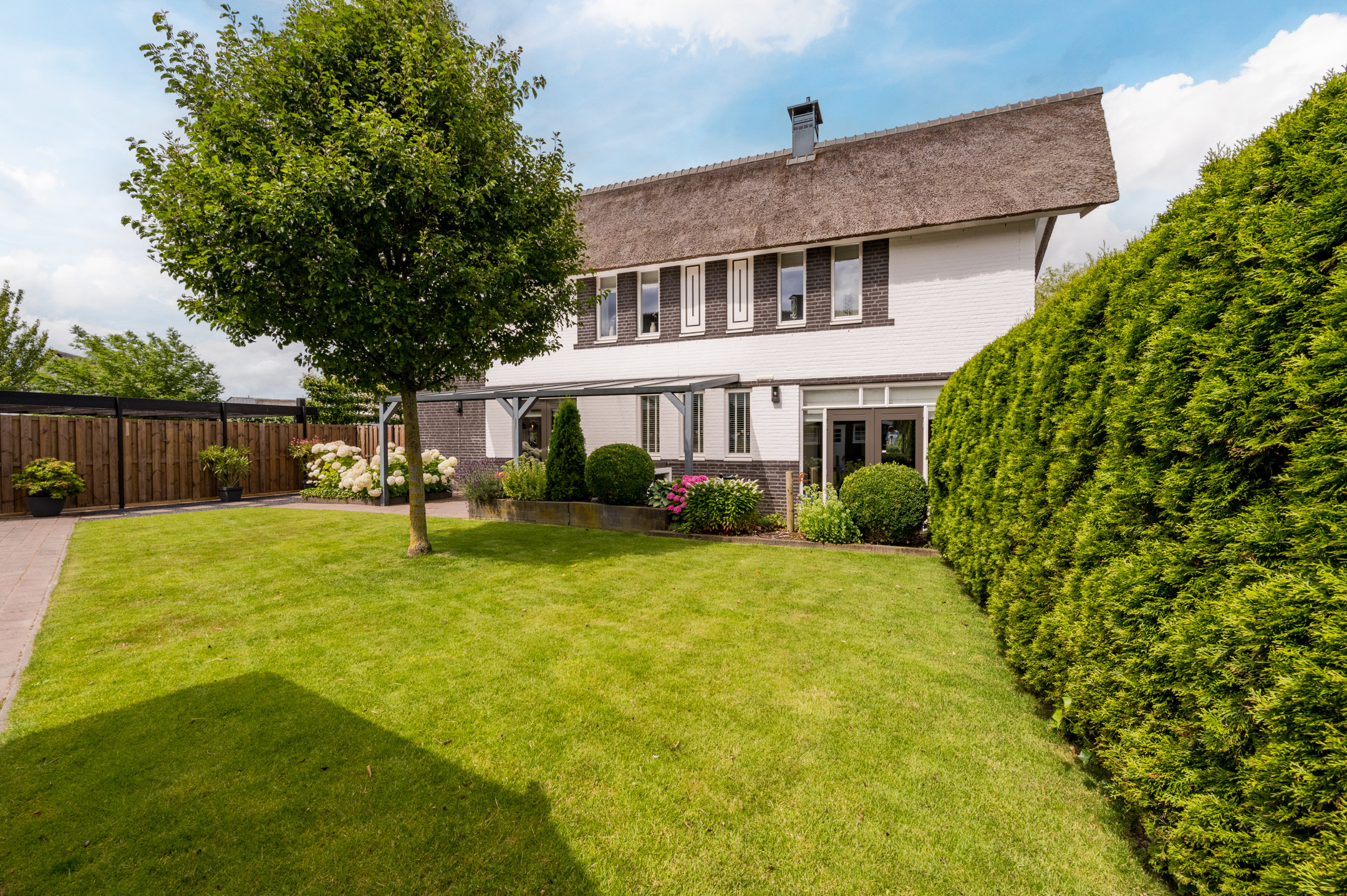 De woning is keurig onderhouden en voorzien van horren in beide tuindeuren en openslaande ramen op de eerste etage, nieuw schilderwerk en recent onderhoud aan het rieten dak (2021) en een nieuwe cv-ketel die voorbereid is op een warmtepomp (2023).