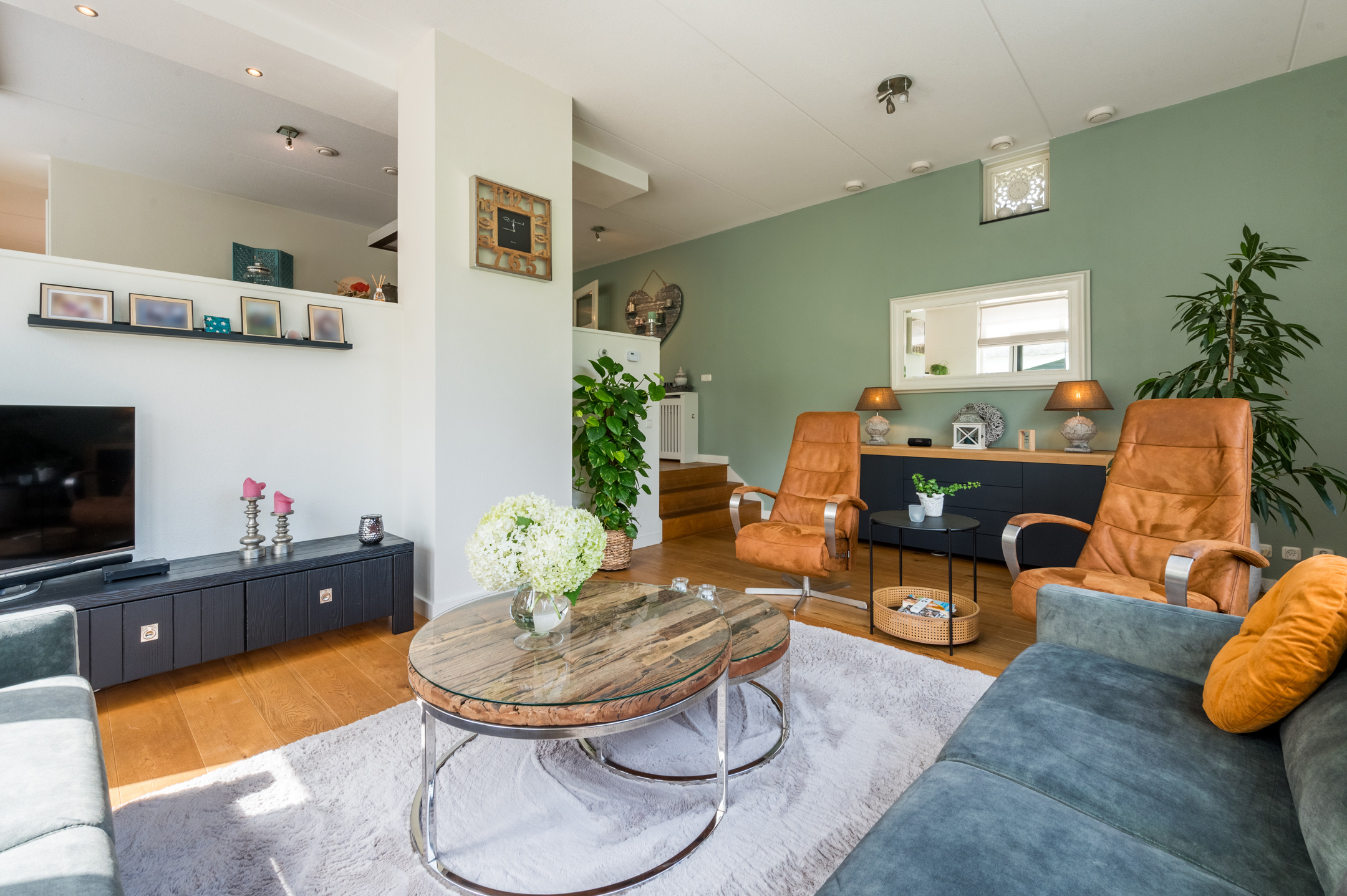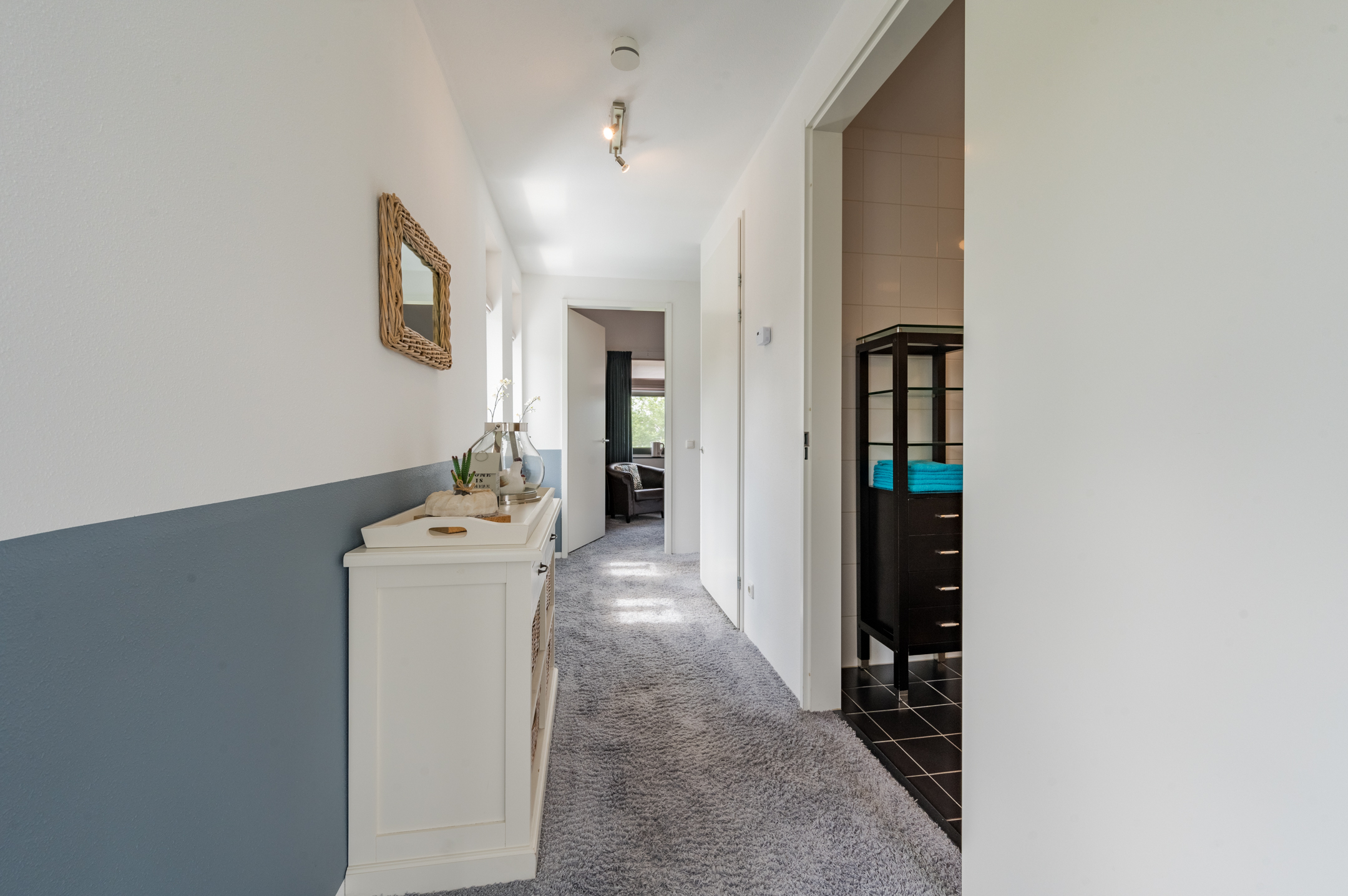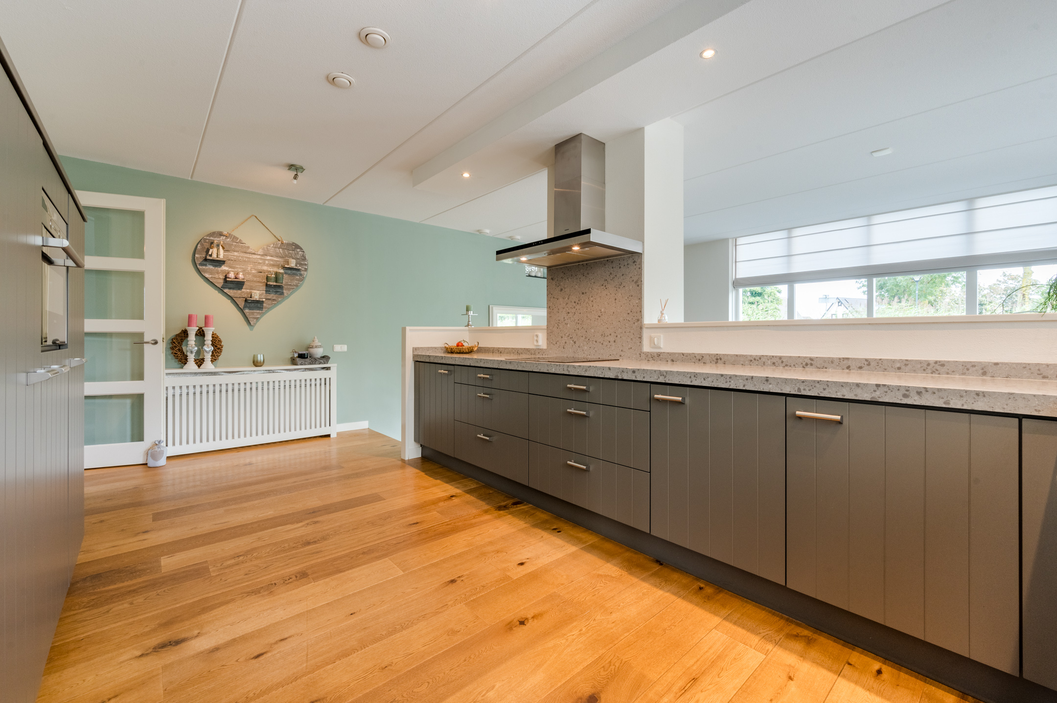De volledige benedenverdieping is keurig afgewerkt en voorzien van een houten vloer.