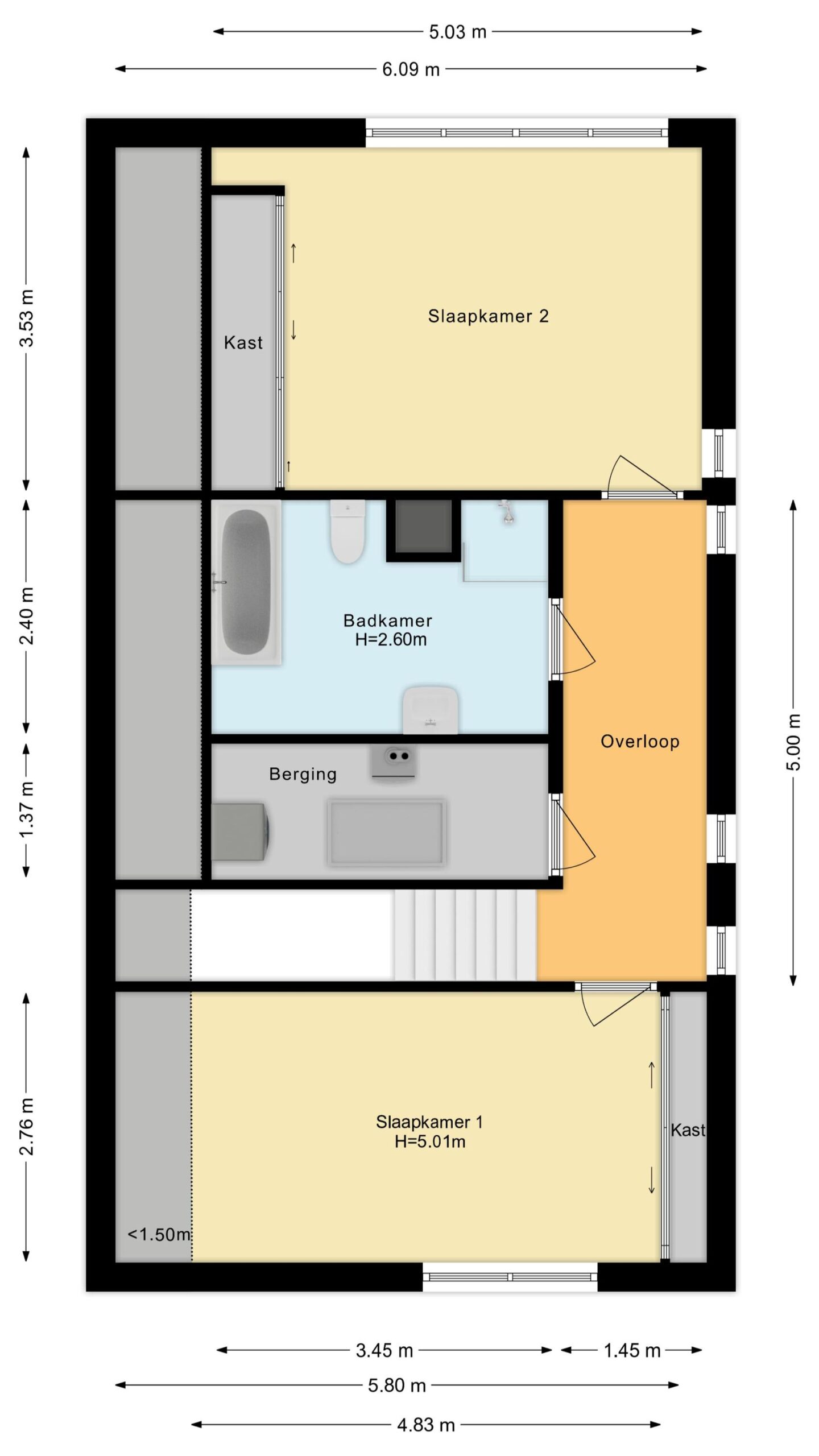 • 2 slaapkamers + de mogelijkheid om een slaap- en badkamer te realiseren op de begane grond