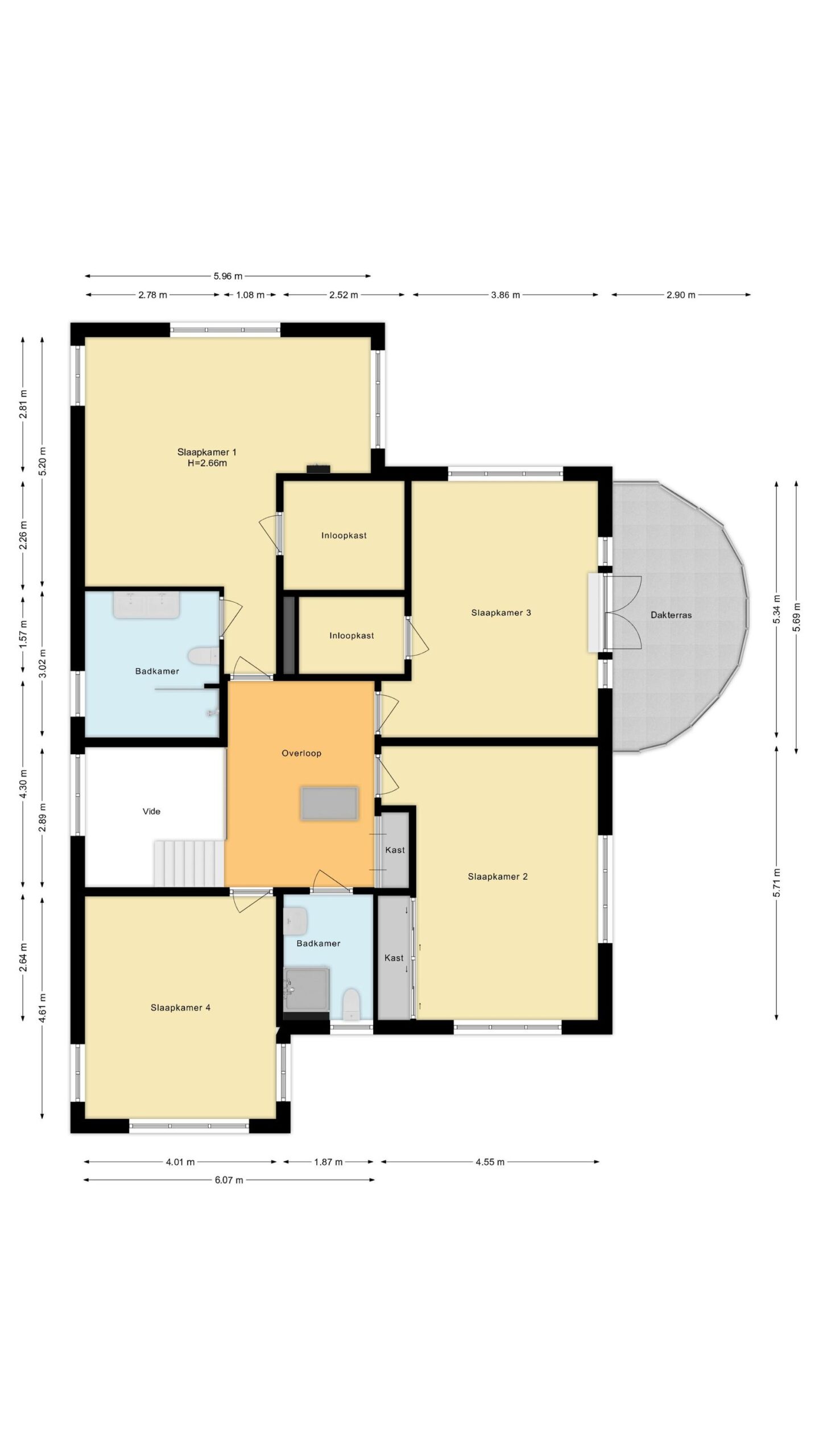 Op deze verdieping vinden we 4 ruime slaapkamers en 2 badkamers.