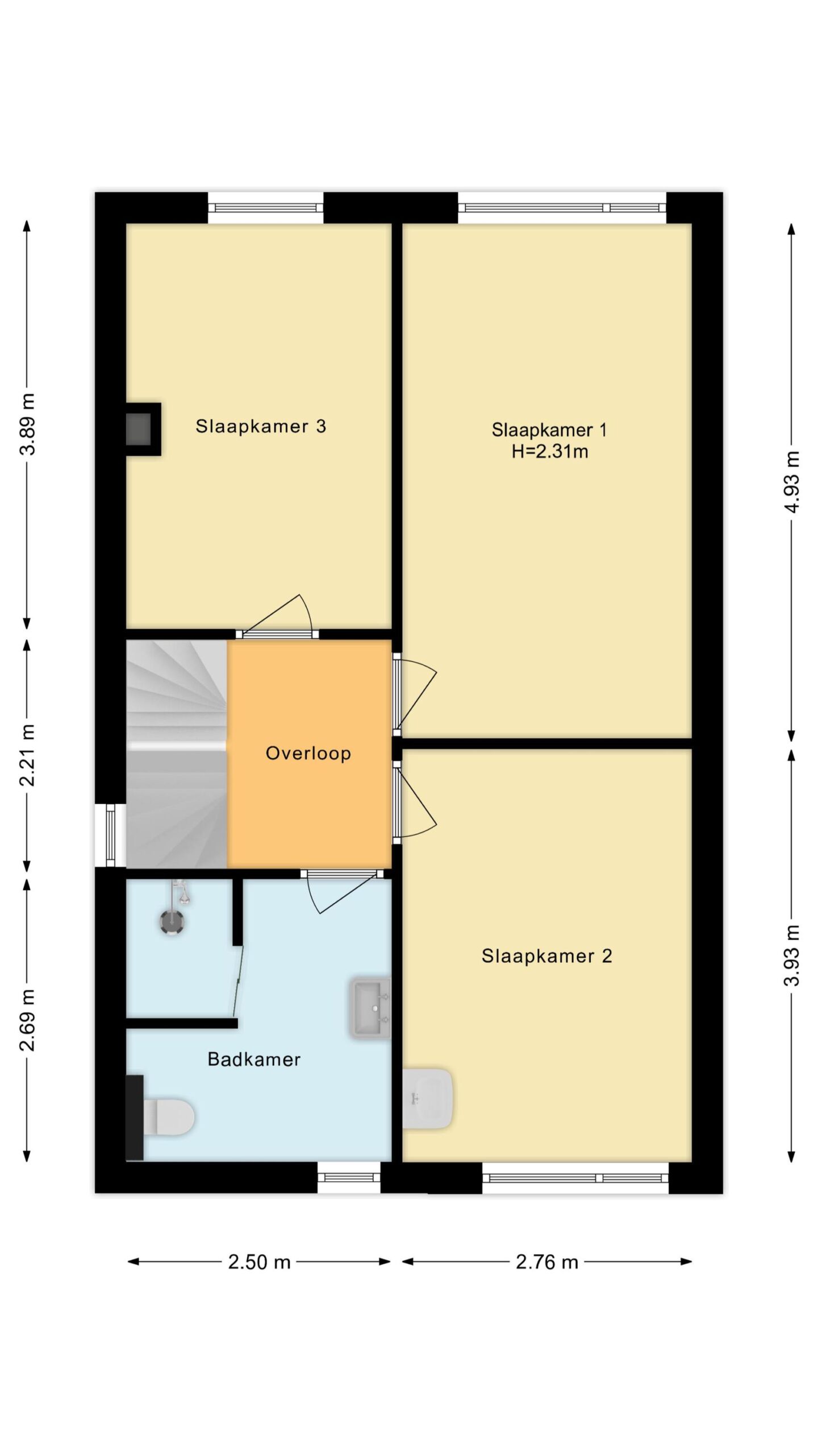 Op deze verdieping vinden we 3 slaapkamers en de badkamer.
