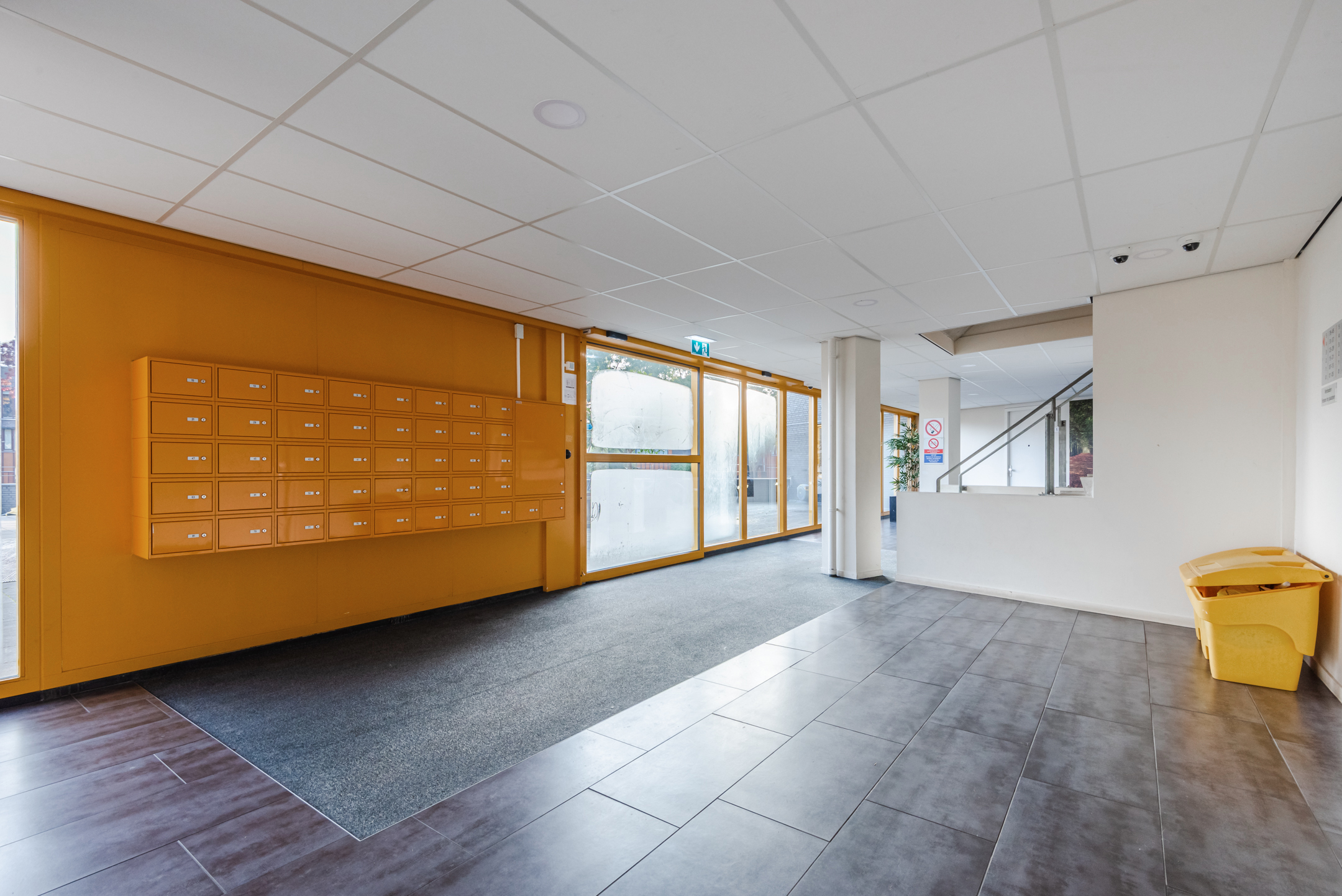 Gesloten entree met bel/intercom, trappenhuis en lift.