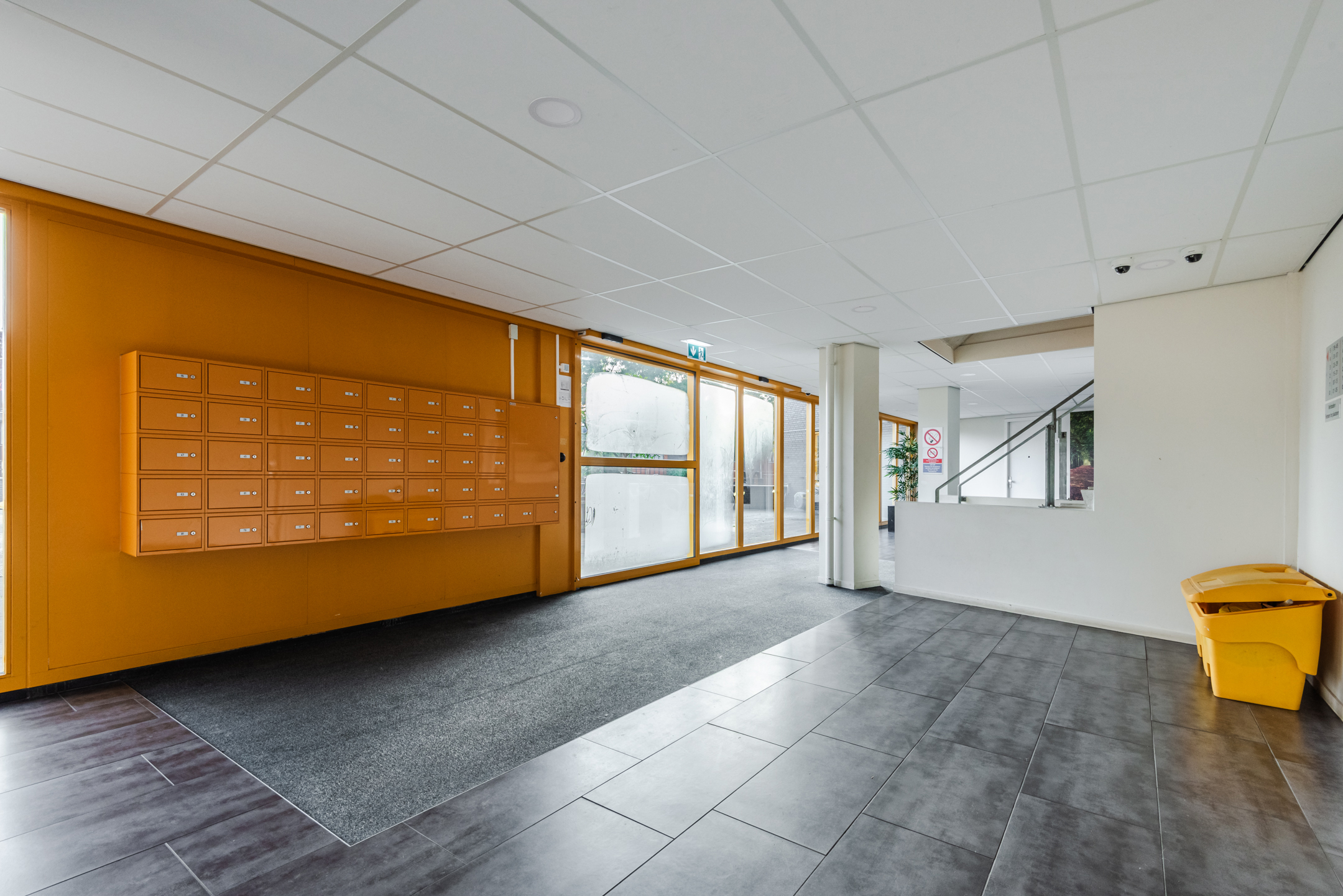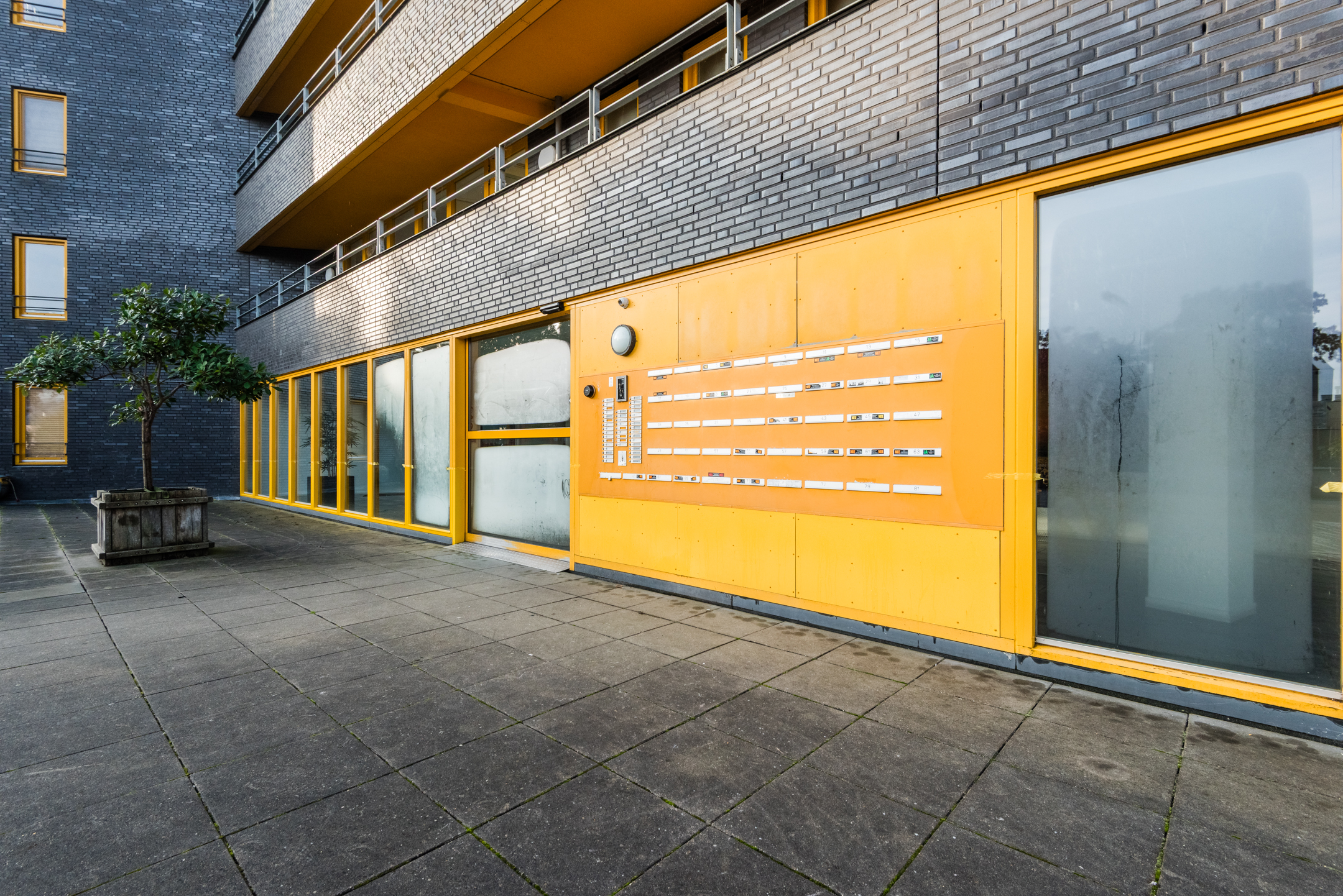 Gesloten entree met bel/intercom, trappenhuis en lift.