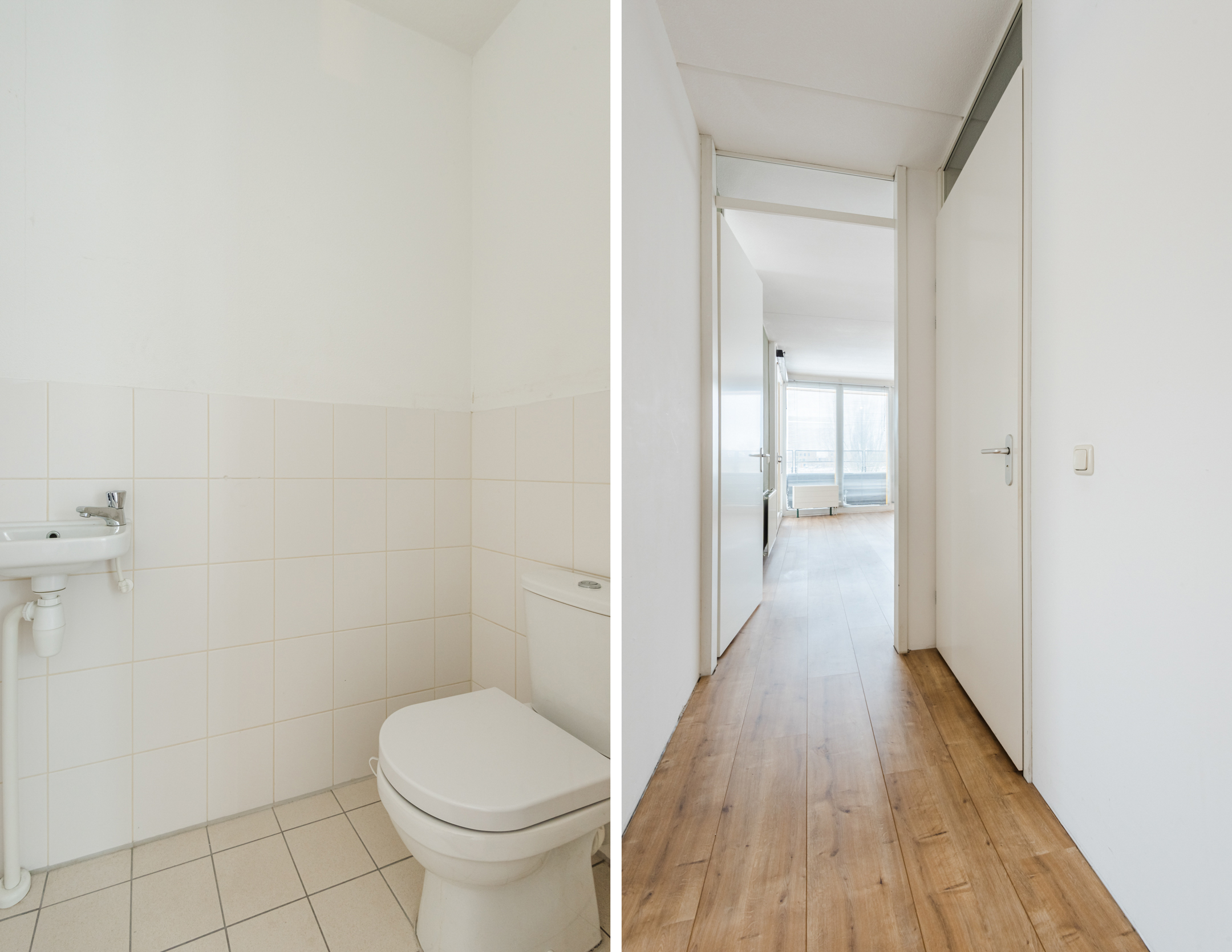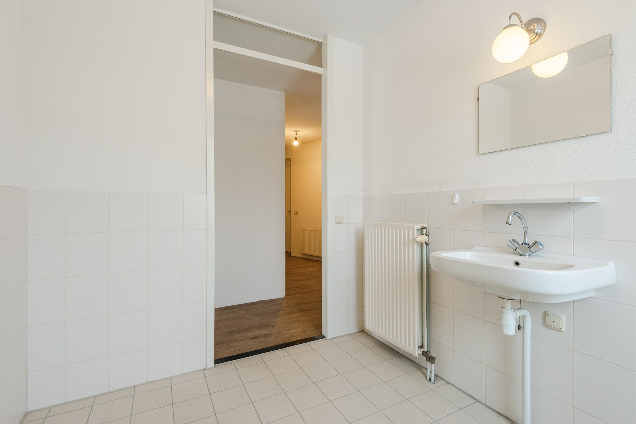 Tevens is er een tweede, separaat (gasten)toilet met fonteintje in de woning aanwezig. De aansluitingen voor de witgoedopstelling zijn handig weggewerkt in een aparte wasruimte/berging.