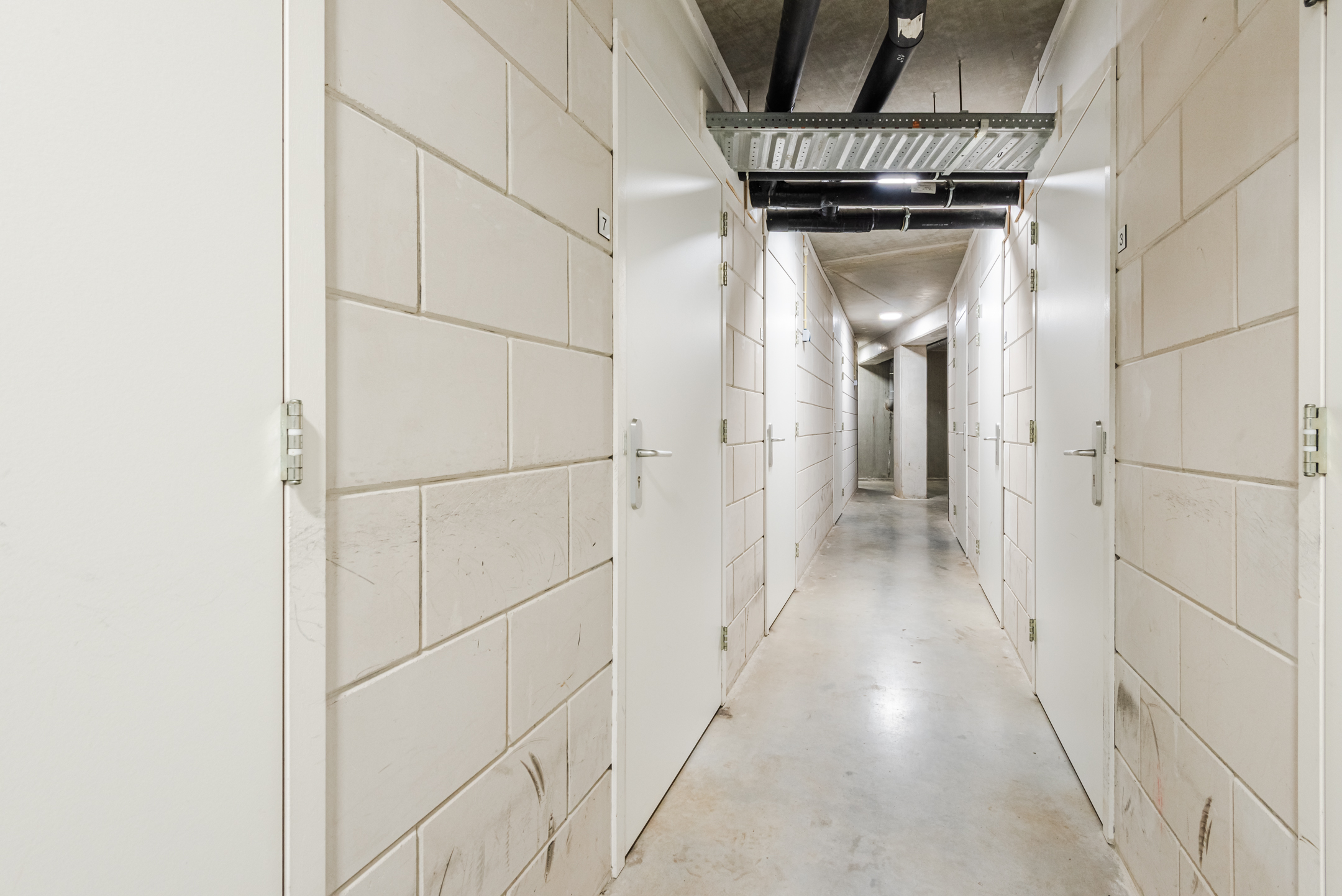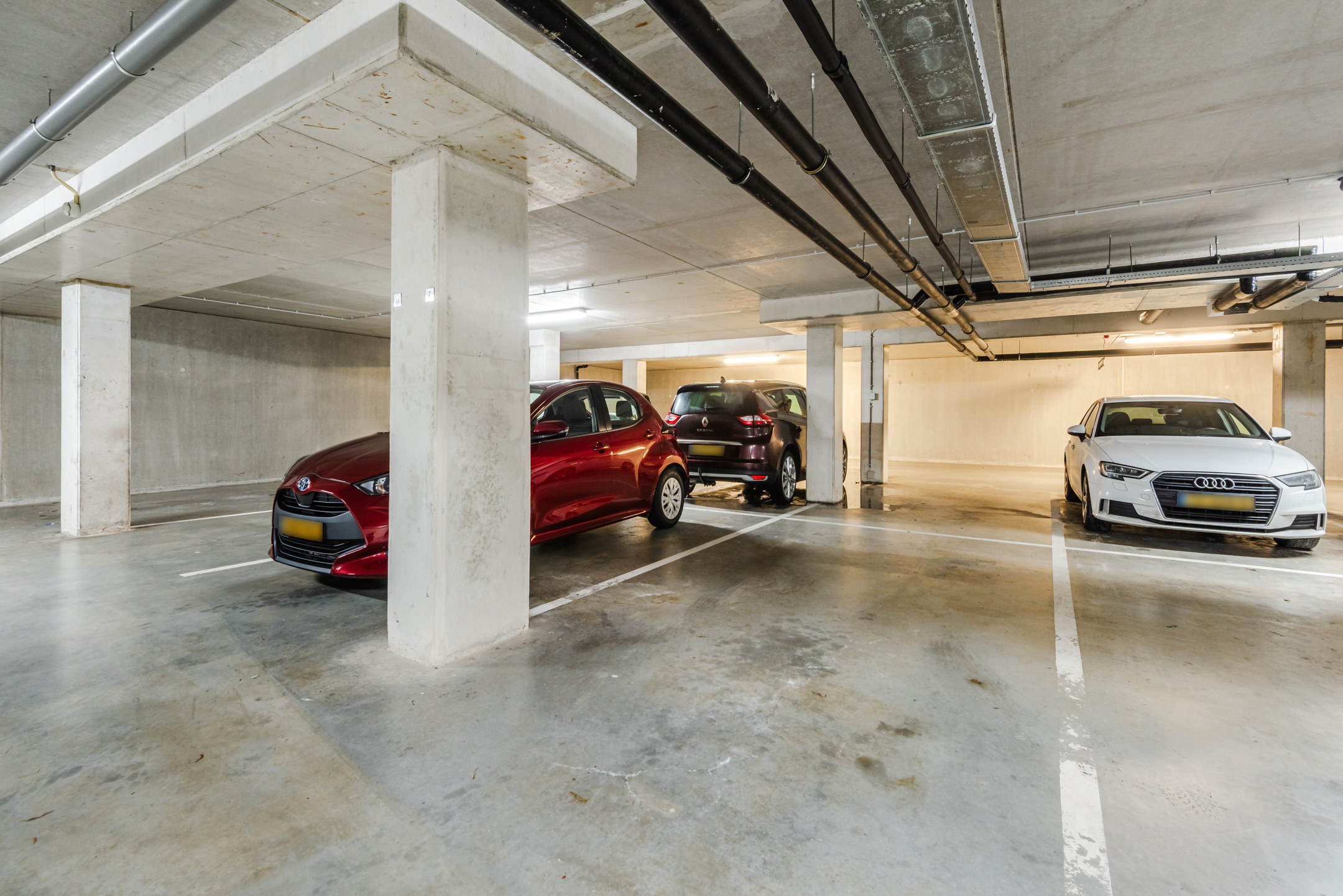 De woning beschikt over een eigen (fietsen)berging en 2 eigen parkeerplaatsen (1 in de parkeergarage en 1 op de parkeerplaats buiten).