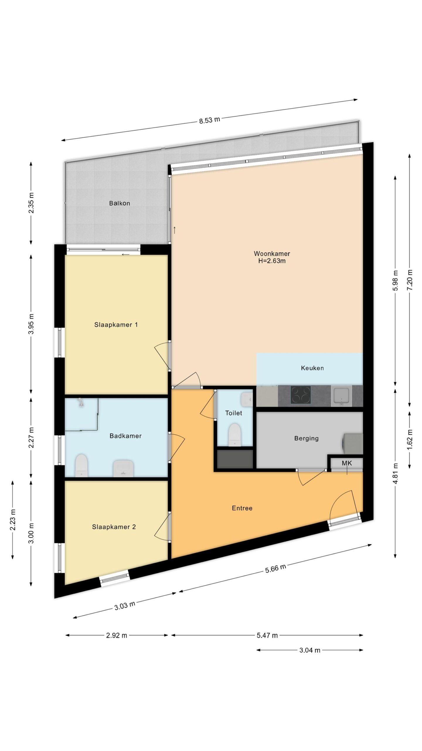 De woning beschikt over 2 slaapkamers van een goed formaat waarvan de grootste tevens direct toegang biedt tot het balkon.