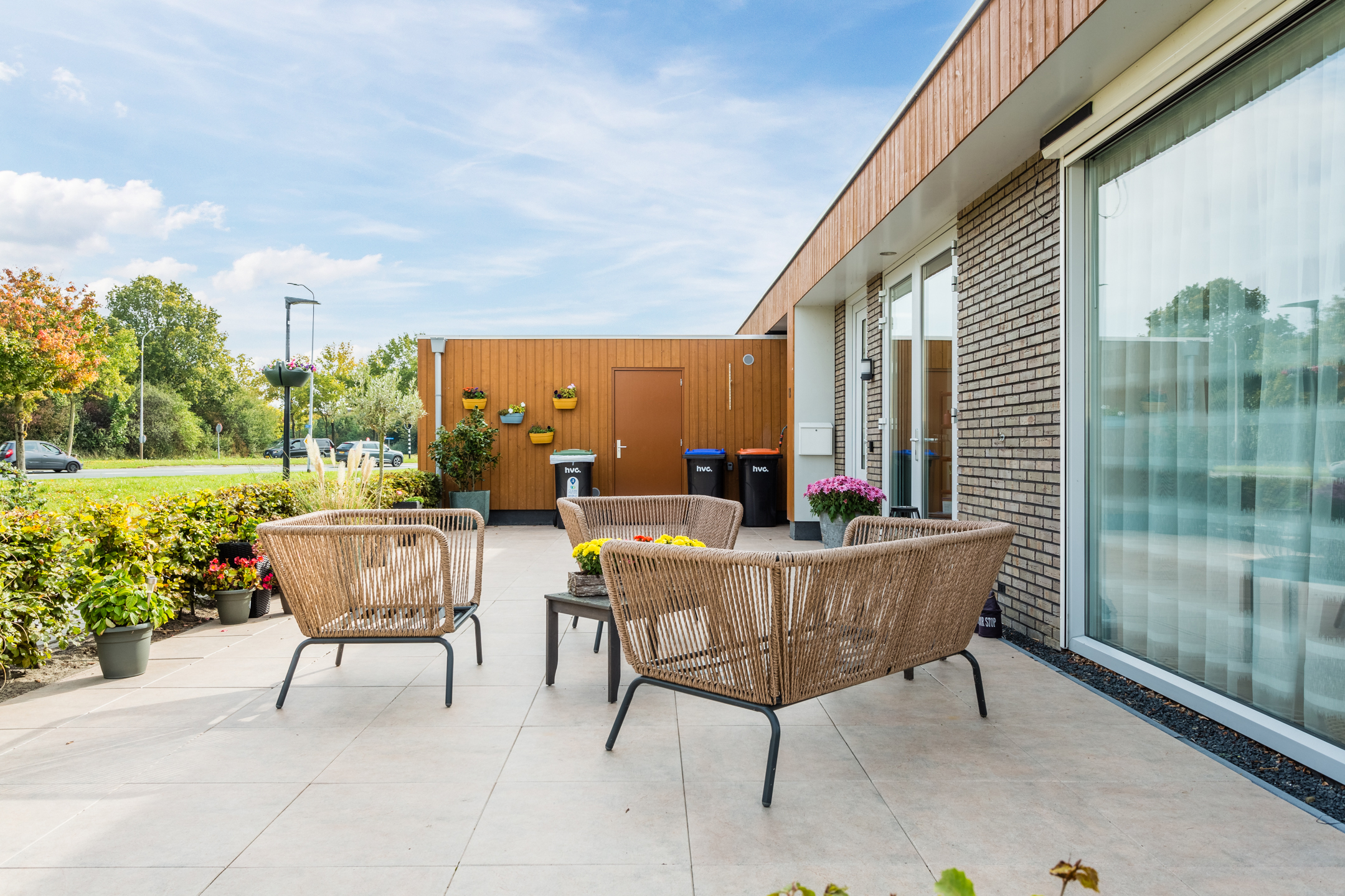 De woning beschikt over een ruim betegeld terras met een aan de woning geschakelde (fietsen)berging.