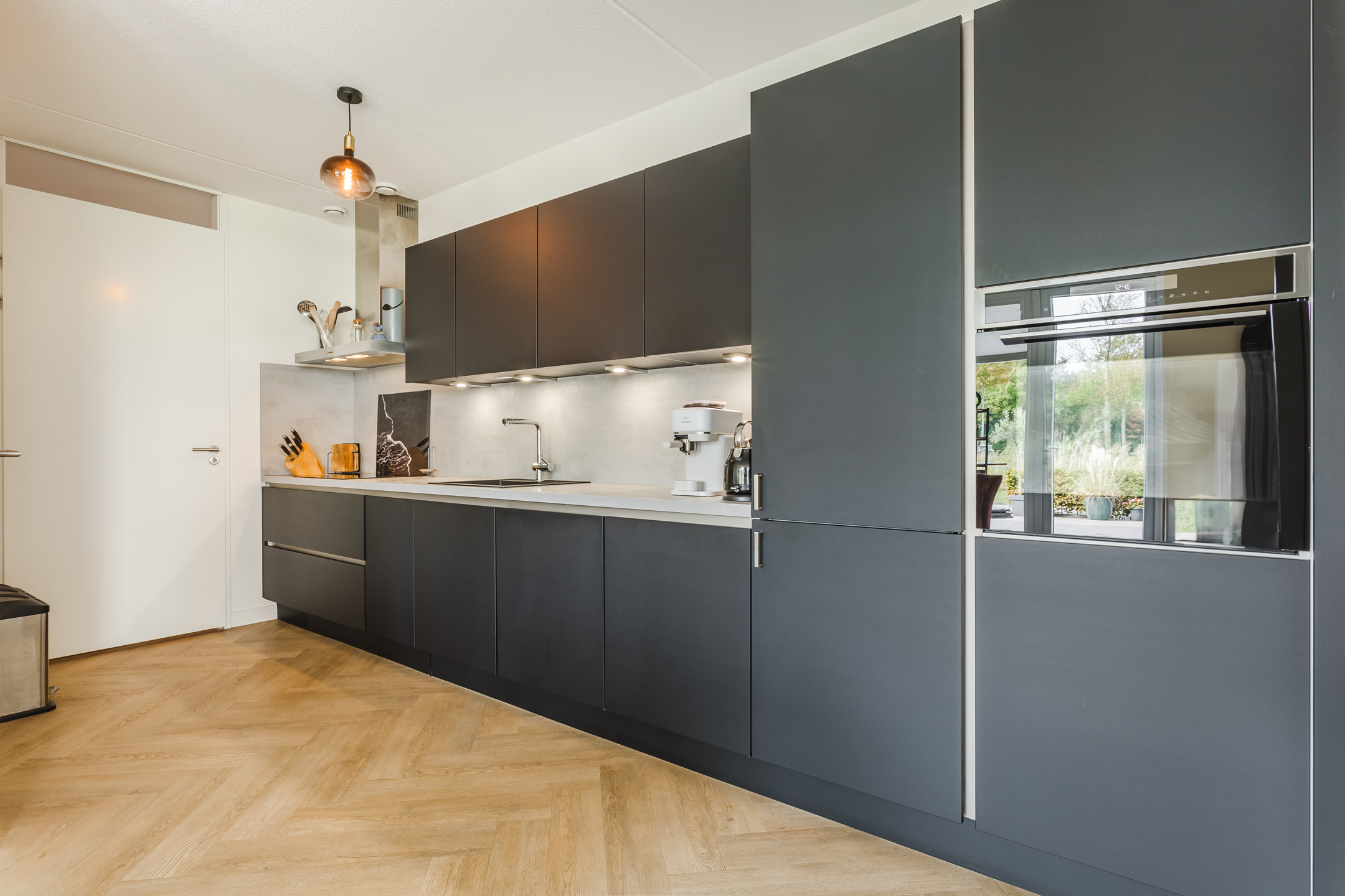 De gehele woning is piekfijn afgewerkt en voorzien van een visgraatmotief PVC-laminaatvloer.
