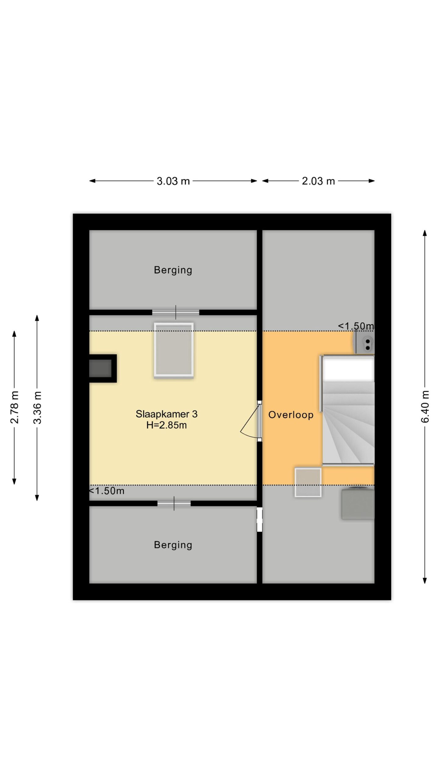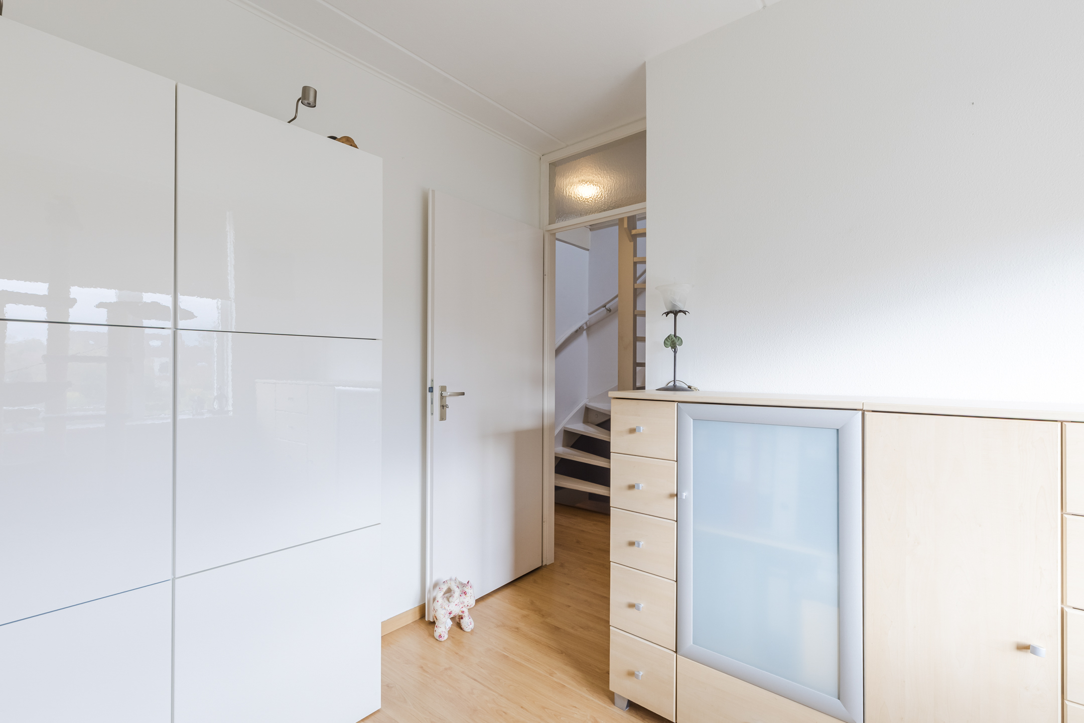 Via the fixed staircase on the first floor, we reach the landing of the second floor with a full-fledged 4th bedroom. On this floor, we also find the connections for the white goods set-up.